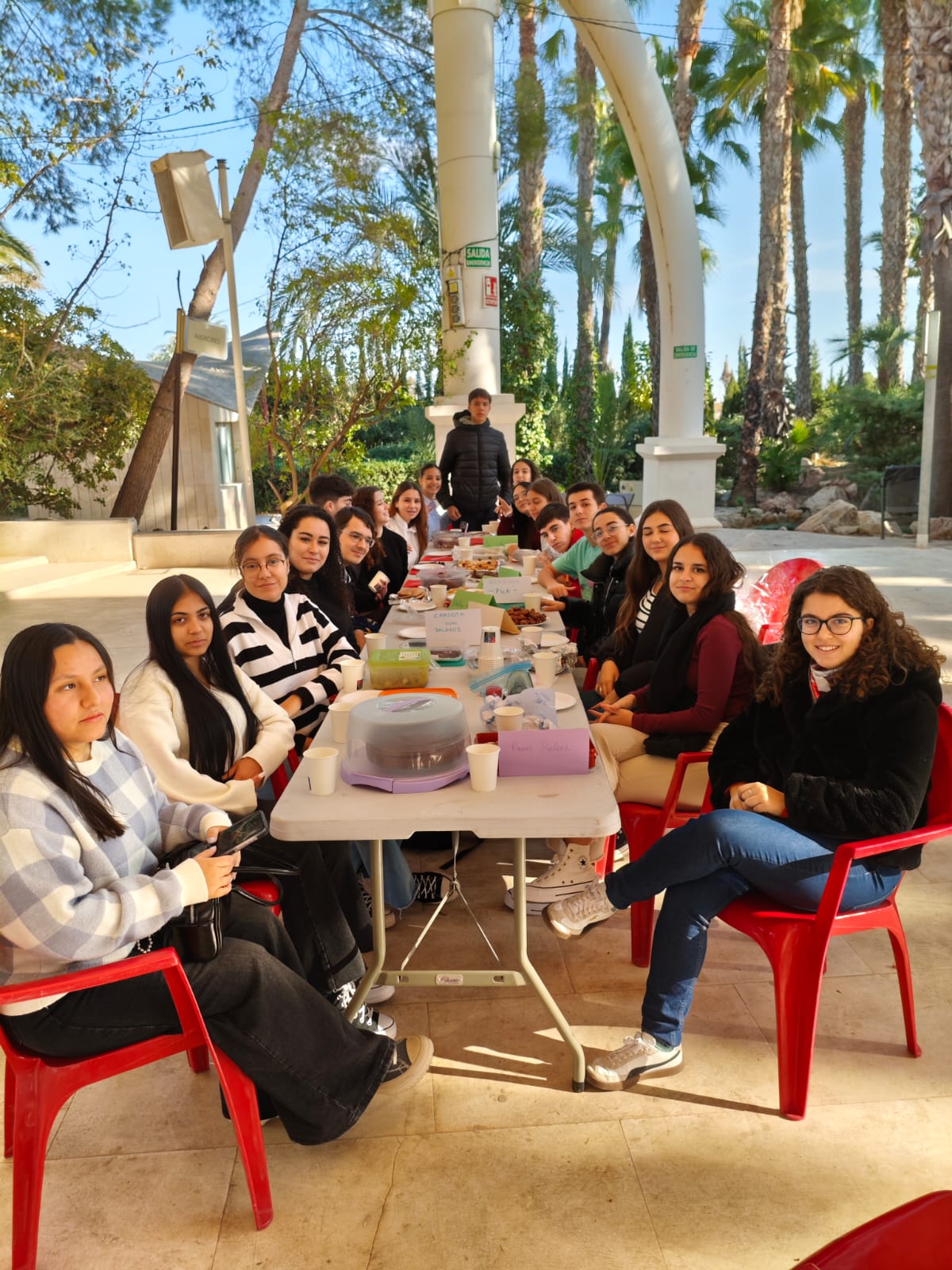 Javi no desaprovechó la oportunidad para promocionar nuestro instituto y nuestra región a dos grupos de alumnos que estudian Filología Hispánica, invitando a los asistentes a visitarnos. Además, Fito Galiana, que en ocasiones acompaña a su hermano en ciertas movilidades, cantó para los alumnos mostrando obras de su autoría así como otras canciones populares del pop español.