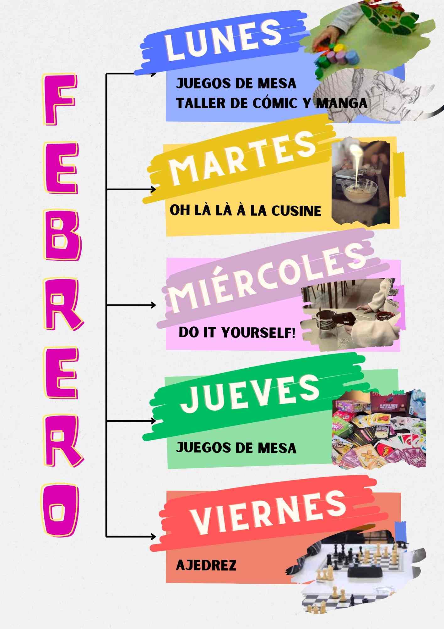 En nuestro cartel puedes encontar la organización semanal de los talleres.