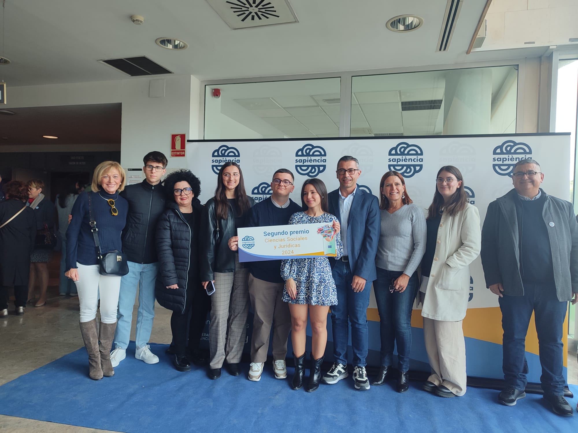 Nuestro centro ha sido finalista en los premios Sapiéncia 2024. El equipo compuesto por Sandra Gamayo Santos y Borja Garrido Roca dirigidos por su profesor José Manuel Aguilar Ñiguez ha obtenido un 2º puesto dotado con 3000 euros para el alumnado.