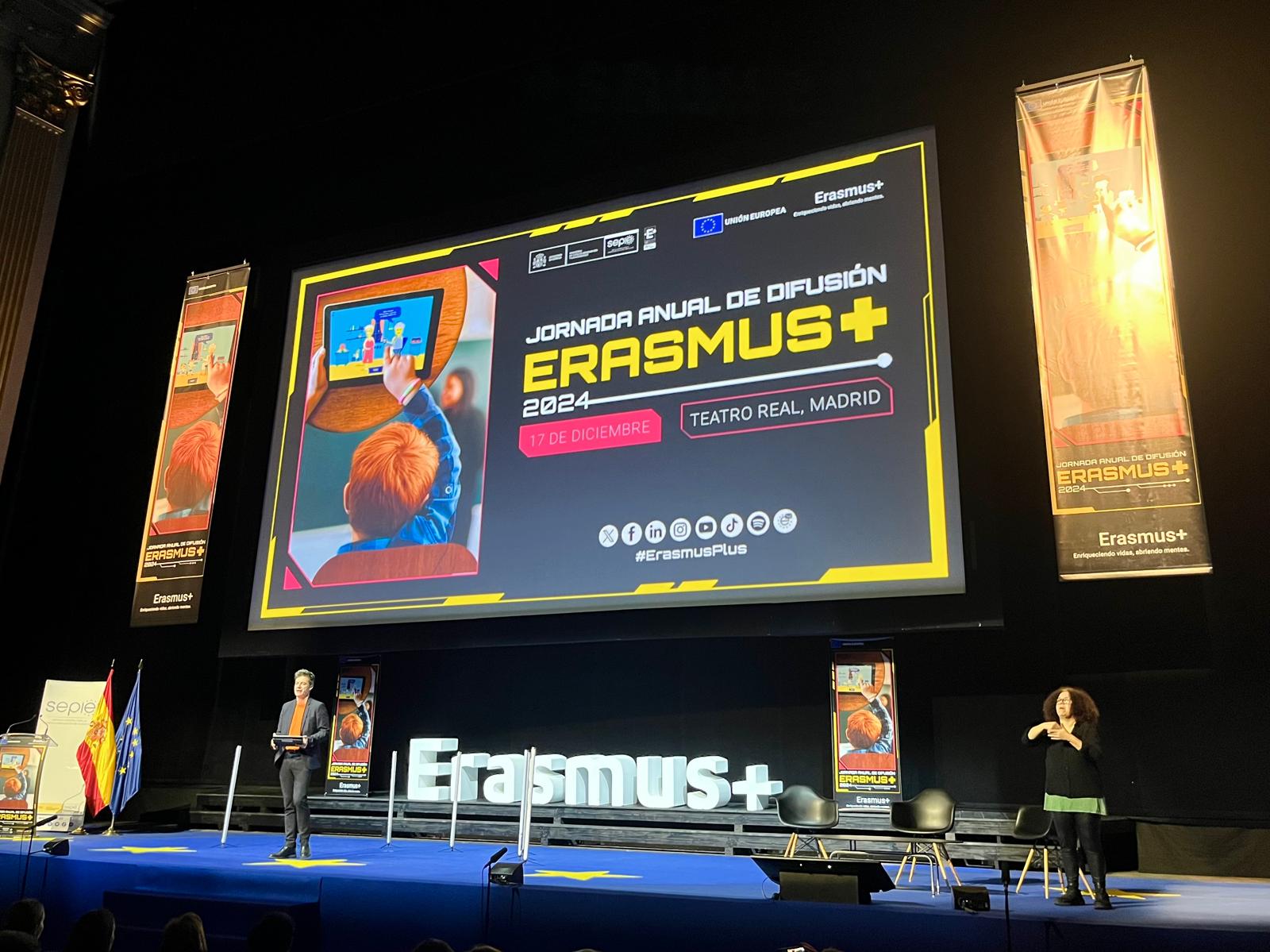 Por primera vez, el IES Antonio Serna Serna ha acudido a la Jornada Anual de Difusión Erasmus+ 2024 organizada por el Servicio Español para la Internacionalización de la Educación (SEPIE) que se ha celebrado en el Teatro Real de Madrid, el martes 17 de diciembre.