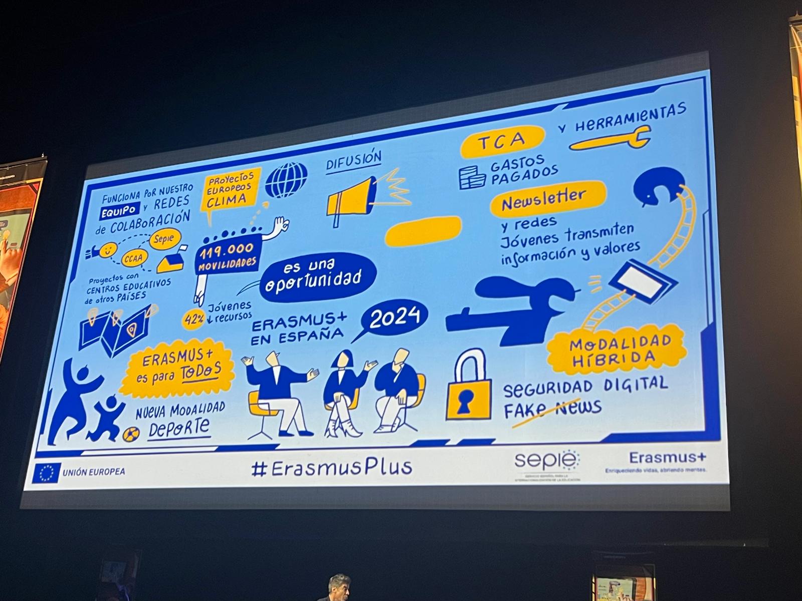 Una oportunidad para que nuestros representantes, Dña. Marta Bargay Juan, coordinadora Erasmus+ de Formación Profesional y D. Javier Galiana García, coordinador Erasmus+ de Educación Superior, disfruten de la bonita jornada que el SEPIE ha preparado y que D. Antolín Romero Ortega, comunicador y presentador del programa Aquí Hay Trabajo de la 2 de TVE, ha conducido.