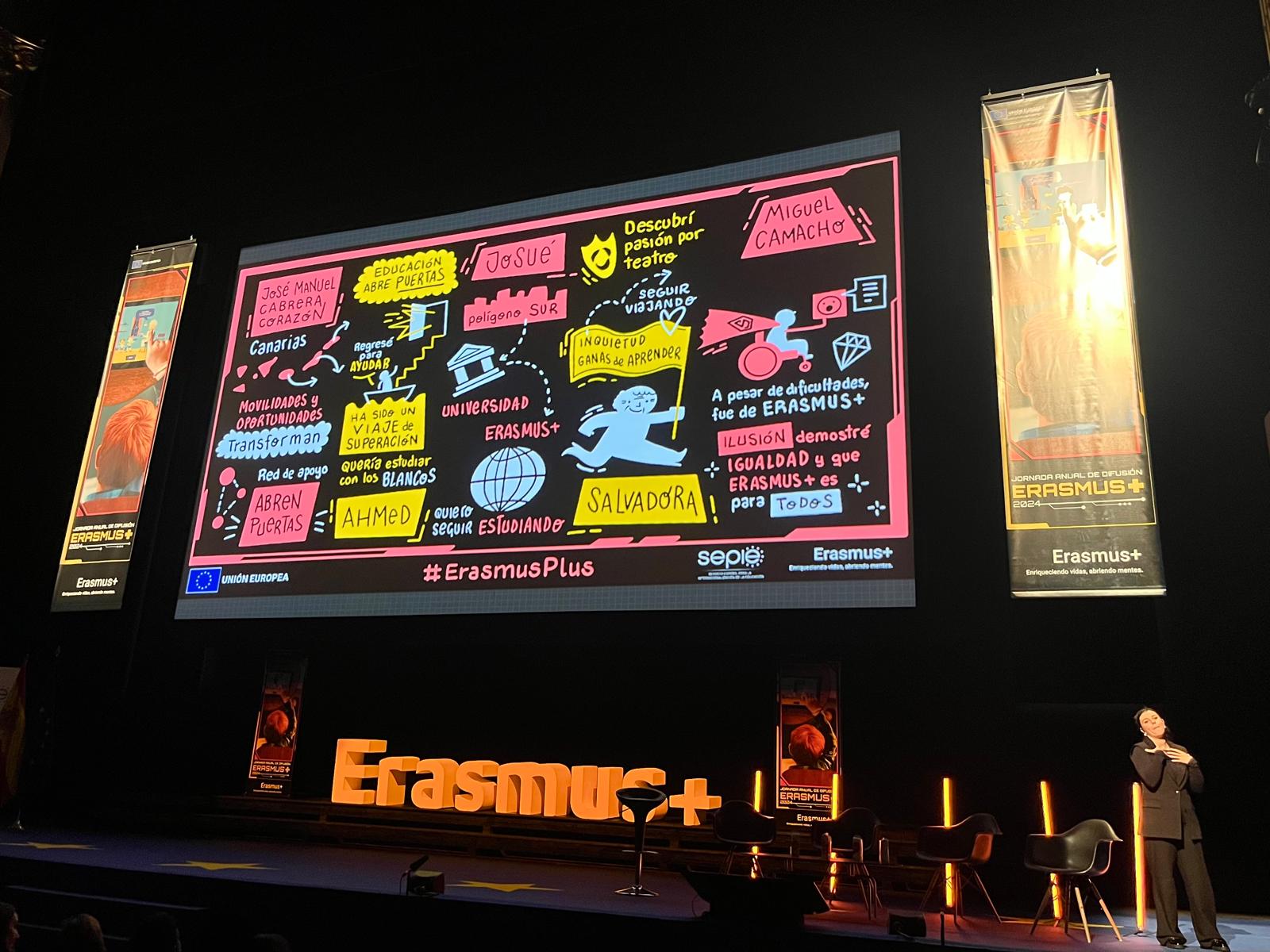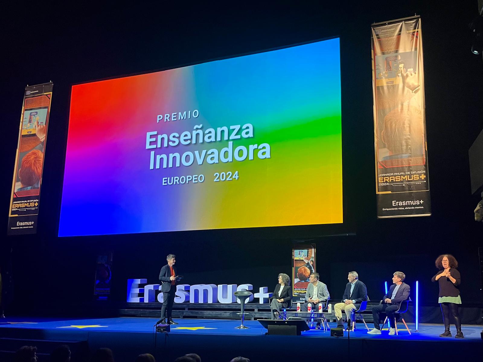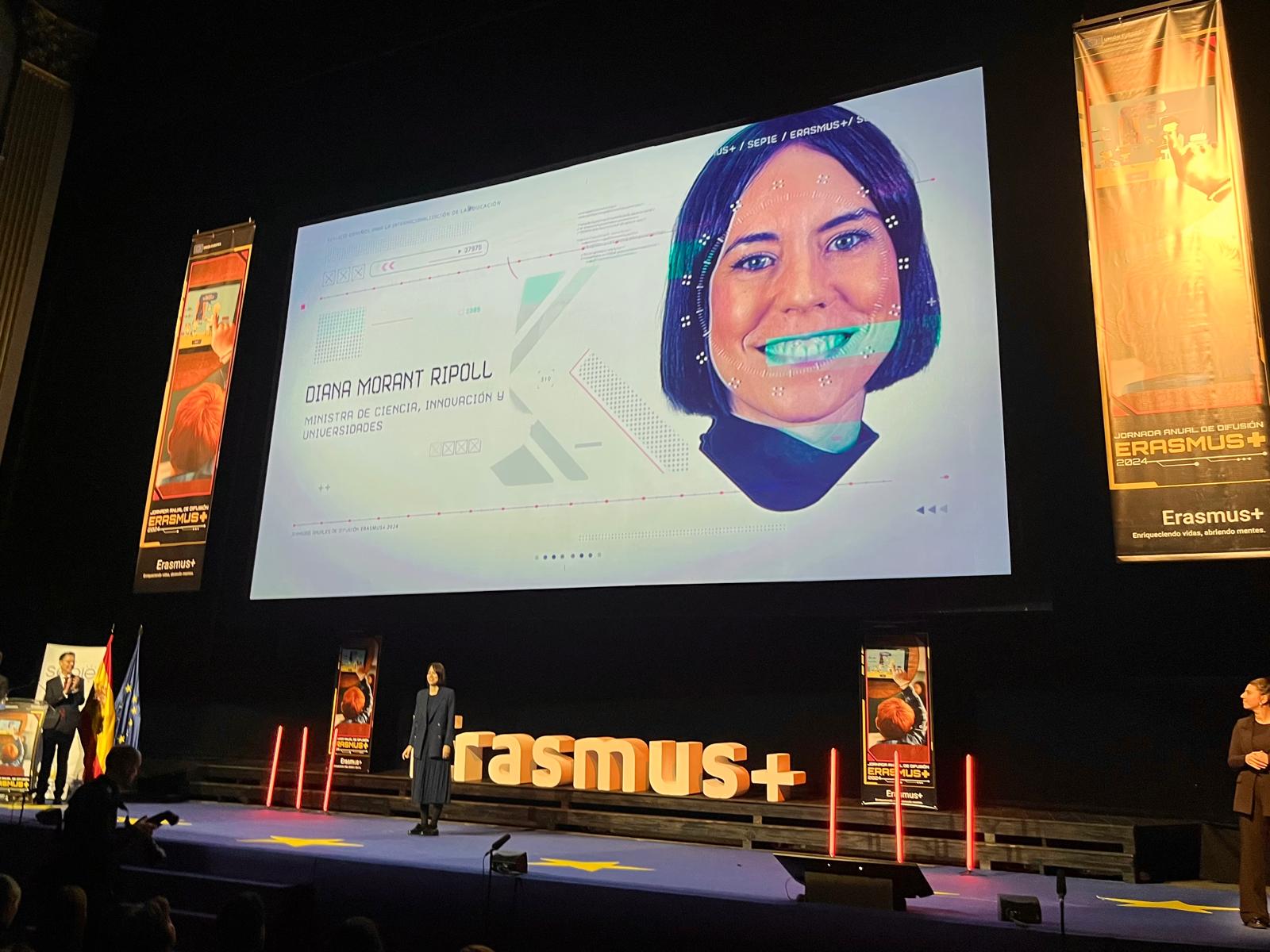 Y, por supesto, la presencia de la Ministra y el Secretario de Estado de Ciencia, Innovación y Universidades, Dña. Diana Morant Ripoll y D. Juan Cruz Cigudosa García, en el acto de entrega de reconicimientos a la calidad de proyectors Erasmus+ 2024.