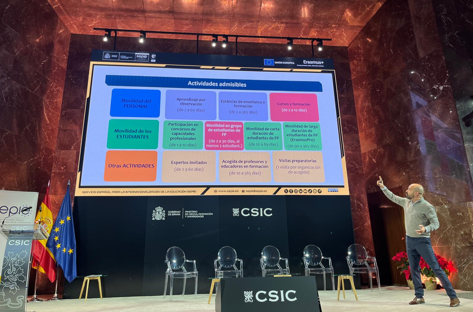 Ha sido, el miércoles 18 de diciembre de 2024, en las instalaciones del Consejo Superior de Investigaciones Científicas (CSIC) de Madrid, el lugar elegido por el Servicio Español para la Internacionalización de la Educación (SEPIE) para que tenga lugar la Jornada Informativa Erasmus+ de Formación Profesional 2025