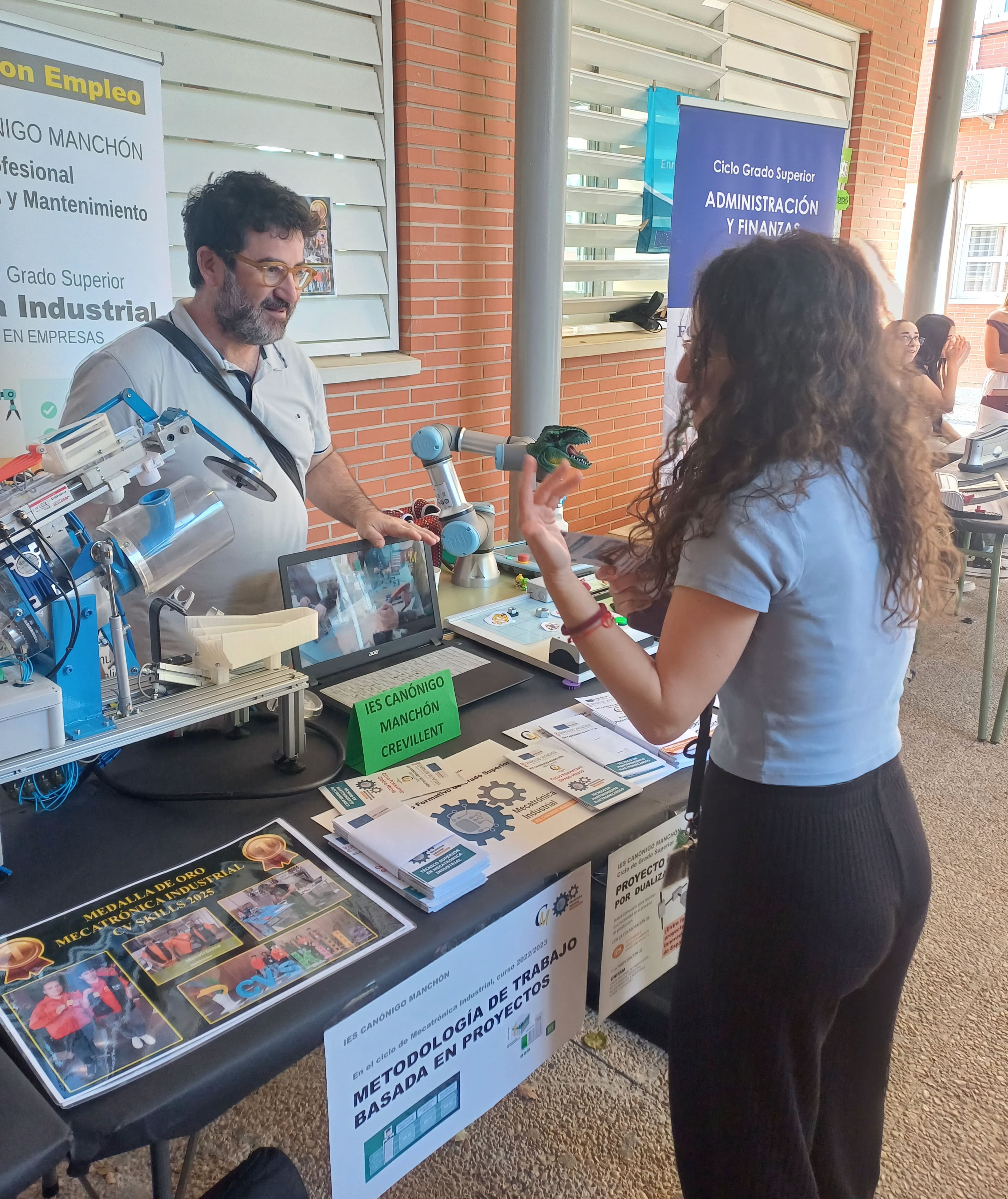 Queremos expresar nuestro más sincero agradecimiento a los centros educativos y organizaciones que han participado y contribuido al éxito de la feria: Familias profesionales del IES Antonio Serna, El Campico, San José Obrero, IES La Encantá, IES Canónigo Manchón, IES Macià Abela, IES Misteri d'Elx, Salesianos, IES Vega Baja, CIPFP El Palmeral, EASDO, Aopol y la Oficina de Reclutamiento. Su implicación y colaboración han sido fundamentales para enriquecer la experiencia formativa de nuestro alumnado.