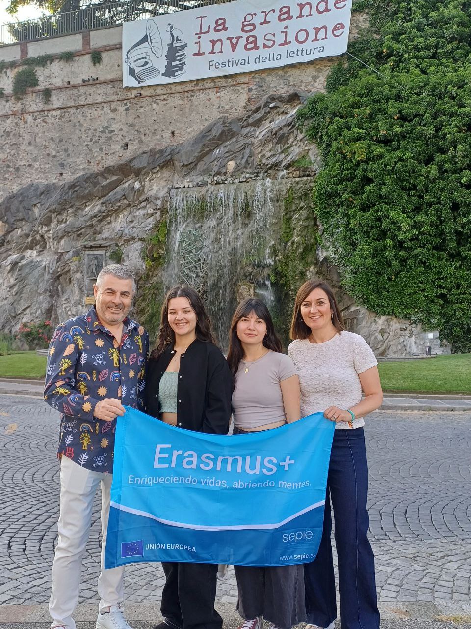 Durante el pasado mes de mayo, Sheila Ferrández Box y Mónica Serna Fuentes, gracias a las gestiones de nuestro socio italiano, el centro educativo IIS Olivetti, en la ciudad de Ivrea, Italia, y a la inestimable colaboración del Consorzio Copernico S.C.S. Filigrana y 109 e Dintorni, nuestras estudiantes de segundo curso de grado medio de la familia de Servicios Socioculturales y a la Comunidad, pudieron vivir esta bonita, a la par que gratificante, experiencia. Nuestro agradecimiento más especial a todos nuestros compañeros y compañeras italianas por hacerlo posible, especialmente al profesor Moreno Gallo Carrabba, por su hospitalidad y por estar siempre disponible en lo que hemos necesitado, y a las responsables de las dos instituciones educativas, Elisa Baldi y Marta Giovanetto por su cariño y su enorme generosidad.