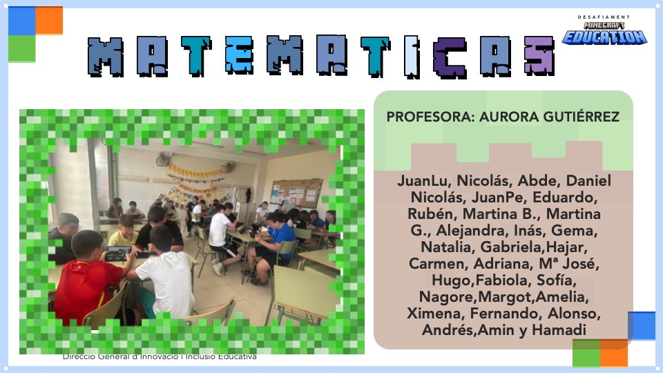 El alumnado de 1ºB y 1ºD de ESO ha resultado finalista en la especialidad de Matemáticas del Concurso Minecraft Education, convocado por la Dirección General de Innovación e Inclusión Educativa en colaboración con Microsoft.