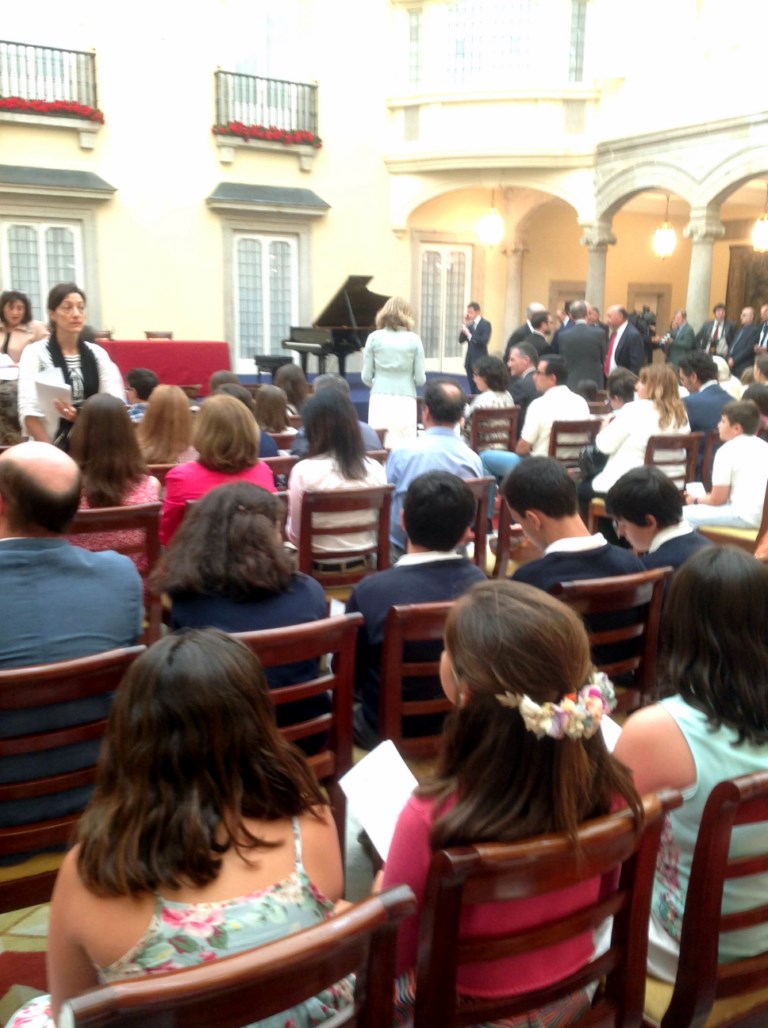 Viajamos a Madrid (Palacio del Pardo) a recibir un reconocimiento a los trabajos de dibujo realizados por nuestras alumnas y coordinadas por la profesora Mª Jose Tamarit Moradillo. Nuestra alumna Paloma Pérez Sigüenza recibió un reconocimiento espacial por su trabajo y la Infanta Elena departió con ella sobre la técnica emplada en su dibujo. Del mismo modo el centro recibió un diploma por los trabajos realizados.