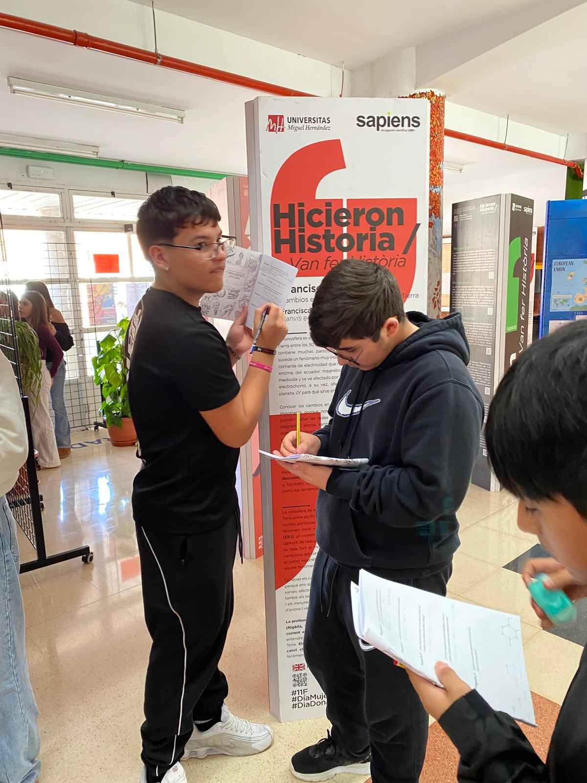 Aprovechando esta celebración, el alumnado de 2º de ESO ha participado en una gimkana de preguntas sobre las científicas de la exposición. En la clase de Física y Química, los estudiantes han leído atentamente los paneles informativos para poder resolver las pruebas, descubriendo historias sorprendentes y aprendiendo sobre mujeres científicas de gran relevancia que, en muchos casos, desconocían.