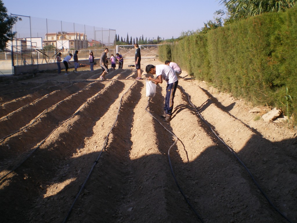 Los alumnos de PDC 1 desarrollan la actividad Huerto Escolar, coordinado por su profesor Juan Licerán.
