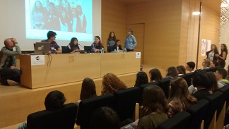 Al encuentro asistieron cerca de un centenar de profesores y sesenta alumnos de institutos de toda la provincia, entre ellos tres de nuestro centro: Inés Berná, Sergio Rubio y María Lozano, todos ellos matriculados en la asignatura TMI prensa, acompañados de Ángel Ceballos, su profesor y editor de ¡A tiza!, la revista digital de nuestro centro.