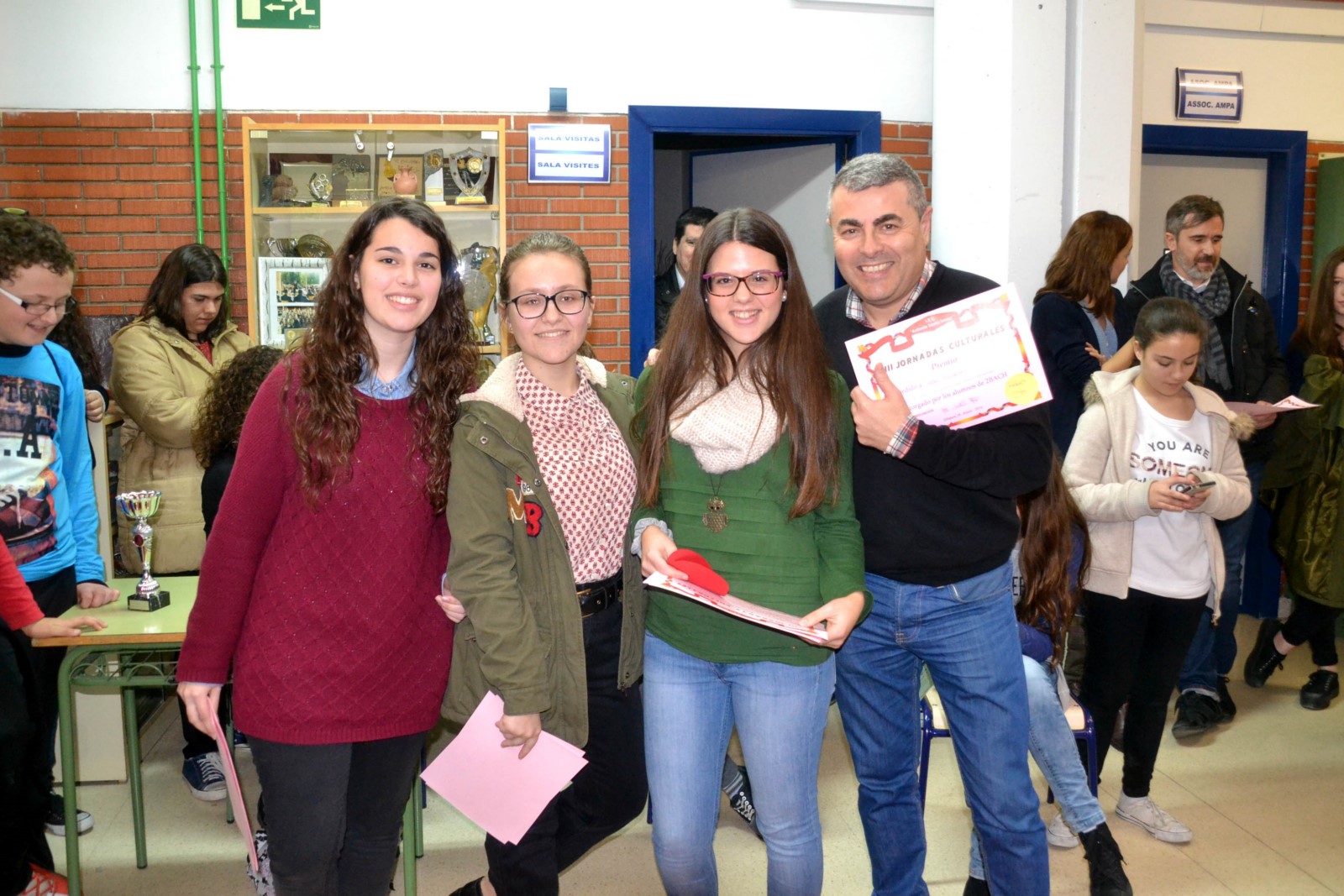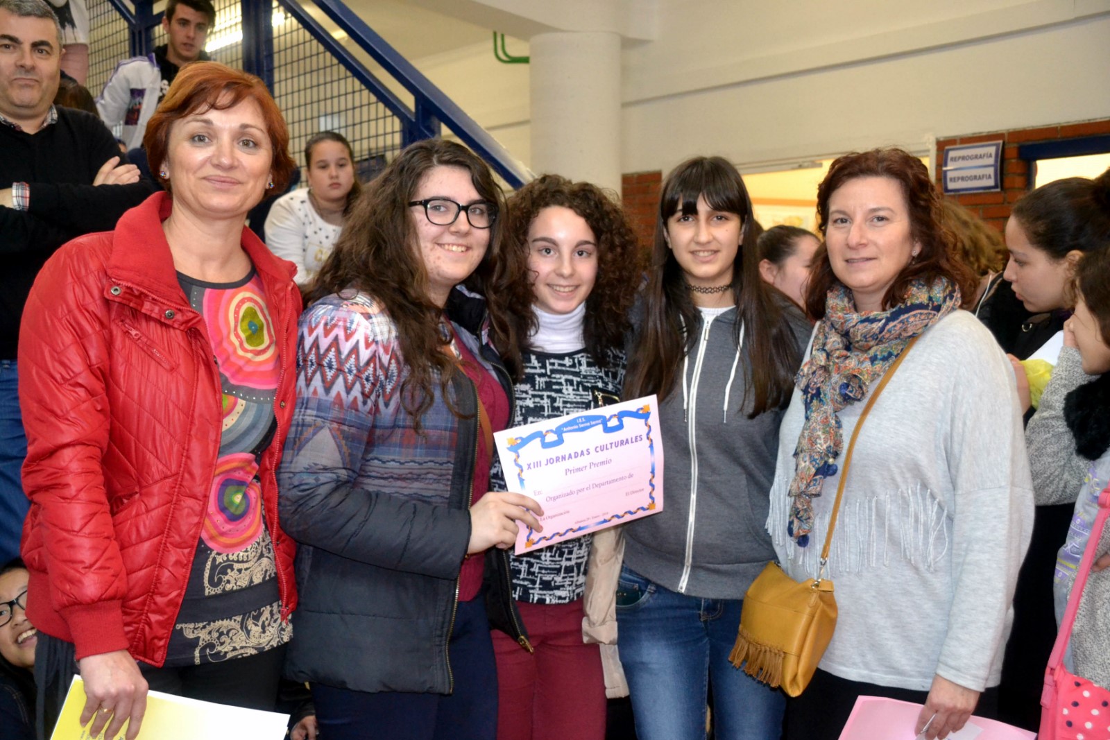 El pasado viernes 29 de enero se celebraron las decimoterceras jornadas culturales en nuestro centro. Con gran partcipación de alumnado y numerosas y variadas actividades.Deportivas, gastronómicas, de manualidades, juegos, concursos, exposiciones... Un día de encuentro y convivencia del que extraer muchas cosas positivas.