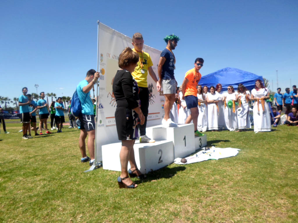 El espÃÂritu olÃÂmpico de la Antigua Grecia se revivió durante toda la jornada recreando las mismas experiencias y sensaciones que seguro tuvieron nuestros ancestros, buscando la gloria y el honor que simboliza la rama de olivo, por ello nuestra felicitación a IES Catral como vencedor en las mismas y a todos nuestros alumnos participantes, en particular a nuestros atletas y, en especial, a los laureados: