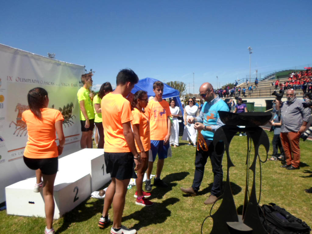 Tras el acto de inauguración, los alumnos de Cultura Clásica, LatÃÂn y Griego de cada centro compitieron, emulando a los atletas de las antiguas olimpiadas griegas, en lanzamiento de peso, jabalina, salto de altura y longitud, en carreras de velocidad, resistencia y relevos. Los ganadores recibieron como premio una medalla, una corona de olivo y un diploma.