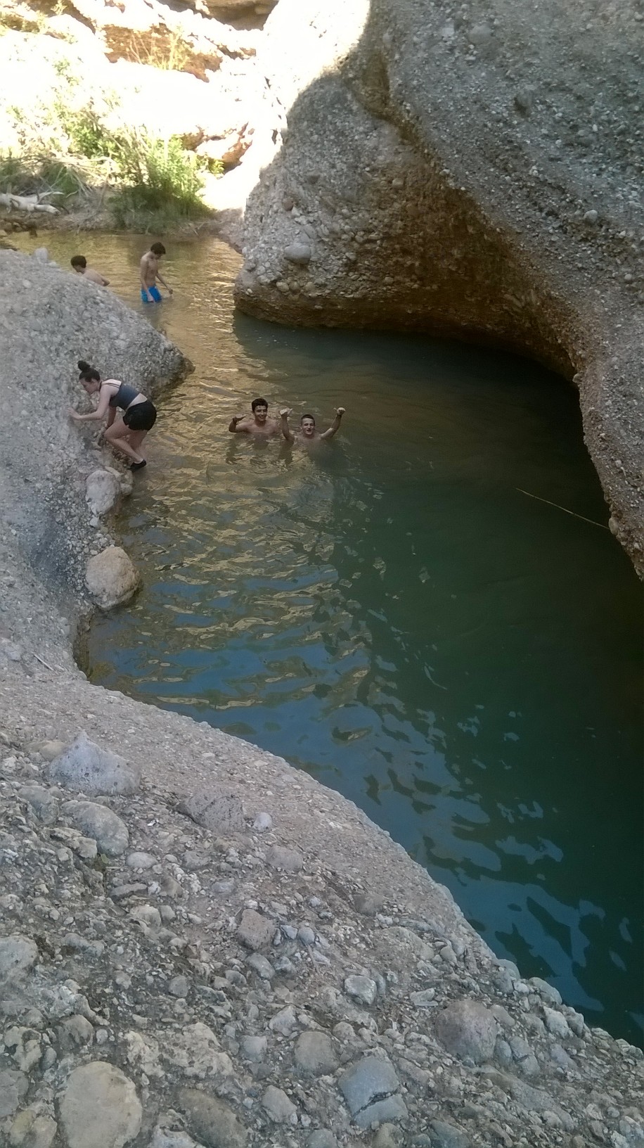 La verdad es que en algunos tramos el nivel del agua había subido bastante por la erosión de fondo y nos llegó más arriba de la cintura. Además estaba muy fría pero eso no impidió a la mayoría de alumnos, bañarse en la poza durante el almuerzo.