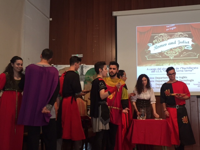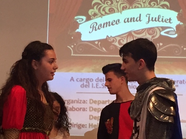 Los alumnos de 1º bachillerato, han representado la obra de teatro en inglés "Romeo and Juliet", obra integramente en inglés, con la que recordamos el IV centenario de la muerte de su autor. Su profesora Helia Bas, ha sido la encargada de coordinar y dirigir a este estupendo grupo de chicos/as que durante meses, han dejado infinidad de horas de esfuerzo, trabajo y risas.