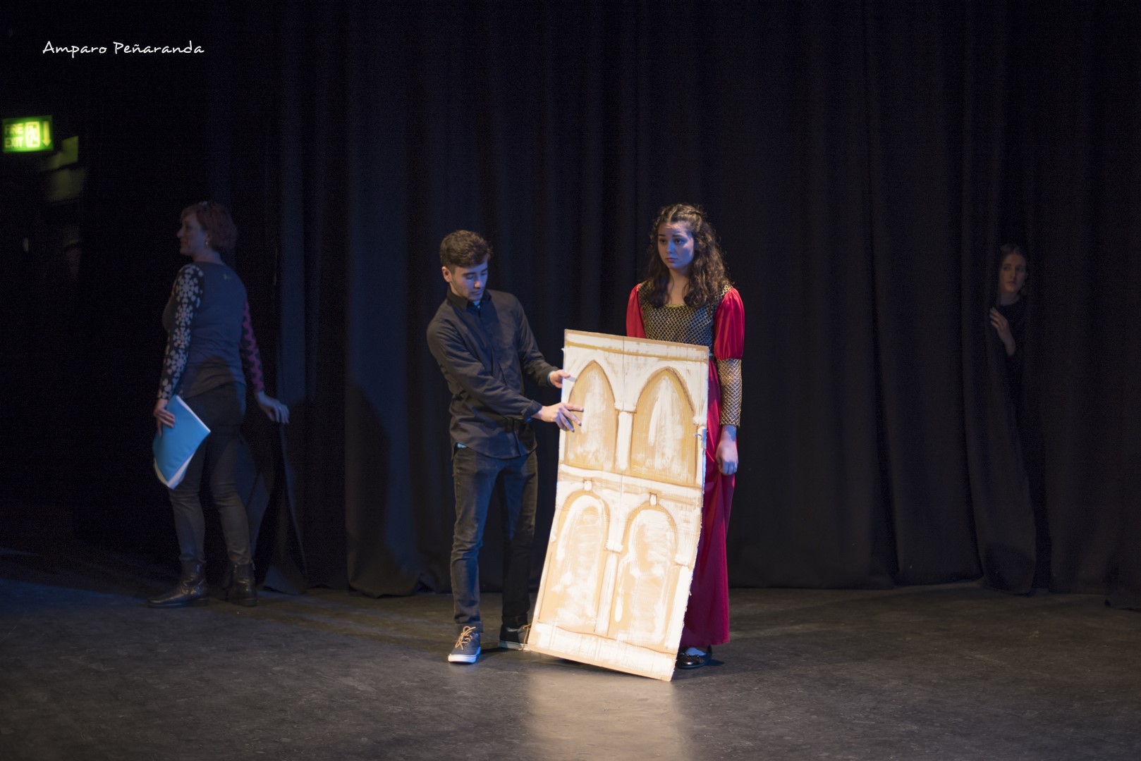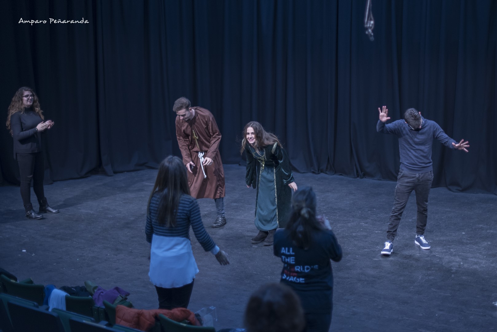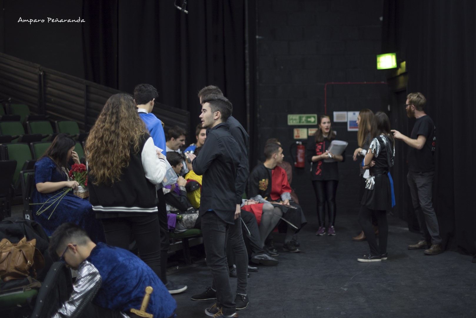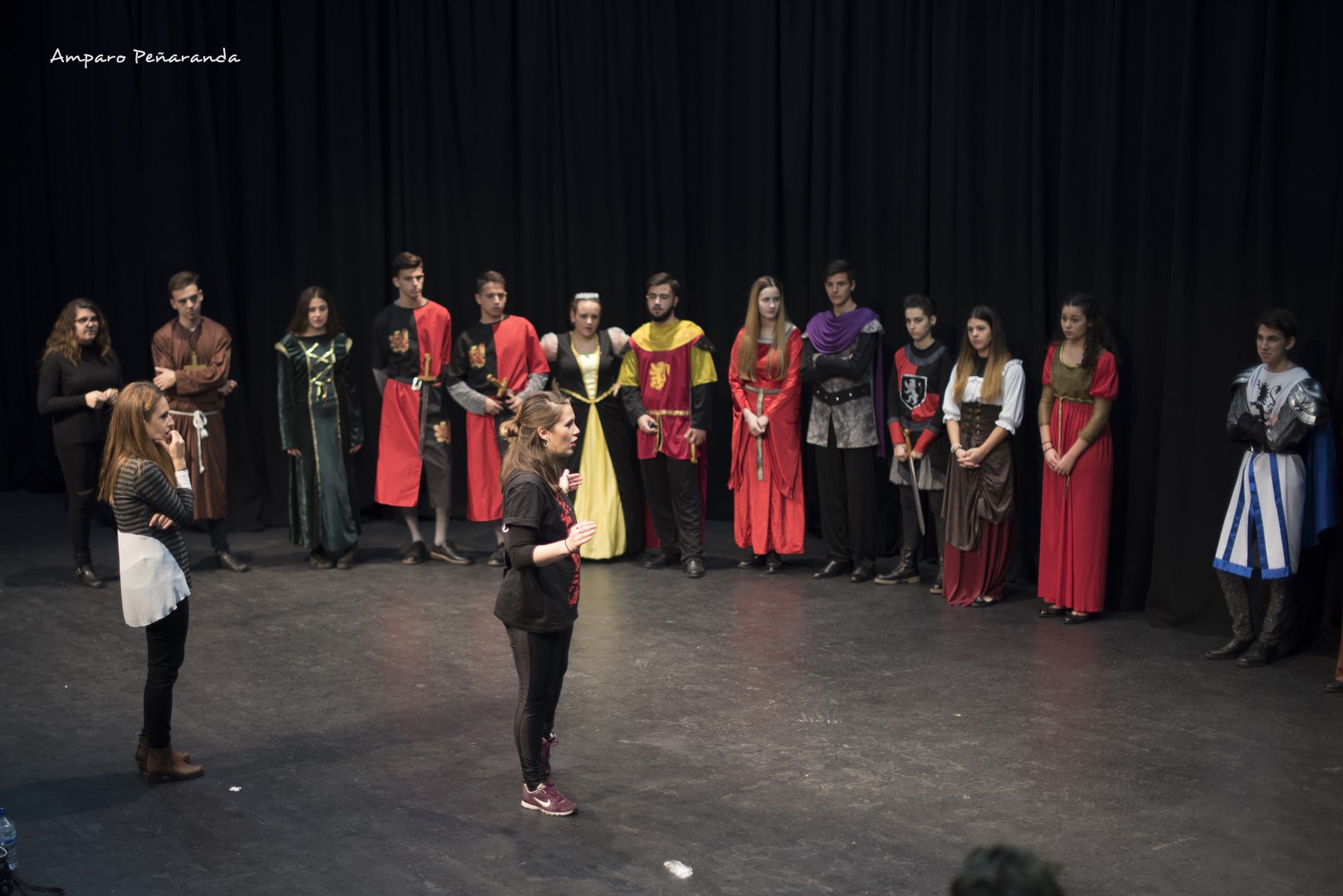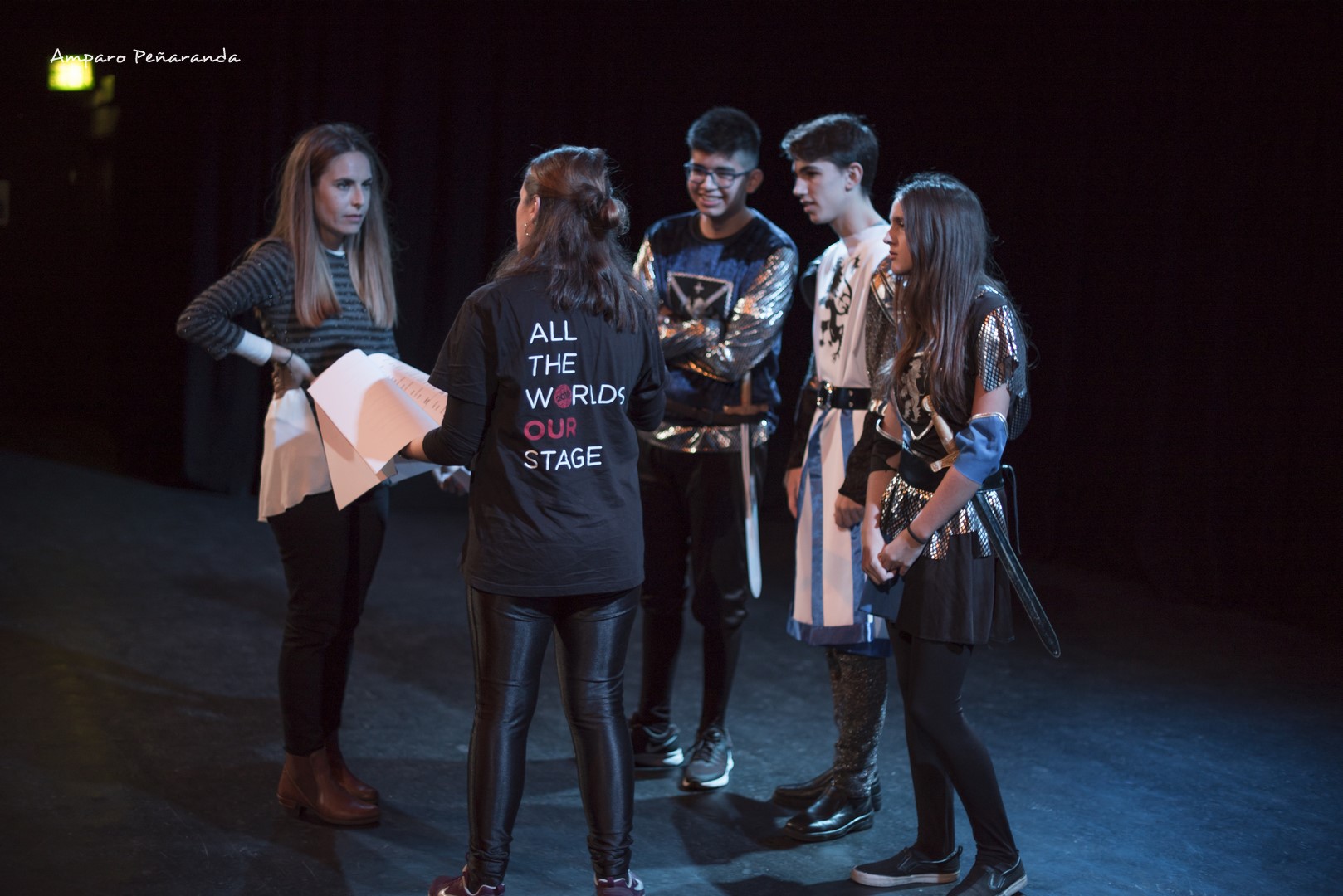 El ansiado día 9, tras los ensayos técnico y artístico de la mañana y el calentamiento de la tarde junto con el resto de alumnos participantes, llegó el momento de la verdad. Los alumnos del IES Antonio Serna lo dieron todo en su representación y el ambiente que se respiraba era verdaderamente mágico. Las actuaciones a nuestras espaldas y la seriedad de la ocasión nos permitieron solventar los pequeños errores que podían ir surgiendo, y, sobre todo, pudimos disfrutar de cada instante, de cada momento, de cada una de las frases que se iban diciendo, de las miradas, de los gestos, de los aplausos y de la complicidad de un público totalmente entregado. Labor realizada y sueño más que cumplido para todos y cada uno de nosotros. Tras acabar nuestra actuación, disfrutamos de las maravillosas actuaciones de los compañeros de la William Ellis School de Londres, con quienes compartimos cartel y que presentaron dos obras distintas, Macbeth y Henry V. Finalmente, subimos todos de nuevo al escenario, y recibimos halagos por parte de la organización y del público asistente, destacando el bonito vestuario, la soltura y entrega de nuestros jóvenes actores, las preciosas piezas musicales en directo, y la valentía por habernos atrevido con un texto tan difícil.