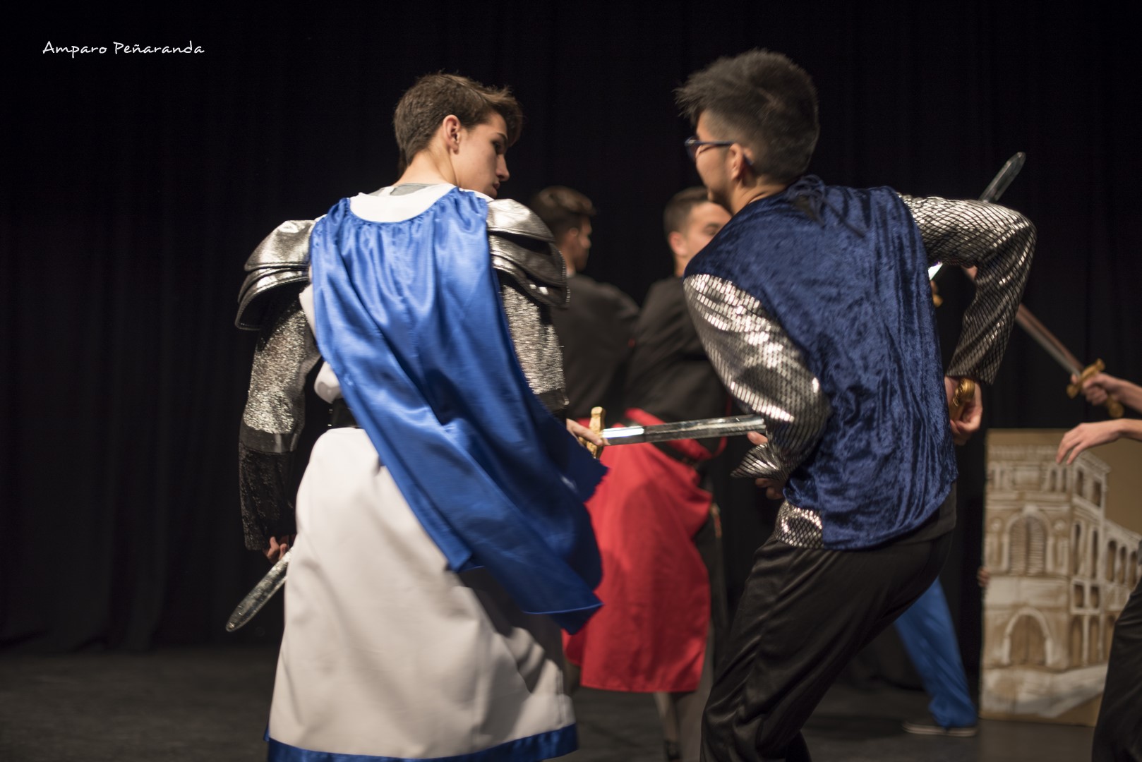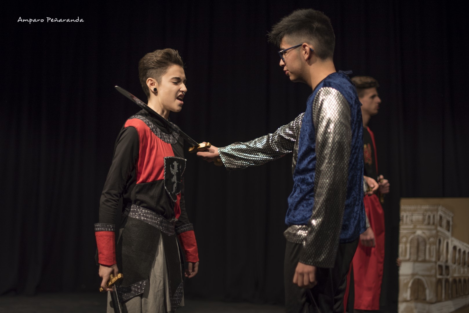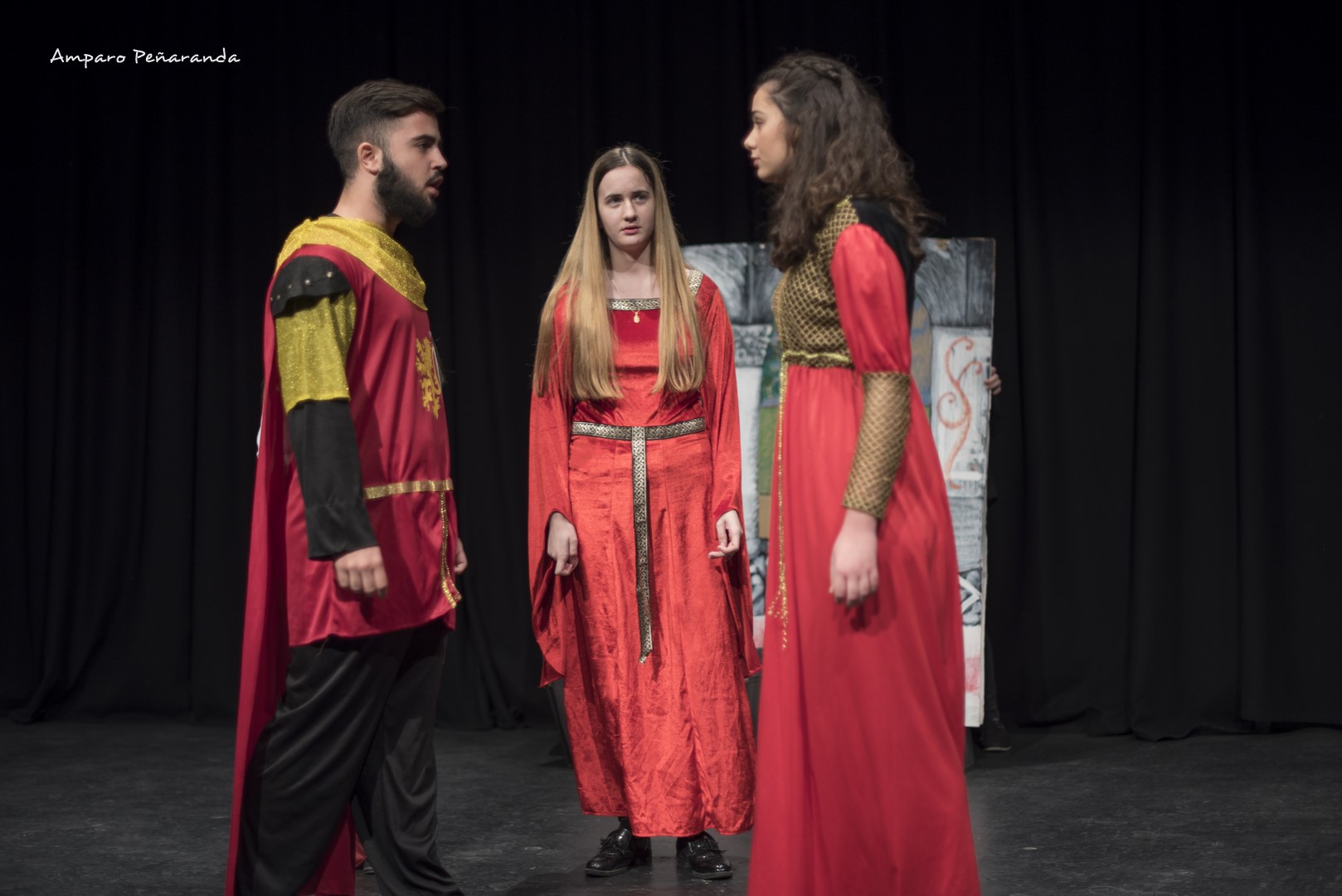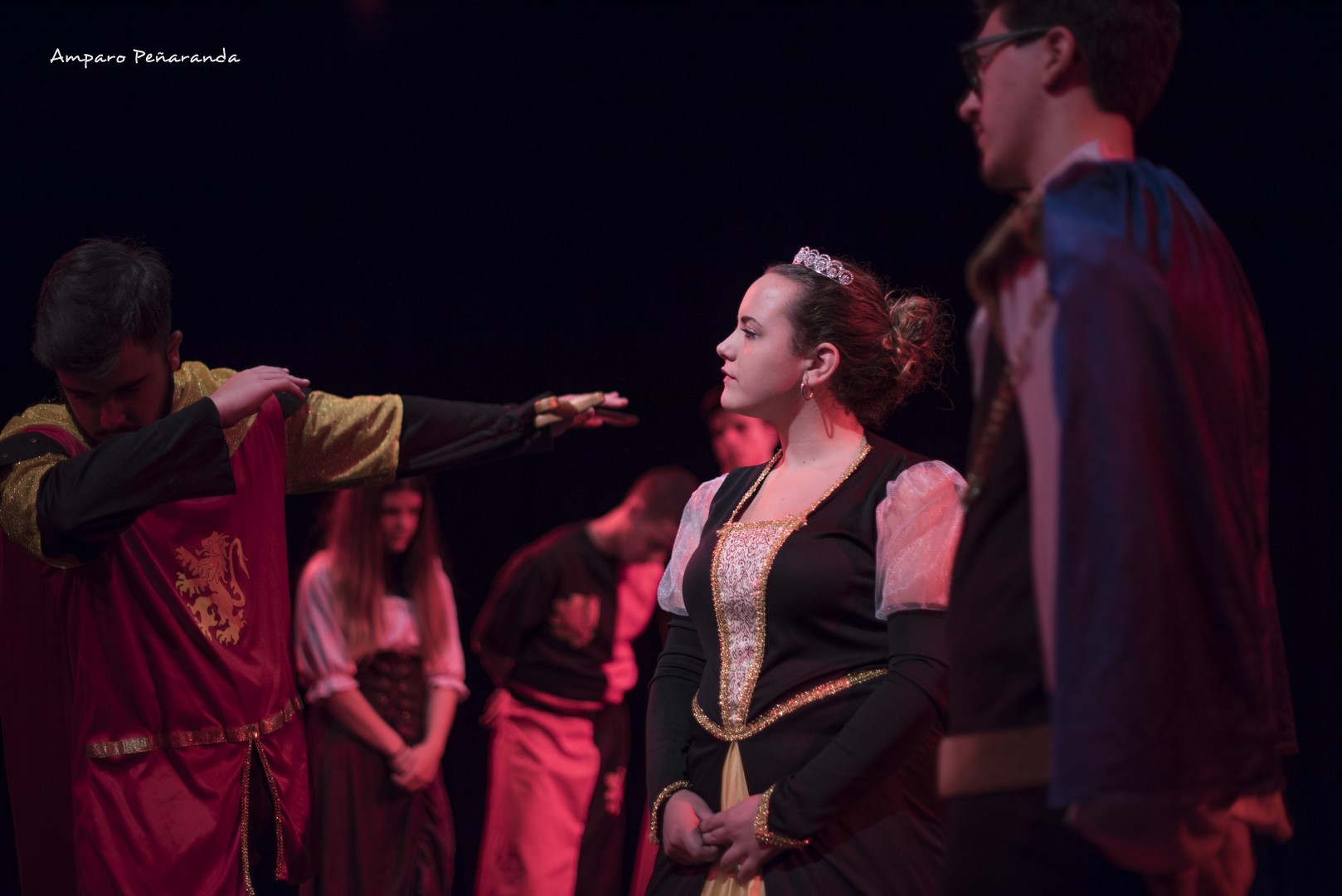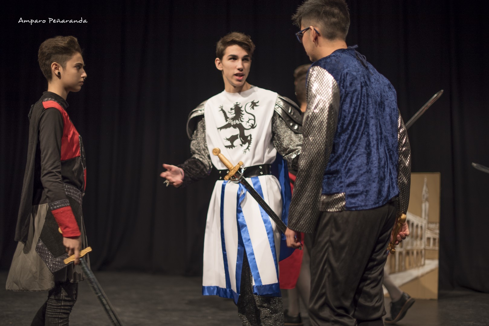 El ansiado día 9, tras los ensayos técnico y artístico de la mañana y el calentamiento de la tarde junto con el resto de alumnos participantes, llegó el momento de la verdad. Los alumnos del IES Antonio Serna lo dieron todo en su representación y el ambiente que se respiraba era verdaderamente mágico. Las actuaciones a nuestras espaldas y la seriedad de la ocasión nos permitieron solventar los pequeños errores que podían ir surgiendo, y, sobre todo, pudimos disfrutar de cada instante, de cada momento, de cada una de las frases que se iban diciendo, de las miradas, de los gestos, de los aplausos y de la complicidad de un público totalmente entregado. Labor realizada y sueño más que cumplido para todos y cada uno de nosotros. Tras acabar nuestra actuación, disfrutamos de las maravillosas actuaciones de los compañeros de la William Ellis School de Londres, con quienes compartimos cartel y que presentaron dos obras distintas, Macbeth y Henry V. Finalmente, subimos todos de nuevo al escenario, y recibimos halagos por parte de la organización y del público asistente, destacando el bonito vestuario, la soltura y entrega de nuestros jóvenes actores, las preciosas piezas musicales en directo, y la valentía por habernos atrevido con un texto tan difícil.