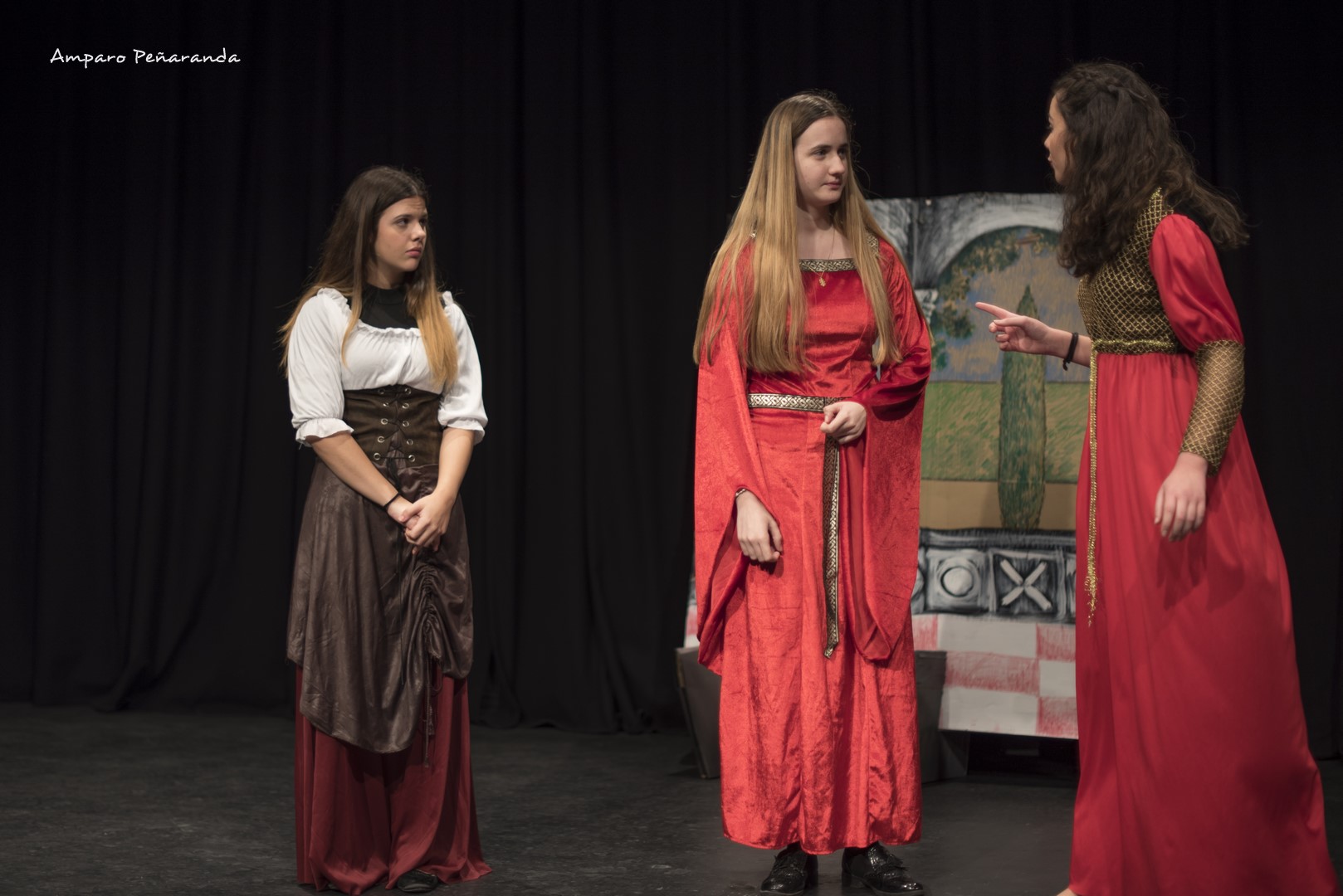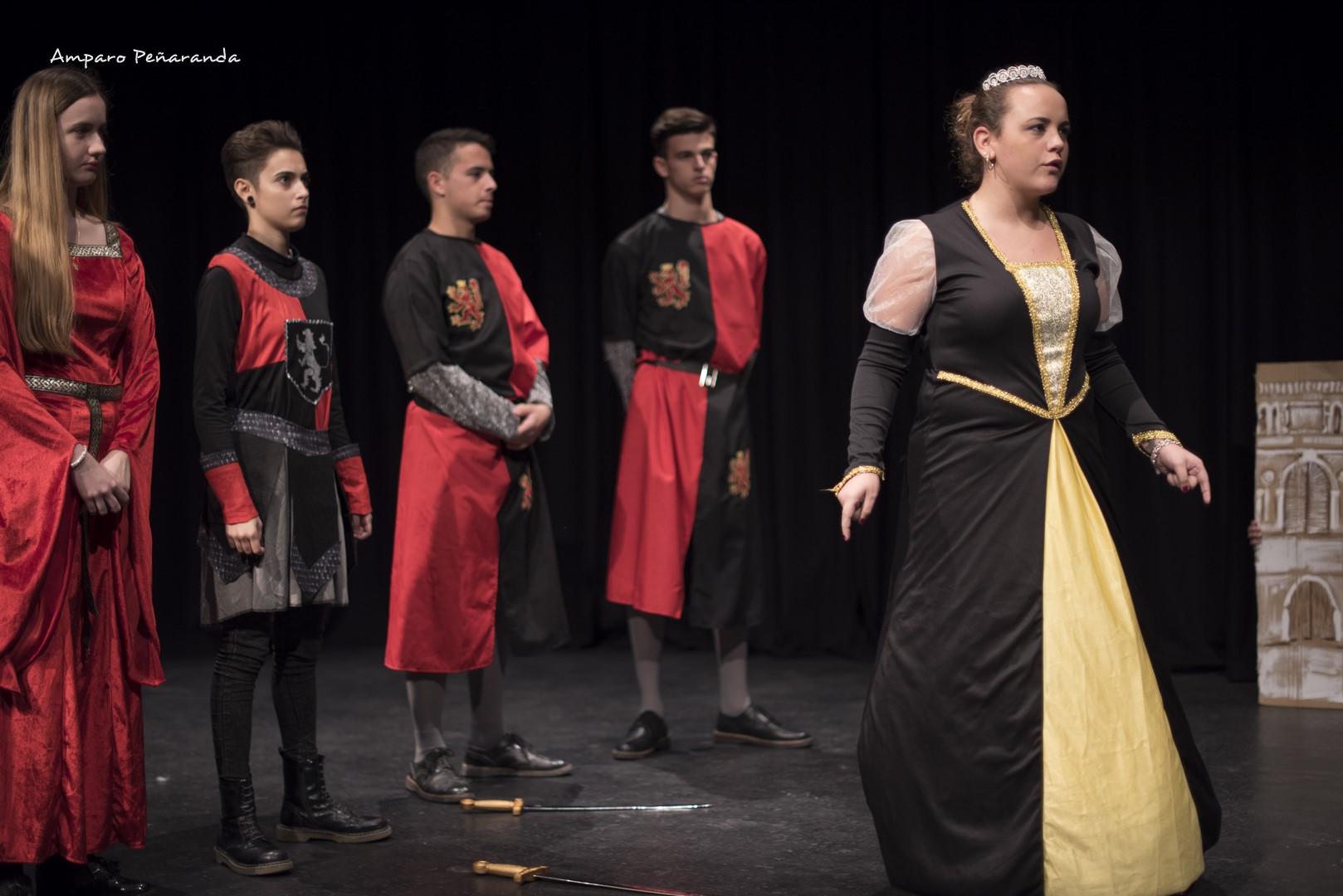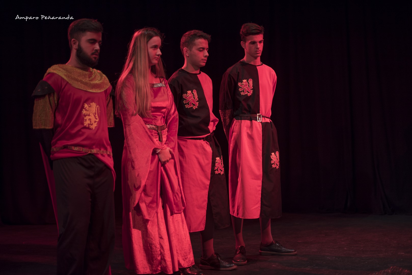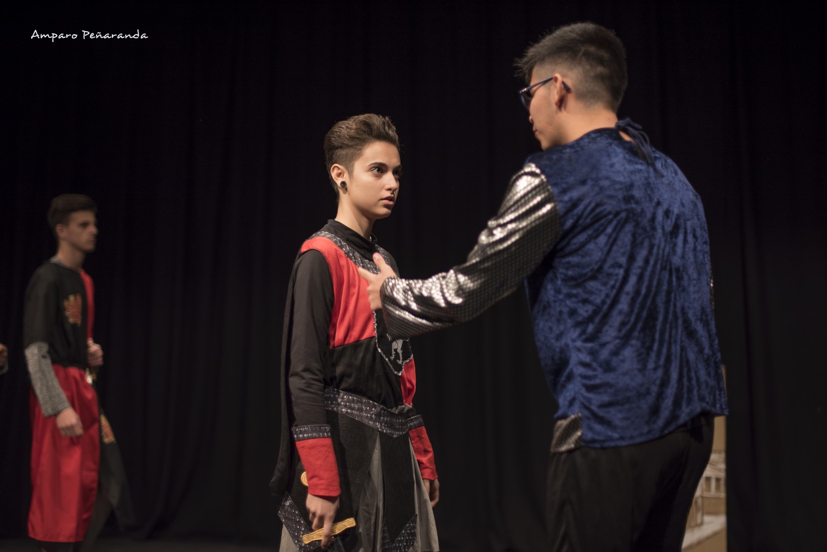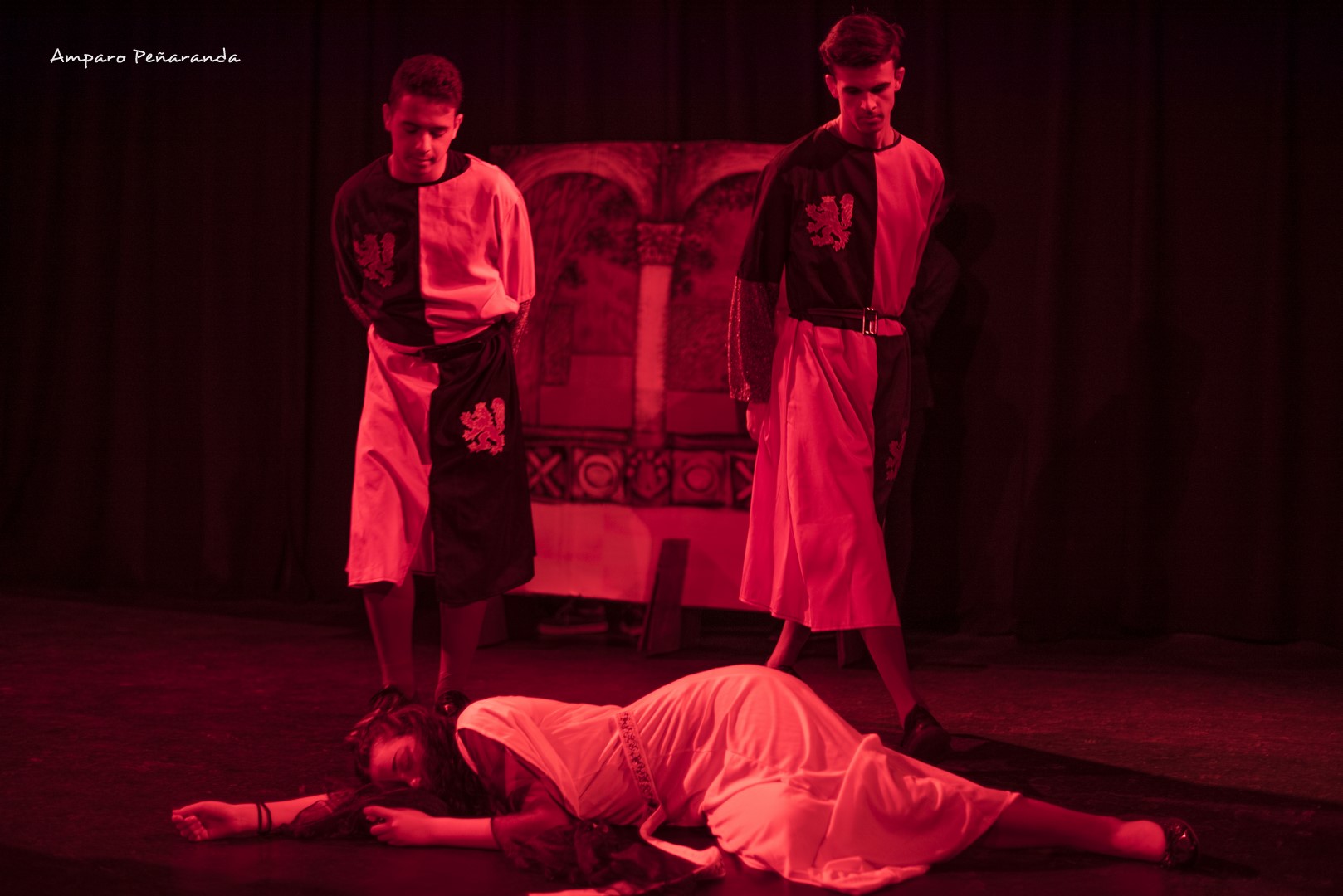 El ansiado día 9, tras los ensayos técnico y artístico de la mañana y el calentamiento de la tarde junto con el resto de alumnos participantes, llegó el momento de la verdad. Los alumnos del IES Antonio Serna lo dieron todo en su representación y el ambiente que se respiraba era verdaderamente mágico. Las actuaciones a nuestras espaldas y la seriedad de la ocasión nos permitieron solventar los pequeños errores que podían ir surgiendo, y, sobre todo, pudimos disfrutar de cada instante, de cada momento, de cada una de las frases que se iban diciendo, de las miradas, de los gestos, de los aplausos y de la complicidad de un público totalmente entregado. Labor realizada y sueño más que cumplido para todos y cada uno de nosotros. Tras acabar nuestra actuación, disfrutamos de las maravillosas actuaciones de los compañeros de la William Ellis School de Londres, con quienes compartimos cartel y que presentaron dos obras distintas, Macbeth y Henry V. Finalmente, subimos todos de nuevo al escenario, y recibimos halagos por parte de la organización y del público asistente, destacando el bonito vestuario, la soltura y entrega de nuestros jóvenes actores, las preciosas piezas musicales en directo, y la valentía por habernos atrevido con un texto tan difícil.