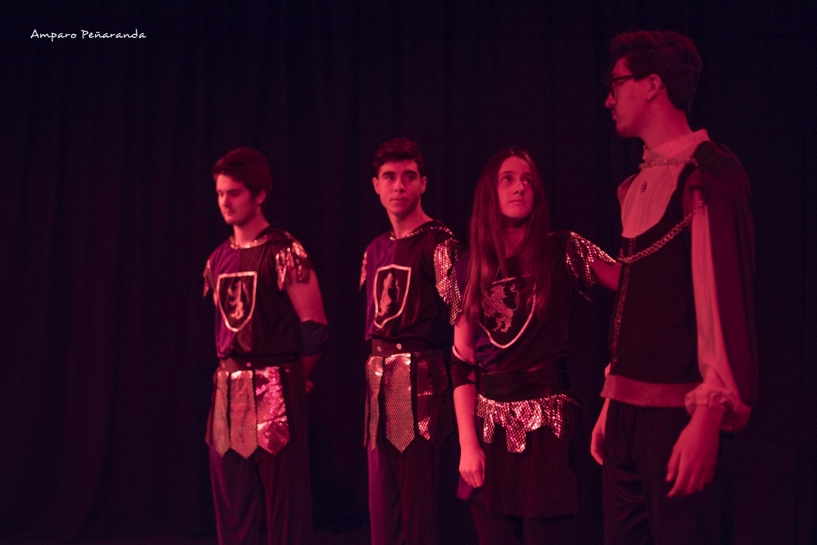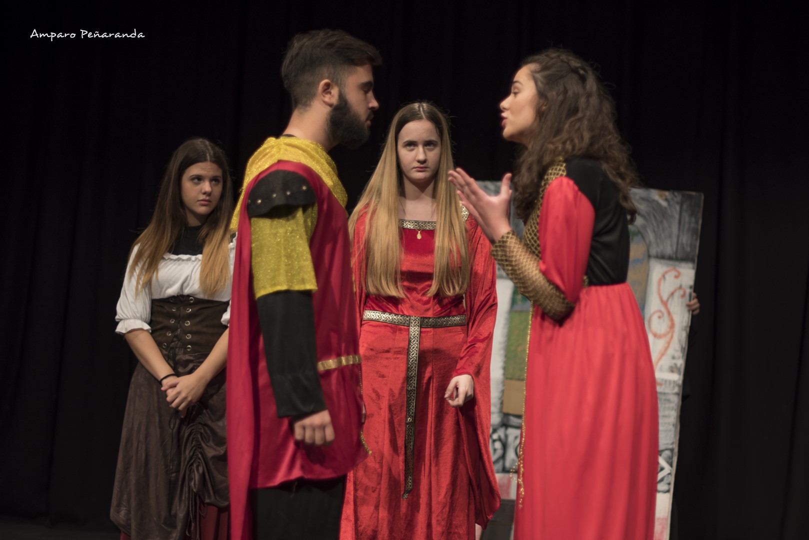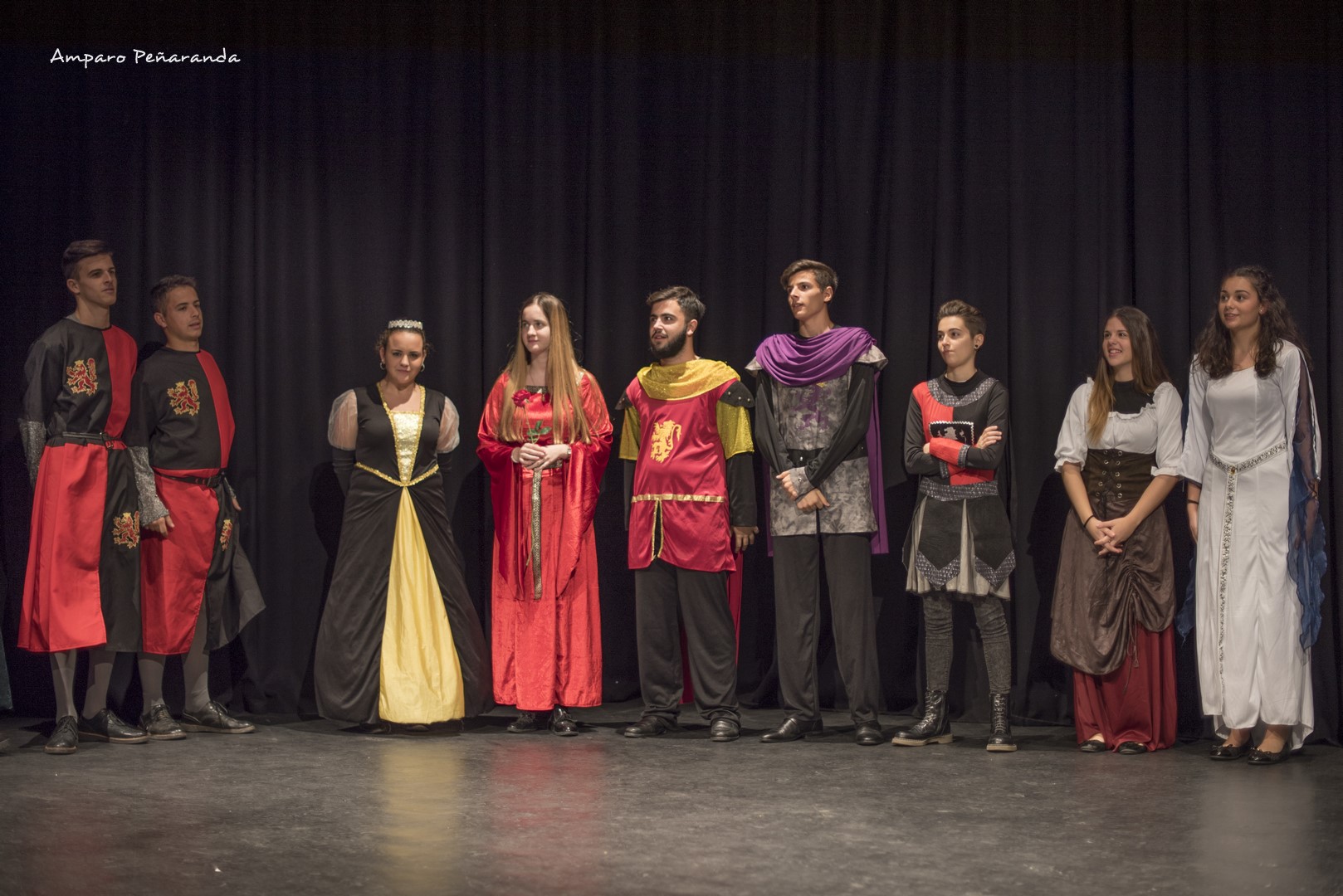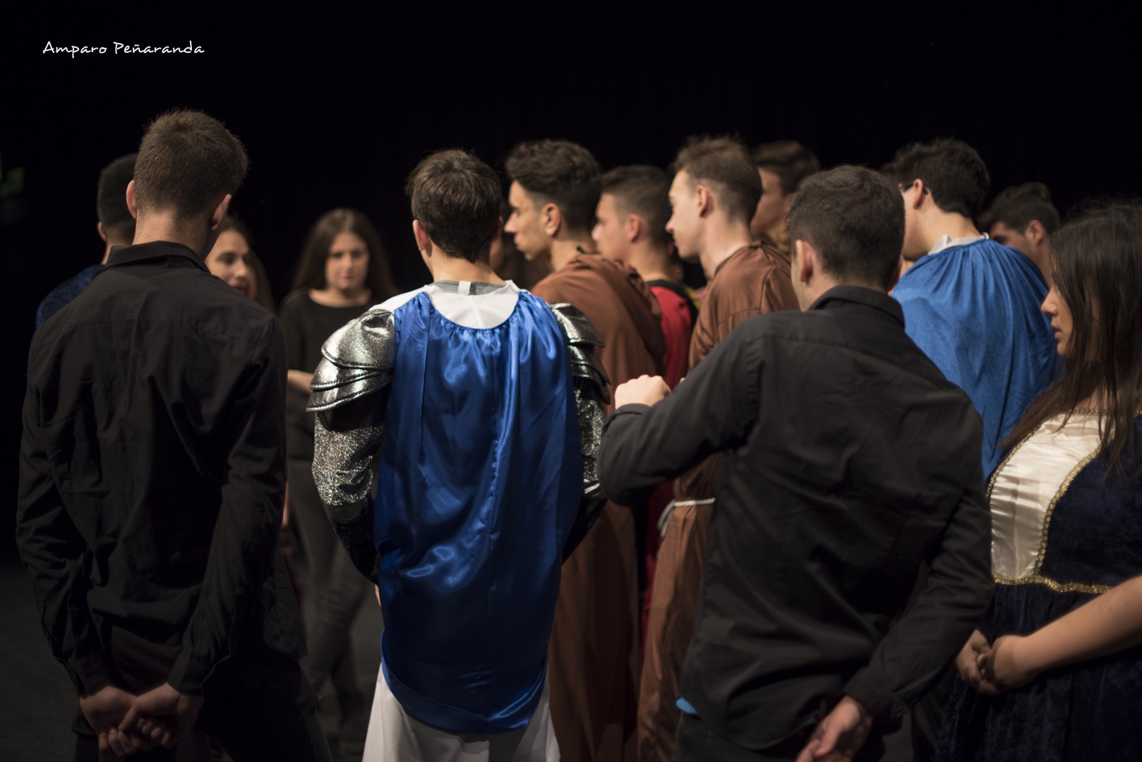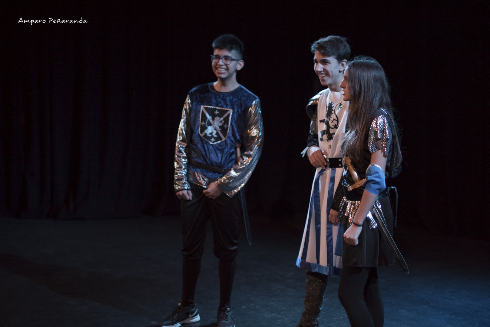 El ansiado día 9, tras los ensayos técnico y artístico de la mañana y el calentamiento de la tarde junto con el resto de alumnos participantes, llegó el momento de la verdad. Los alumnos del IES Antonio Serna lo dieron todo en su representación y el ambiente que se respiraba era verdaderamente mágico. Las actuaciones a nuestras espaldas y la seriedad de la ocasión nos permitieron solventar los pequeños errores que podían ir surgiendo, y, sobre todo, pudimos disfrutar de cada instante, de cada momento, de cada una de las frases que se iban diciendo, de las miradas, de los gestos, de los aplausos y de la complicidad de un público totalmente entregado. Labor realizada y sueño más que cumplido para todos y cada uno de nosotros. Tras acabar nuestra actuación, disfrutamos de las maravillosas actuaciones de los compañeros de la William Ellis School de Londres, con quienes compartimos cartel y que presentaron dos obras distintas, Macbeth y Henry V. Finalmente, subimos todos de nuevo al escenario, y recibimos halagos por parte de la organización y del público asistente, destacando el bonito vestuario, la soltura y entrega de nuestros jóvenes actores, las preciosas piezas musicales en directo, y la valentía por habernos atrevido con un texto tan difícil.