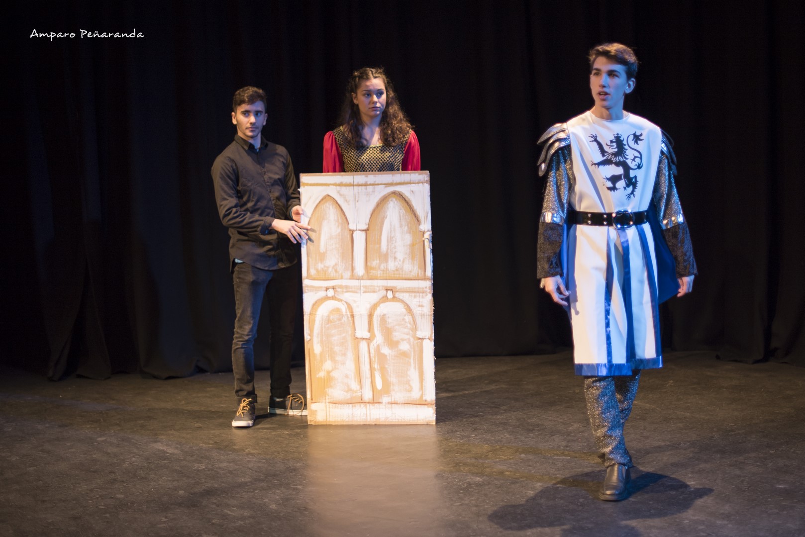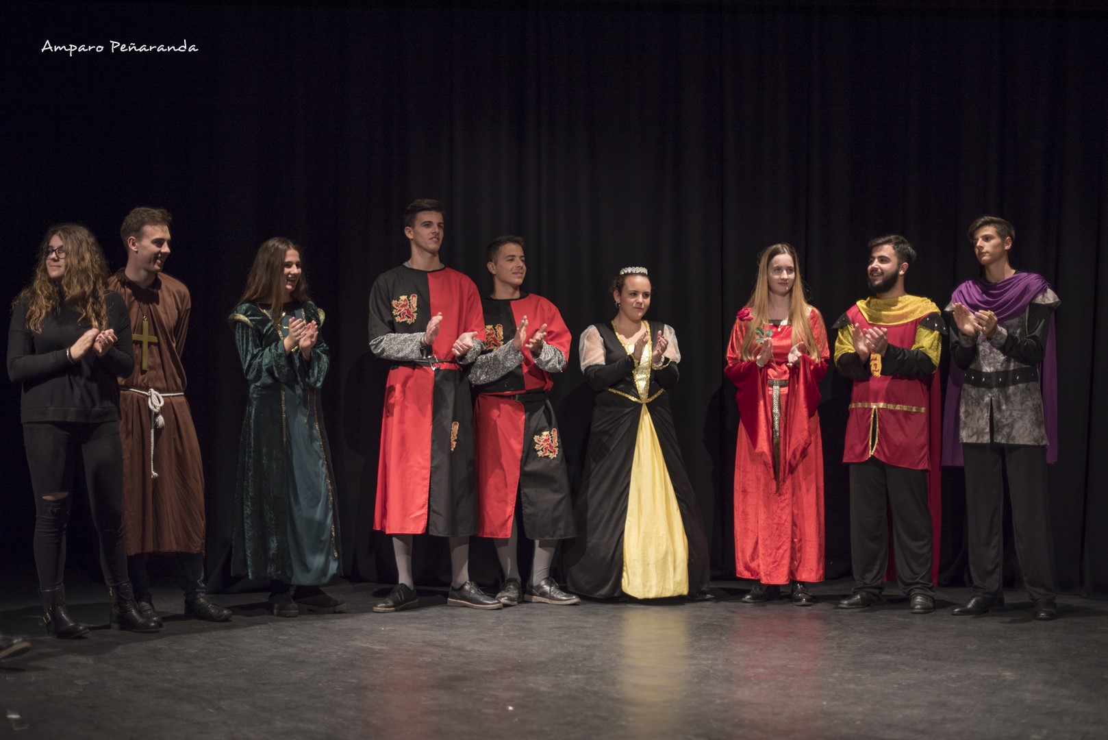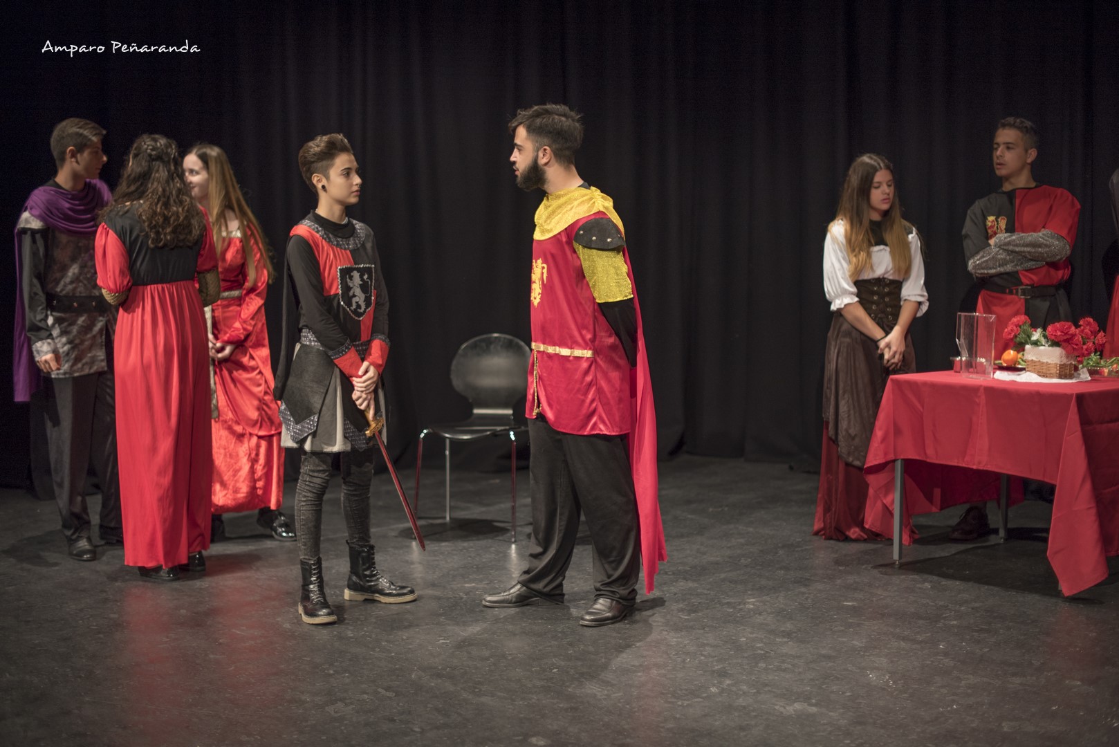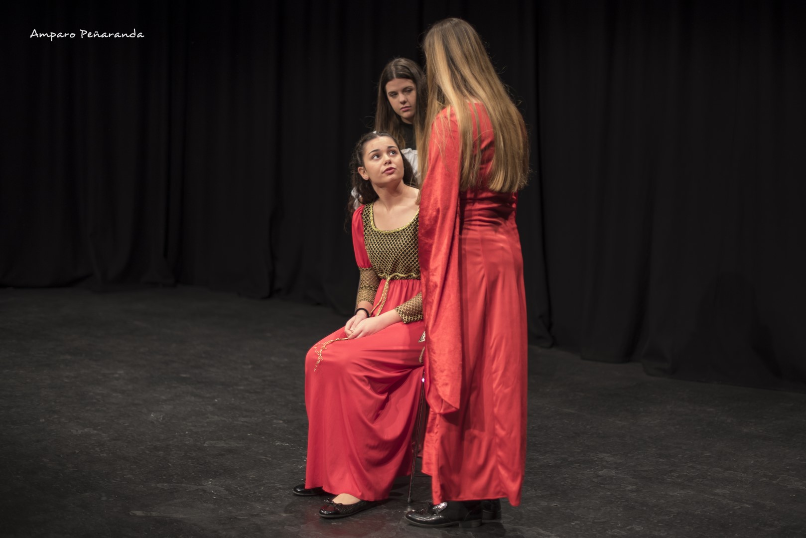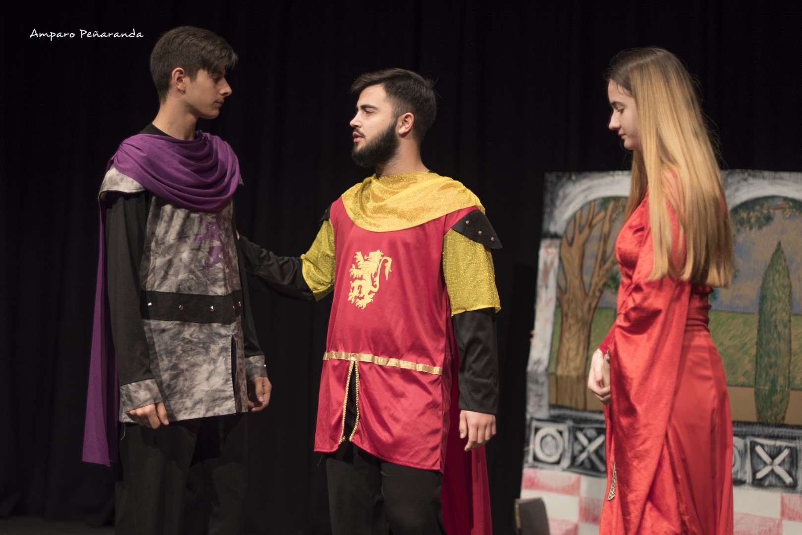 El ansiado día 9, tras los ensayos técnico y artístico de la mañana y el calentamiento de la tarde junto con el resto de alumnos participantes, llegó el momento de la verdad. Los alumnos del IES Antonio Serna lo dieron todo en su representación y el ambiente que se respiraba era verdaderamente mágico. Las actuaciones a nuestras espaldas y la seriedad de la ocasión nos permitieron solventar los pequeños errores que podían ir surgiendo, y, sobre todo, pudimos disfrutar de cada instante, de cada momento, de cada una de las frases que se iban diciendo, de las miradas, de los gestos, de los aplausos y de la complicidad de un público totalmente entregado. Labor realizada y sueño más que cumplido para todos y cada uno de nosotros. Tras acabar nuestra actuación, disfrutamos de las maravillosas actuaciones de los compañeros de la William Ellis School de Londres, con quienes compartimos cartel y que presentaron dos obras distintas, Macbeth y Henry V. Finalmente, subimos todos de nuevo al escenario, y recibimos halagos por parte de la organización y del público asistente, destacando el bonito vestuario, la soltura y entrega de nuestros jóvenes actores, las preciosas piezas musicales en directo, y la valentía por habernos atrevido con un texto tan difícil.