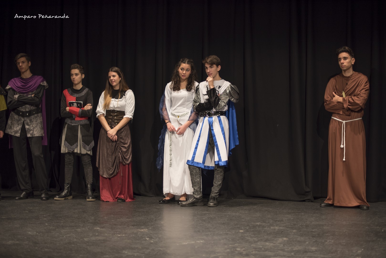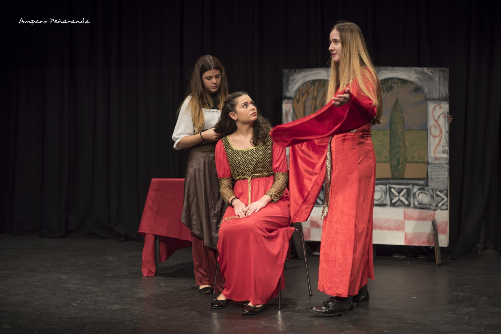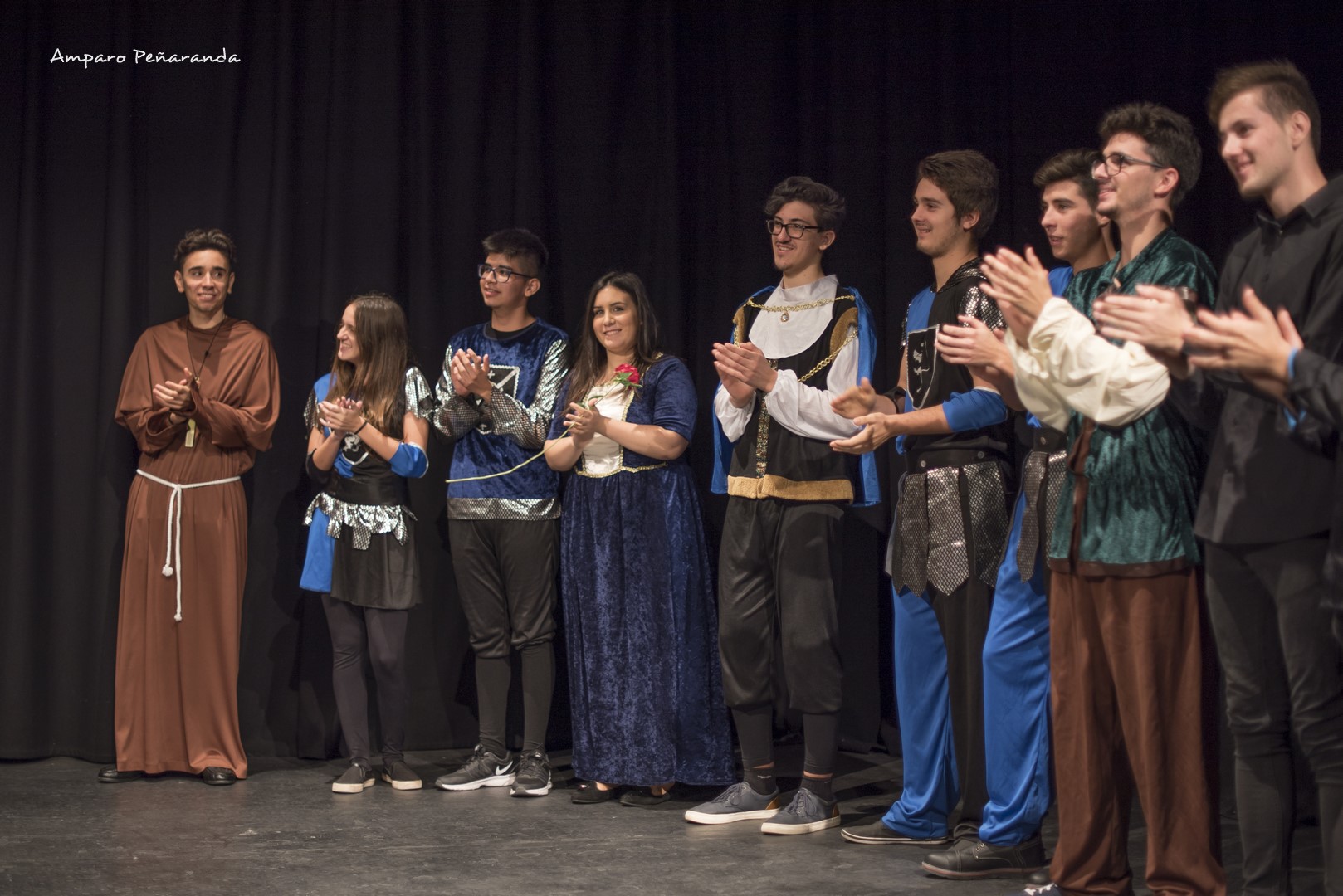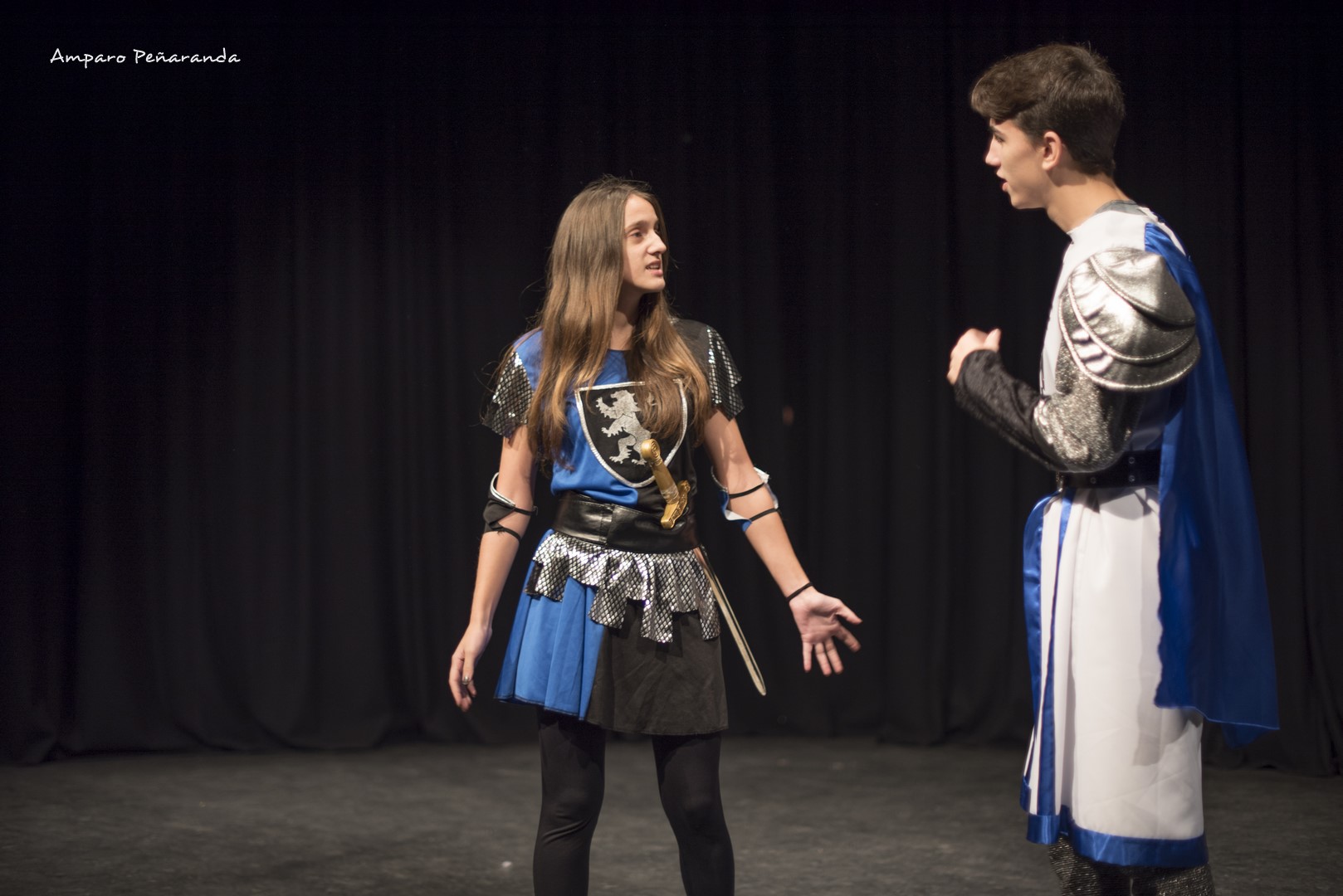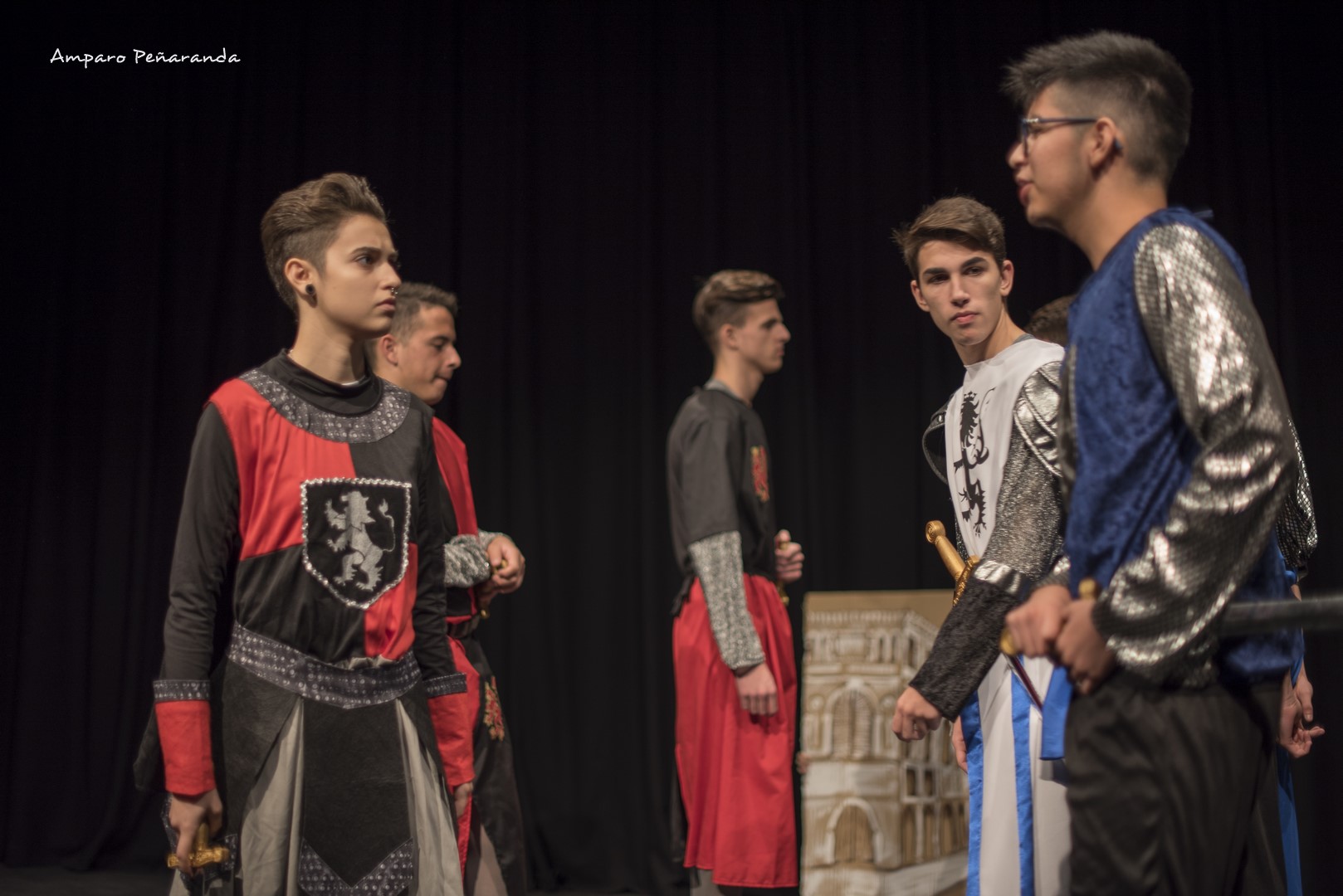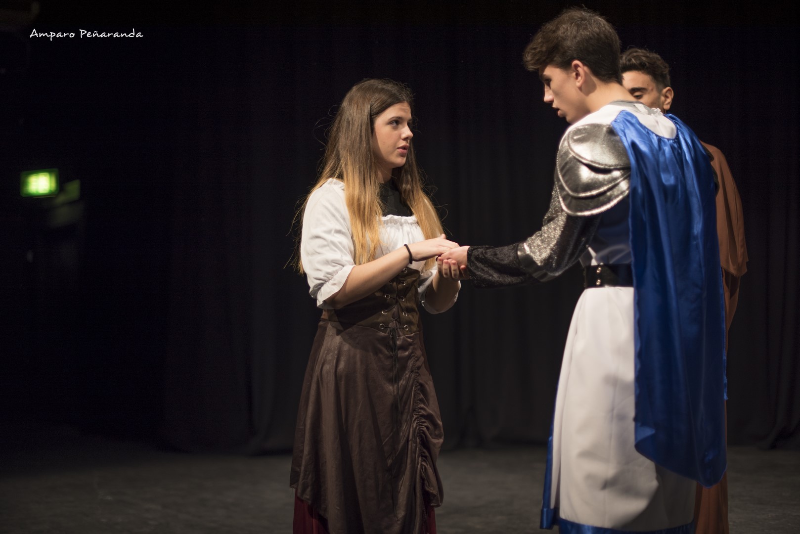 El ansiado día 9, tras los ensayos técnico y artístico de la mañana y el calentamiento de la tarde junto con el resto de alumnos participantes, llegó el momento de la verdad. Los alumnos del IES Antonio Serna lo dieron todo en su representación y el ambiente que se respiraba era verdaderamente mágico. Las actuaciones a nuestras espaldas y la seriedad de la ocasión nos permitieron solventar los pequeños errores que podían ir surgiendo, y, sobre todo, pudimos disfrutar de cada instante, de cada momento, de cada una de las frases que se iban diciendo, de las miradas, de los gestos, de los aplausos y de la complicidad de un público totalmente entregado. Labor realizada y sueño más que cumplido para todos y cada uno de nosotros. Tras acabar nuestra actuación, disfrutamos de las maravillosas actuaciones de los compañeros de la William Ellis School de Londres, con quienes compartimos cartel y que presentaron dos obras distintas, Macbeth y Henry V. Finalmente, subimos todos de nuevo al escenario, y recibimos halagos por parte de la organización y del público asistente, destacando el bonito vestuario, la soltura y entrega de nuestros jóvenes actores, las preciosas piezas musicales en directo, y la valentía por habernos atrevido con un texto tan difícil.