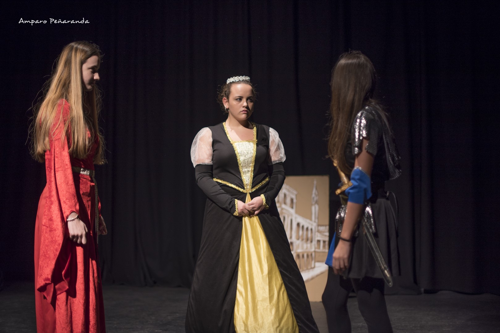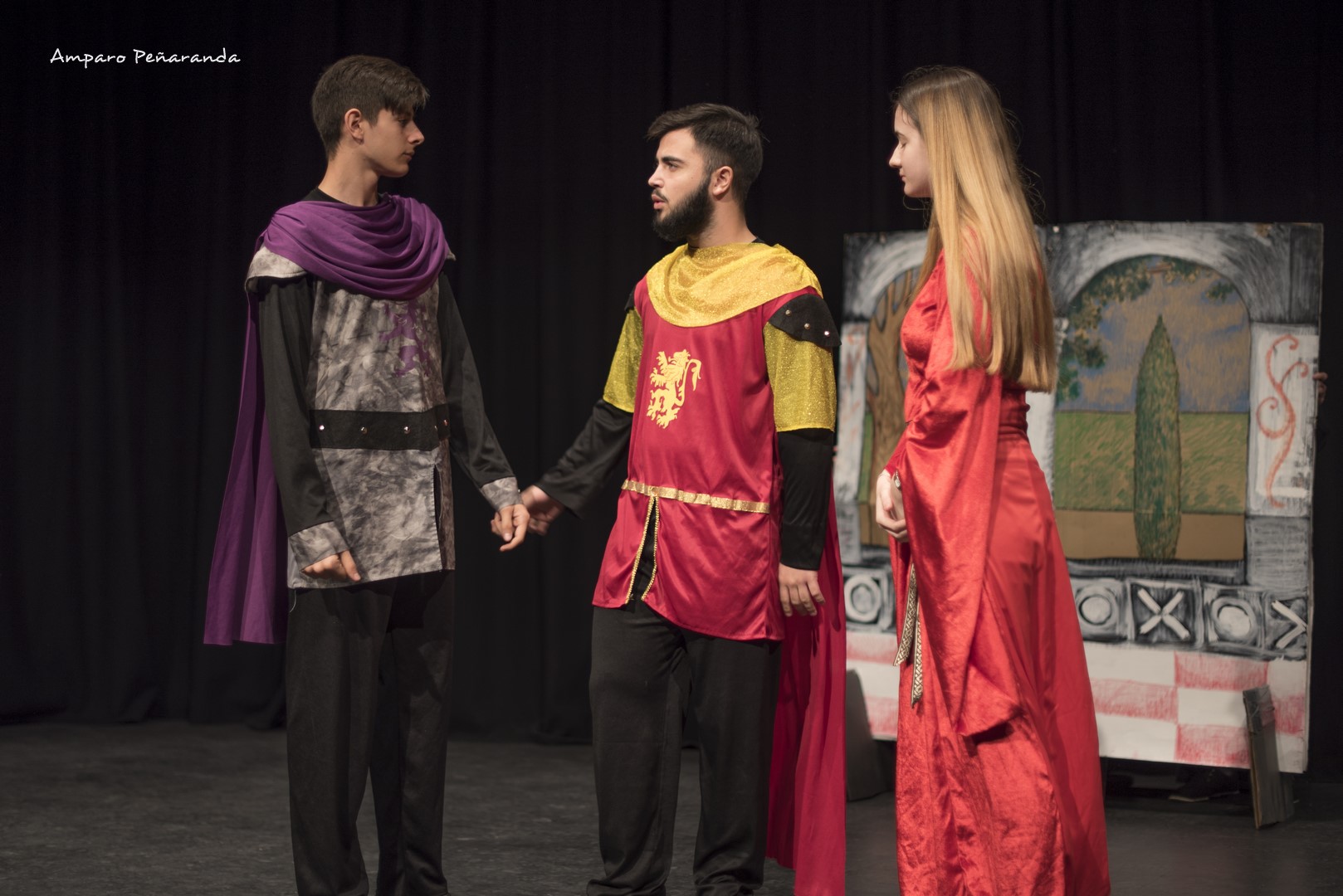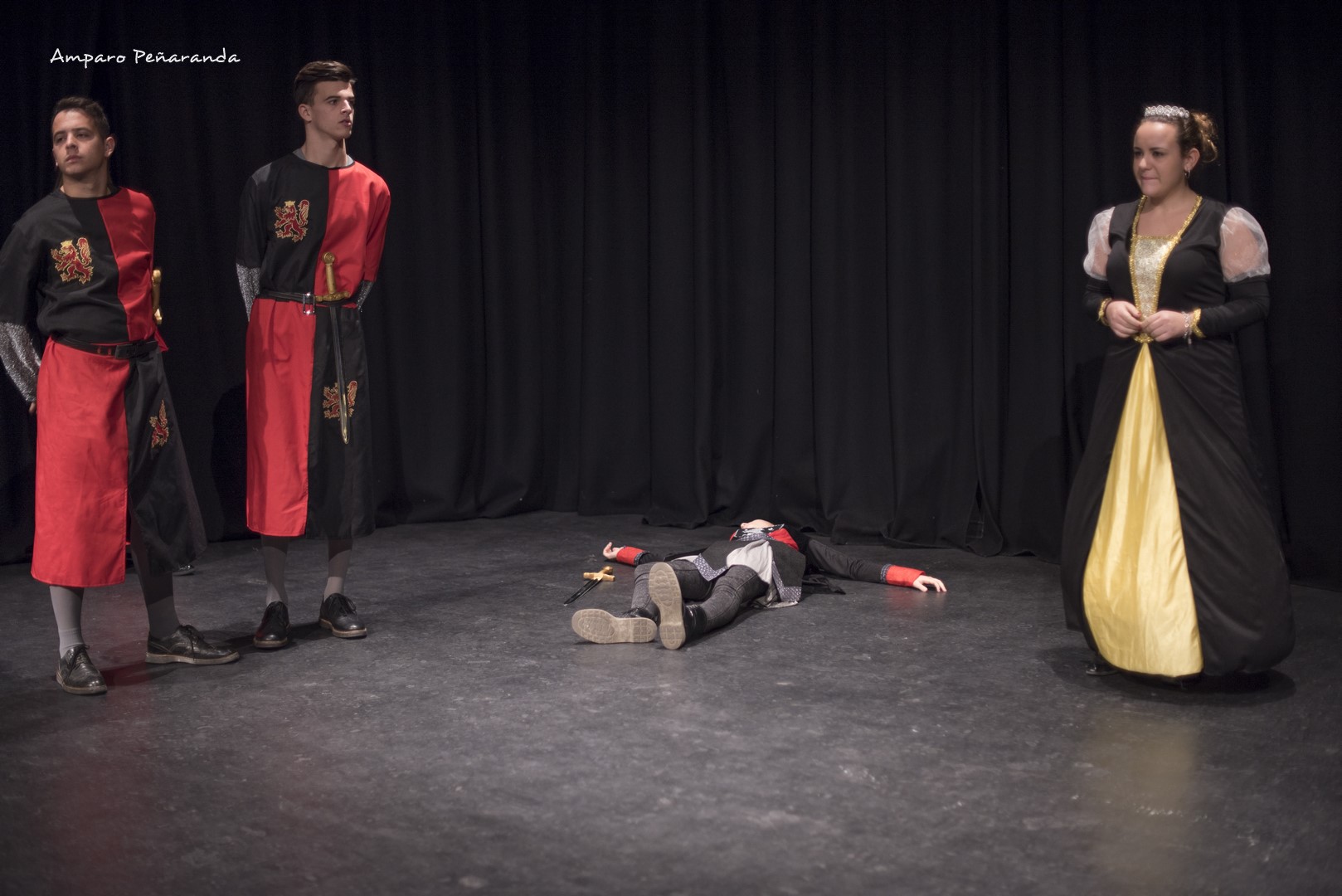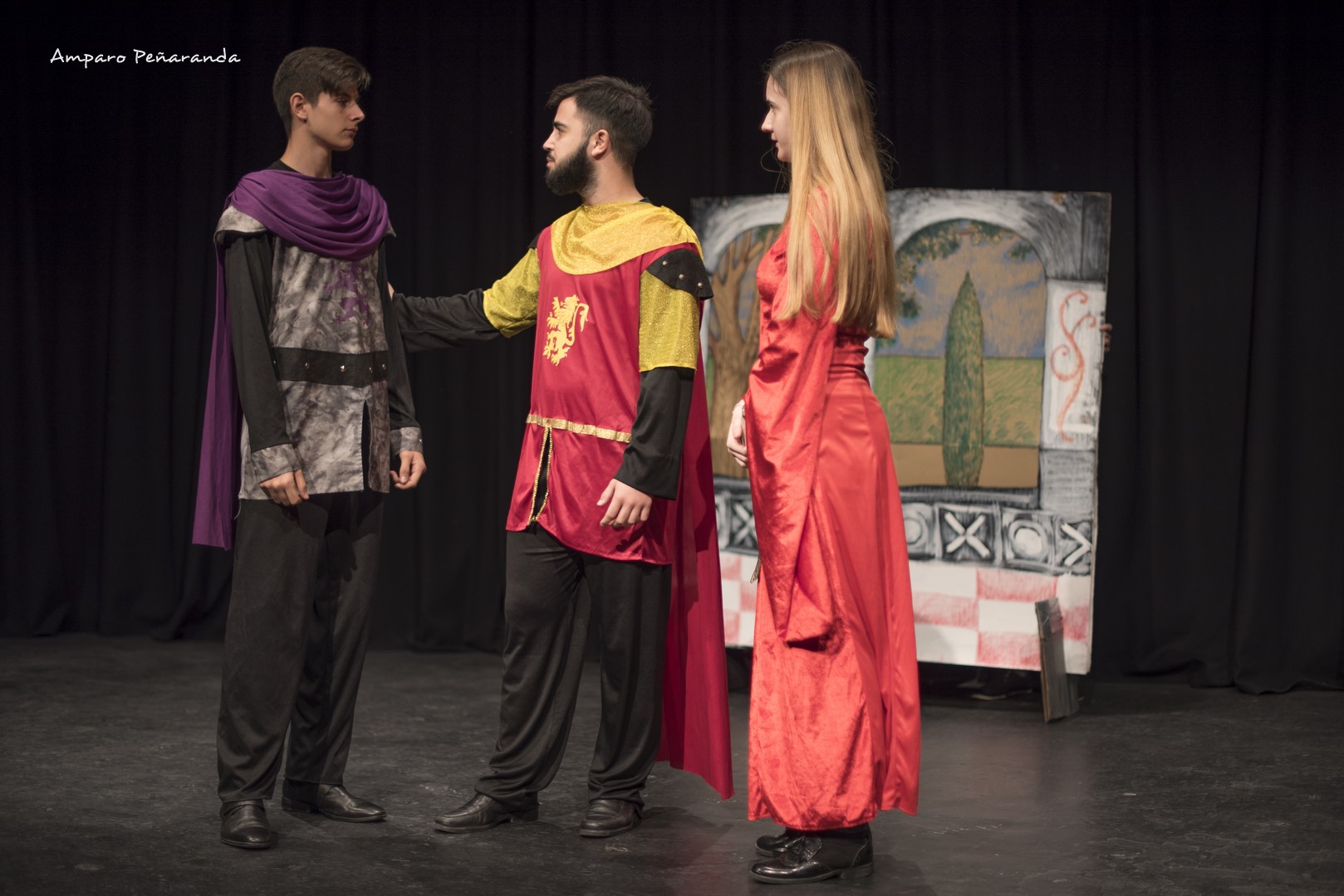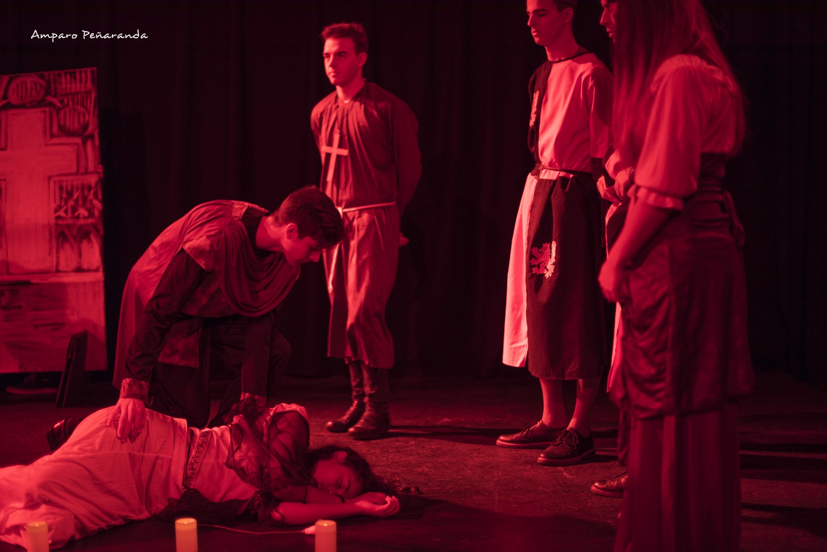 El ansiado día 9, tras los ensayos técnico y artístico de la mañana y el calentamiento de la tarde junto con el resto de alumnos participantes, llegó el momento de la verdad. Los alumnos del IES Antonio Serna lo dieron todo en su representación y el ambiente que se respiraba era verdaderamente mágico. Las actuaciones a nuestras espaldas y la seriedad de la ocasión nos permitieron solventar los pequeños errores que podían ir surgiendo, y, sobre todo, pudimos disfrutar de cada instante, de cada momento, de cada una de las frases que se iban diciendo, de las miradas, de los gestos, de los aplausos y de la complicidad de un público totalmente entregado. Labor realizada y sueño más que cumplido para todos y cada uno de nosotros. Tras acabar nuestra actuación, disfrutamos de las maravillosas actuaciones de los compañeros de la William Ellis School de Londres, con quienes compartimos cartel y que presentaron dos obras distintas, Macbeth y Henry V. Finalmente, subimos todos de nuevo al escenario, y recibimos halagos por parte de la organización y del público asistente, destacando el bonito vestuario, la soltura y entrega de nuestros jóvenes actores, las preciosas piezas musicales en directo, y la valentía por habernos atrevido con un texto tan difícil.