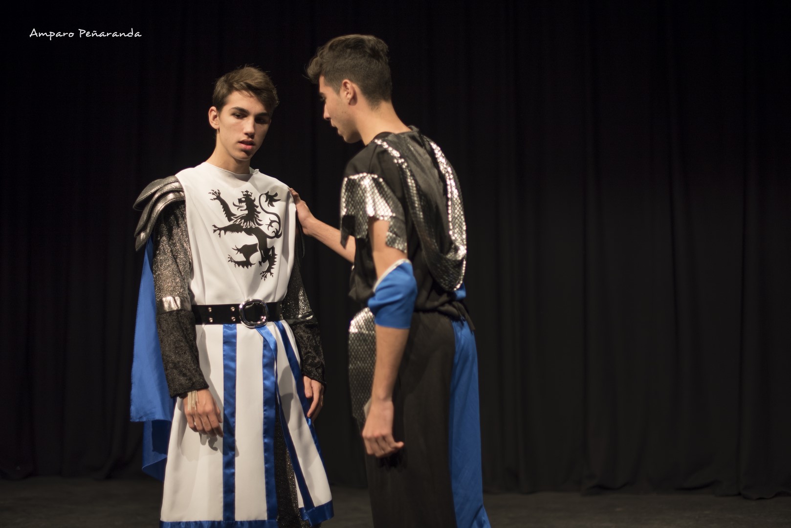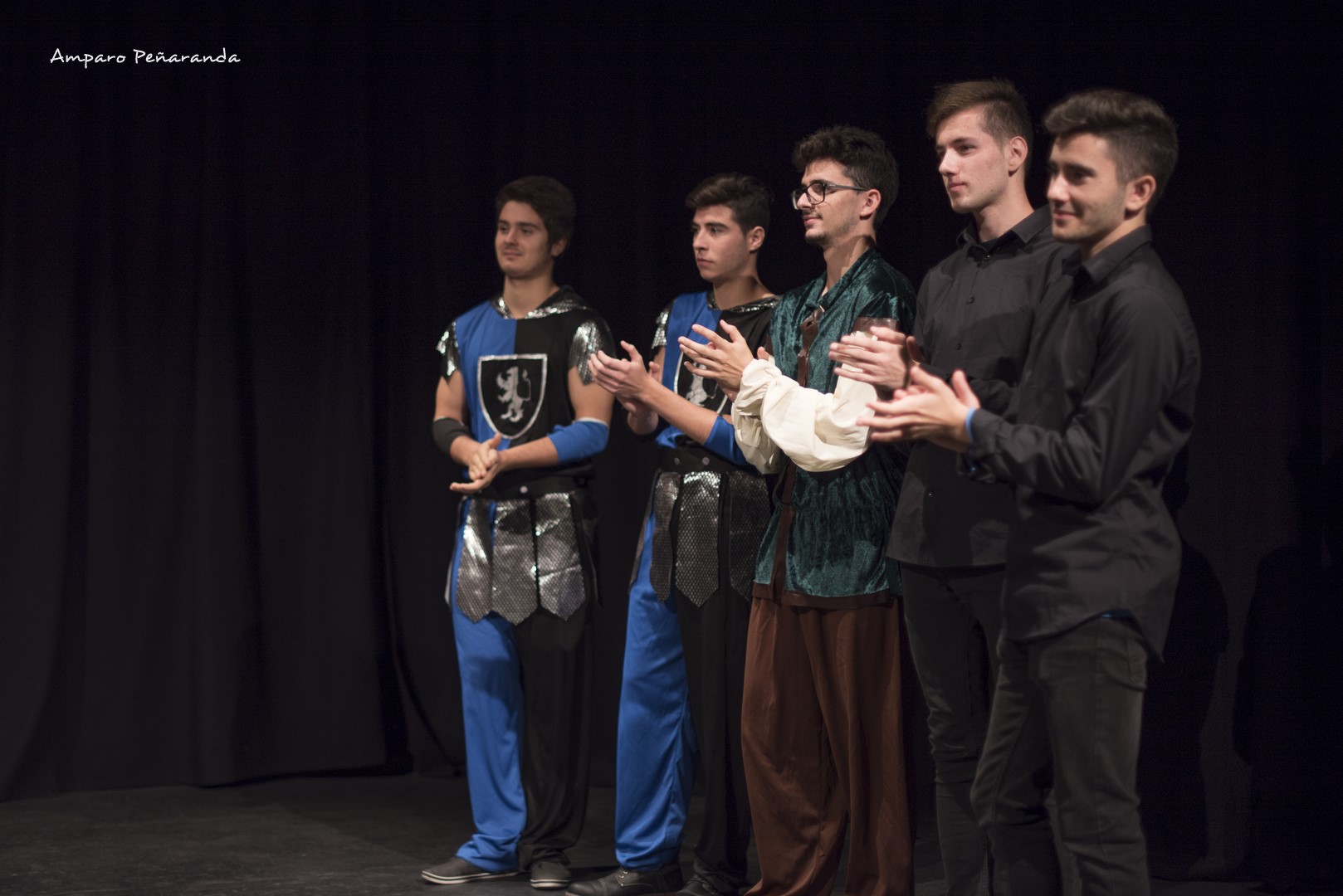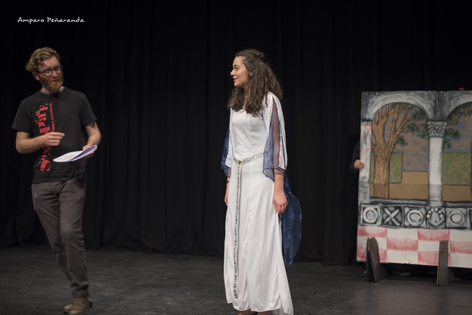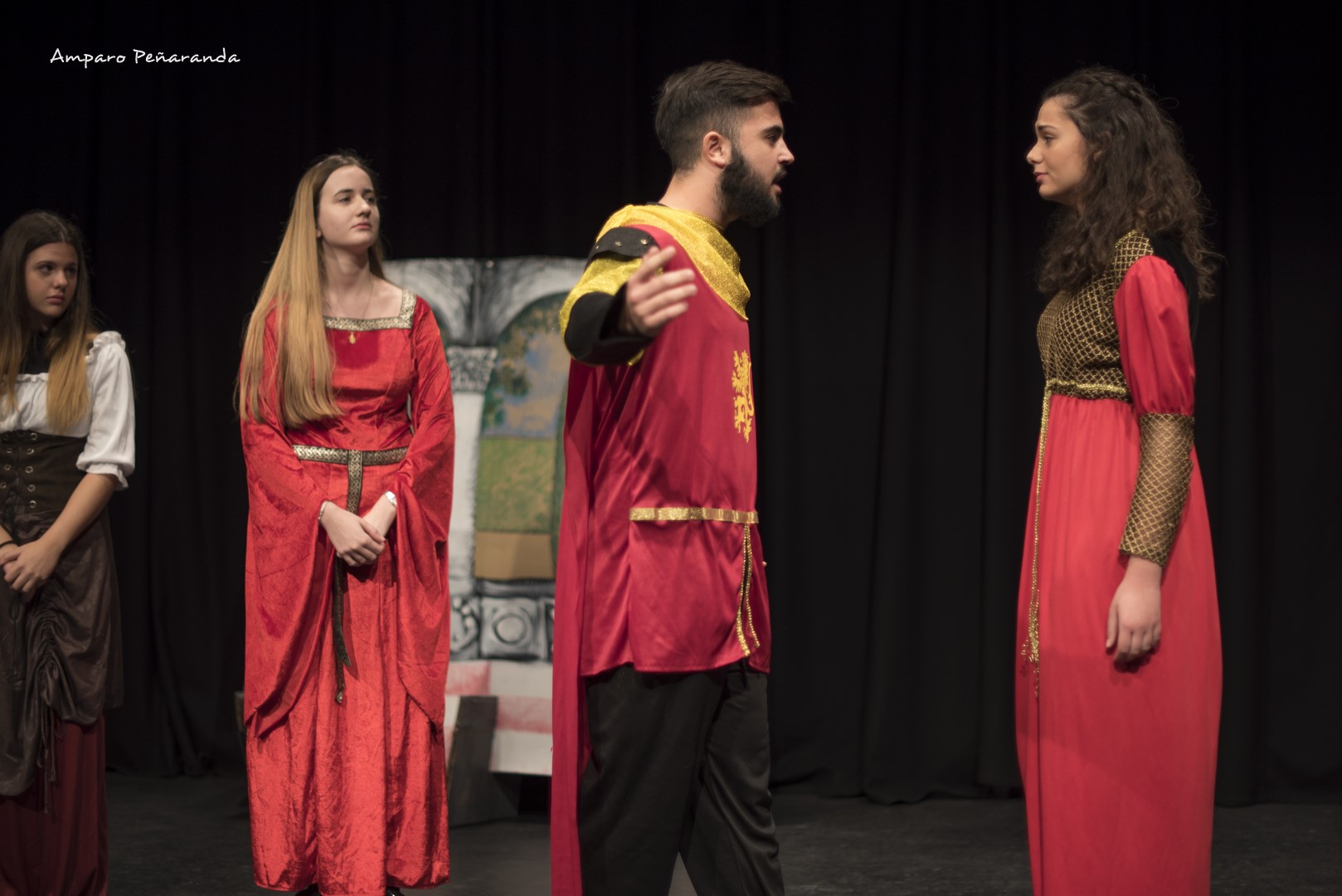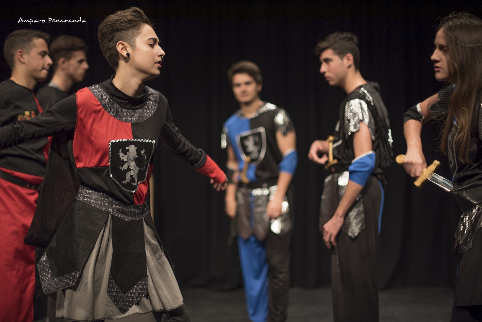 El ansiado día 9, tras los ensayos técnico y artístico de la mañana y el calentamiento de la tarde junto con el resto de alumnos participantes, llegó el momento de la verdad. Los alumnos del IES Antonio Serna lo dieron todo en su representación y el ambiente que se respiraba era verdaderamente mágico. Las actuaciones a nuestras espaldas y la seriedad de la ocasión nos permitieron solventar los pequeños errores que podían ir surgiendo, y, sobre todo, pudimos disfrutar de cada instante, de cada momento, de cada una de las frases que se iban diciendo, de las miradas, de los gestos, de los aplausos y de la complicidad de un público totalmente entregado. Labor realizada y sueño más que cumplido para todos y cada uno de nosotros. Tras acabar nuestra actuación, disfrutamos de las maravillosas actuaciones de los compañeros de la William Ellis School de Londres, con quienes compartimos cartel y que presentaron dos obras distintas, Macbeth y Henry V. Finalmente, subimos todos de nuevo al escenario, y recibimos halagos por parte de la organización y del público asistente, destacando el bonito vestuario, la soltura y entrega de nuestros jóvenes actores, las preciosas piezas musicales en directo, y la valentía por habernos atrevido con un texto tan difícil.