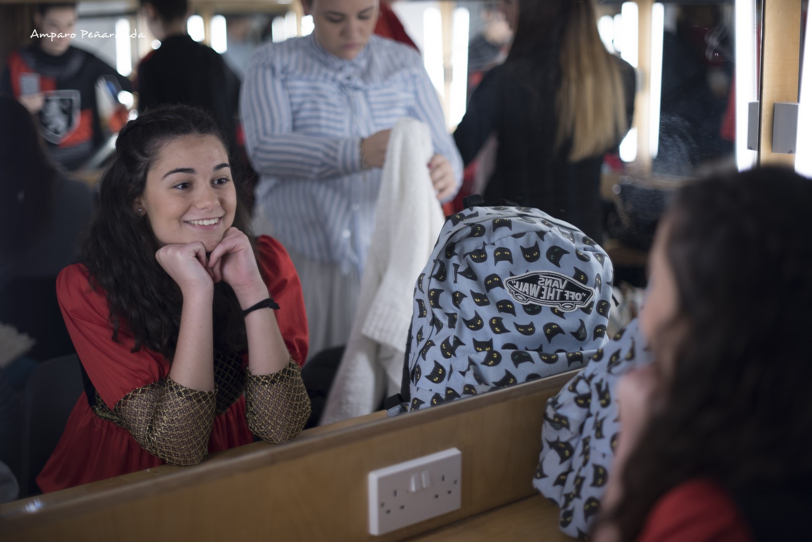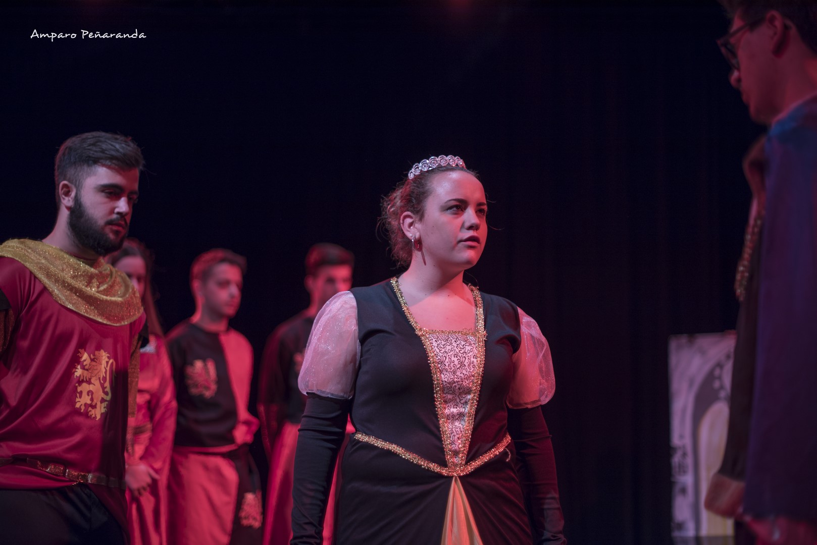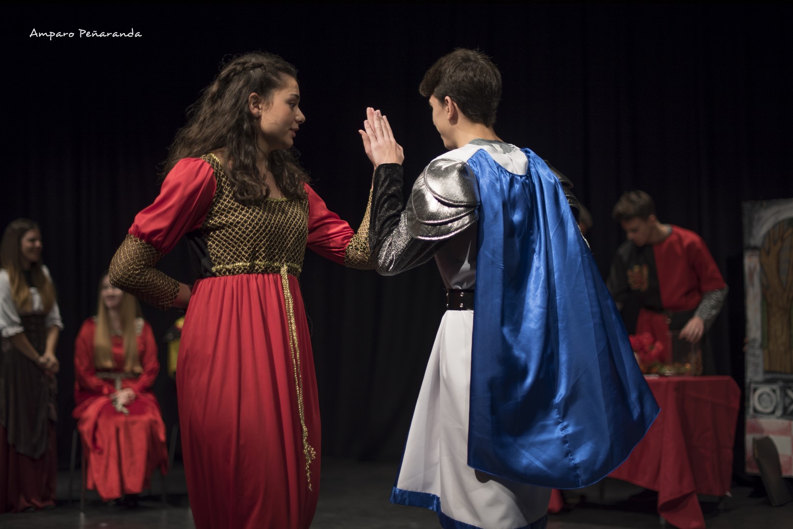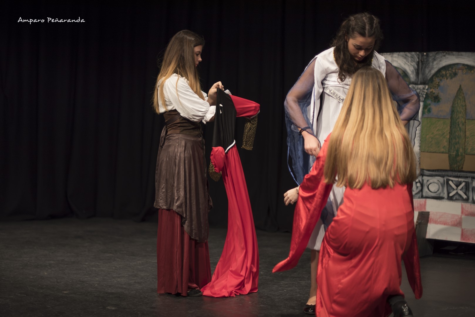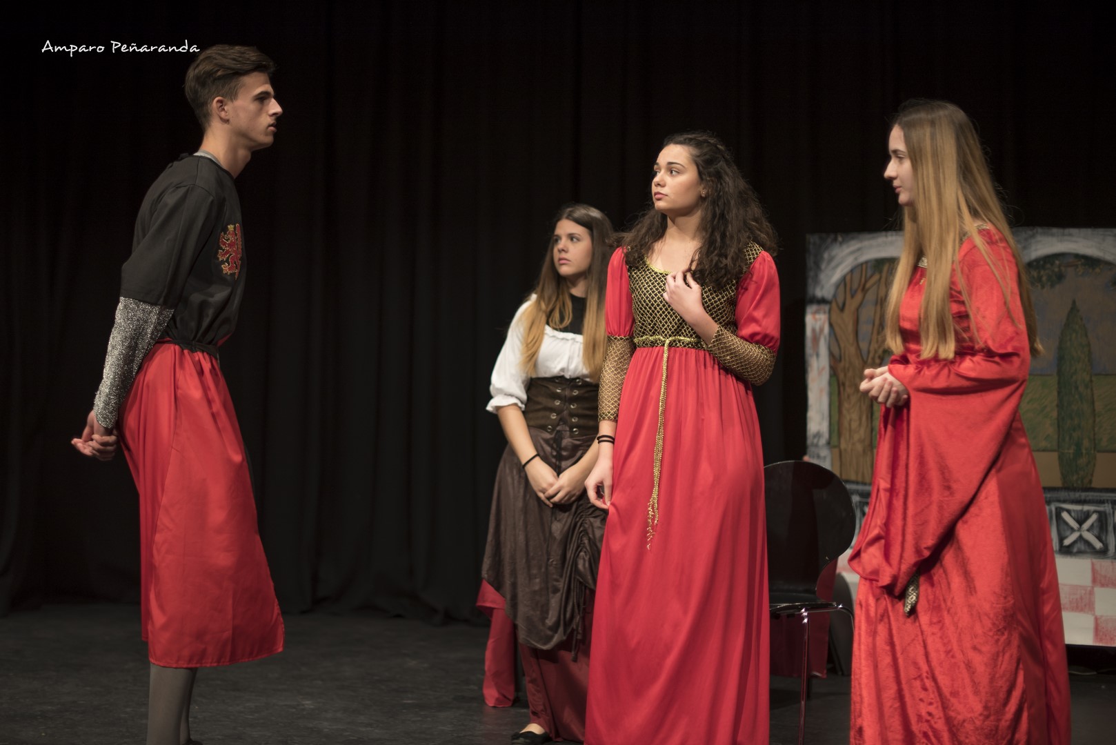El ansiado día 9, tras los ensayos técnico y artístico de la mañana y el calentamiento de la tarde junto con el resto de alumnos participantes, llegó el momento de la verdad. Los alumnos del IES Antonio Serna lo dieron todo en su representación y el ambiente que se respiraba era verdaderamente mágico. Las actuaciones a nuestras espaldas y la seriedad de la ocasión nos permitieron solventar los pequeños errores que podían ir surgiendo, y, sobre todo, pudimos disfrutar de cada instante, de cada momento, de cada una de las frases que se iban diciendo, de las miradas, de los gestos, de los aplausos y de la complicidad de un público totalmente entregado. Labor realizada y sueño más que cumplido para todos y cada uno de nosotros. Tras acabar nuestra actuación, disfrutamos de las maravillosas actuaciones de los compañeros de la William Ellis School de Londres, con quienes compartimos cartel y que presentaron dos obras distintas, Macbeth y Henry V. Finalmente, subimos todos de nuevo al escenario, y recibimos halagos por parte de la organización y del público asistente, destacando el bonito vestuario, la soltura y entrega de nuestros jóvenes actores, las preciosas piezas musicales en directo, y la valentía por habernos atrevido con un texto tan difícil.