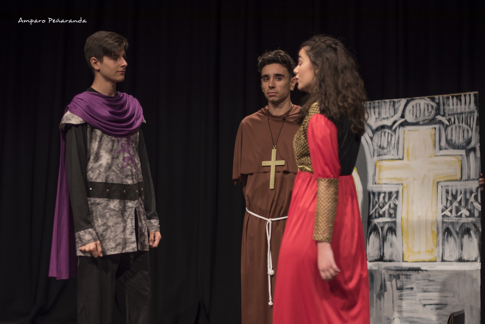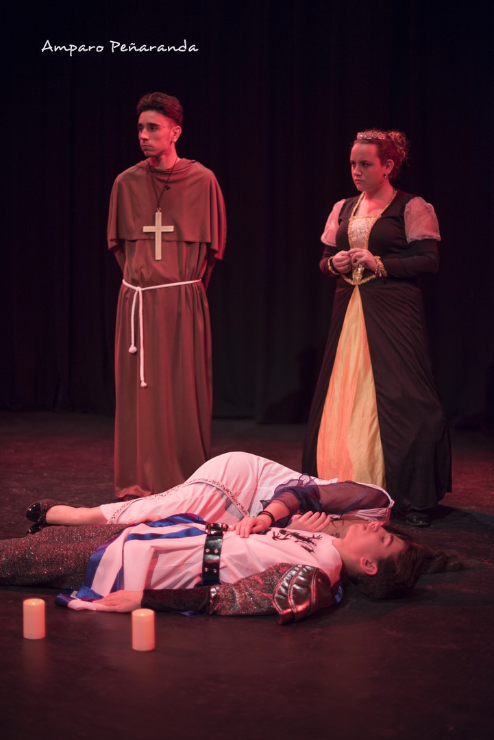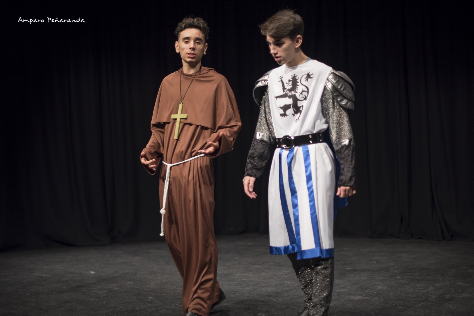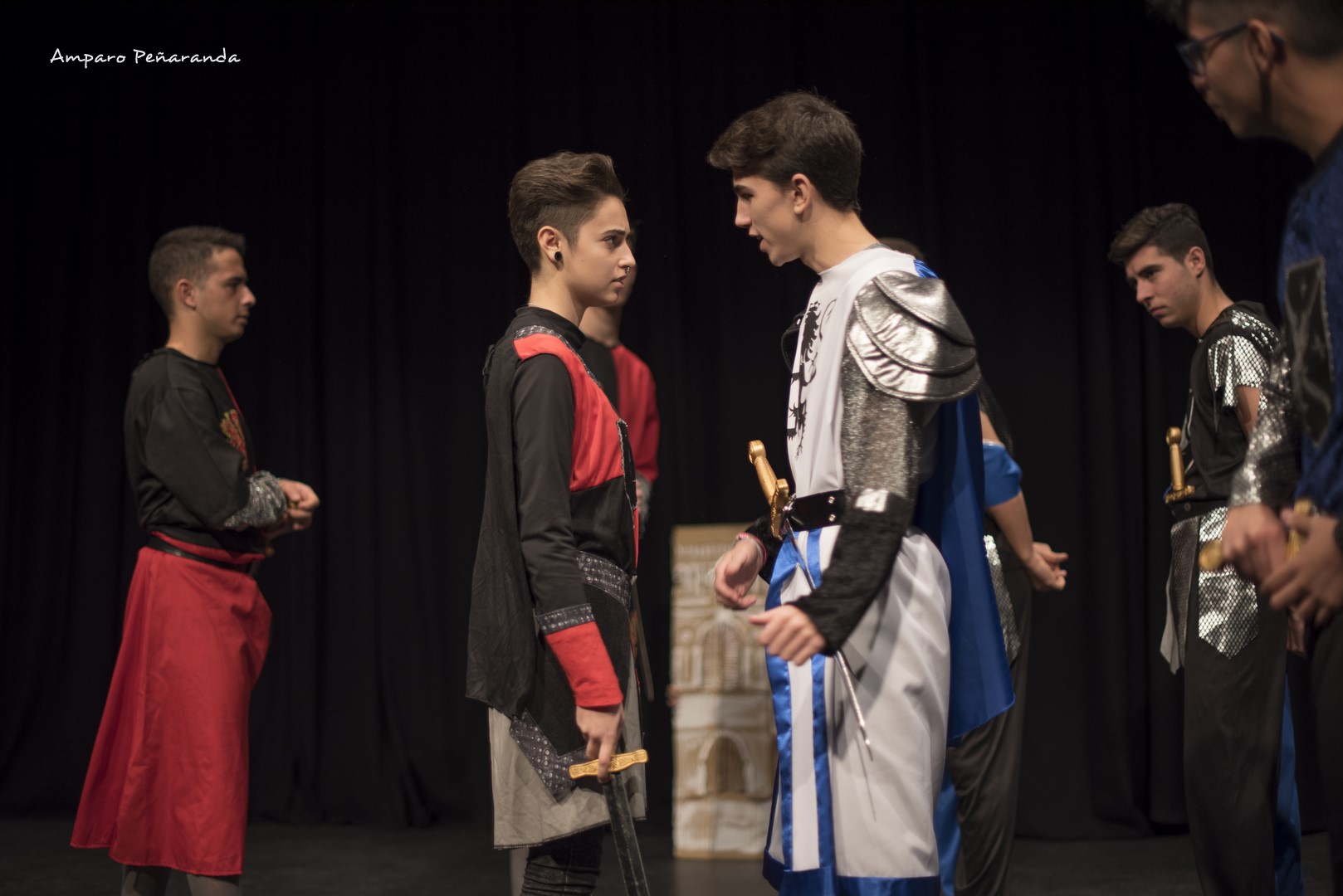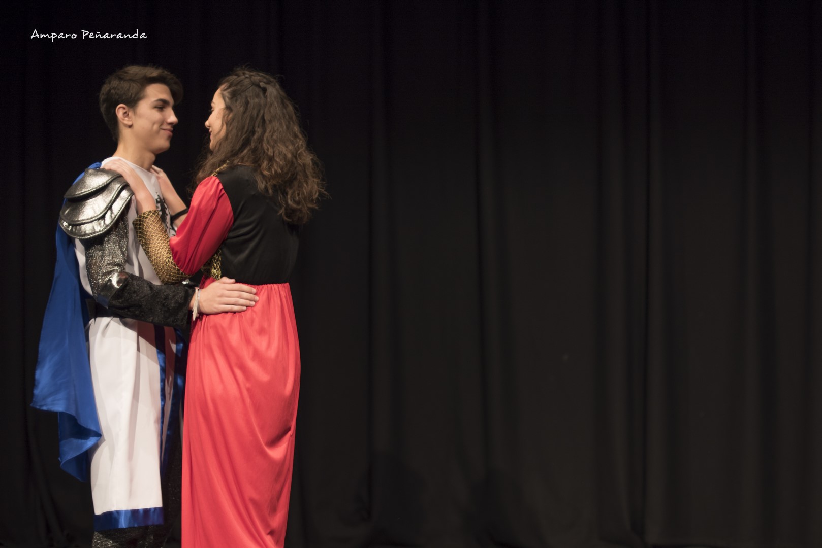 El ansiado día 9, tras los ensayos técnico y artístico de la mañana y el calentamiento de la tarde junto con el resto de alumnos participantes, llegó el momento de la verdad. Los alumnos del IES Antonio Serna lo dieron todo en su representación y el ambiente que se respiraba era verdaderamente mágico. Las actuaciones a nuestras espaldas y la seriedad de la ocasión nos permitieron solventar los pequeños errores que podían ir surgiendo, y, sobre todo, pudimos disfrutar de cada instante, de cada momento, de cada una de las frases que se iban diciendo, de las miradas, de los gestos, de los aplausos y de la complicidad de un público totalmente entregado. Labor realizada y sueño más que cumplido para todos y cada uno de nosotros. Tras acabar nuestra actuación, disfrutamos de las maravillosas actuaciones de los compañeros de la William Ellis School de Londres, con quienes compartimos cartel y que presentaron dos obras distintas, Macbeth y Henry V. Finalmente, subimos todos de nuevo al escenario, y recibimos halagos por parte de la organización y del público asistente, destacando el bonito vestuario, la soltura y entrega de nuestros jóvenes actores, las preciosas piezas musicales en directo, y la valentía por habernos atrevido con un texto tan difícil.