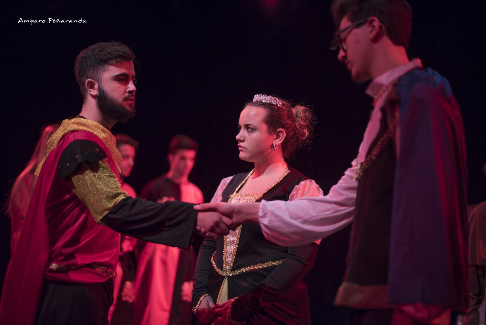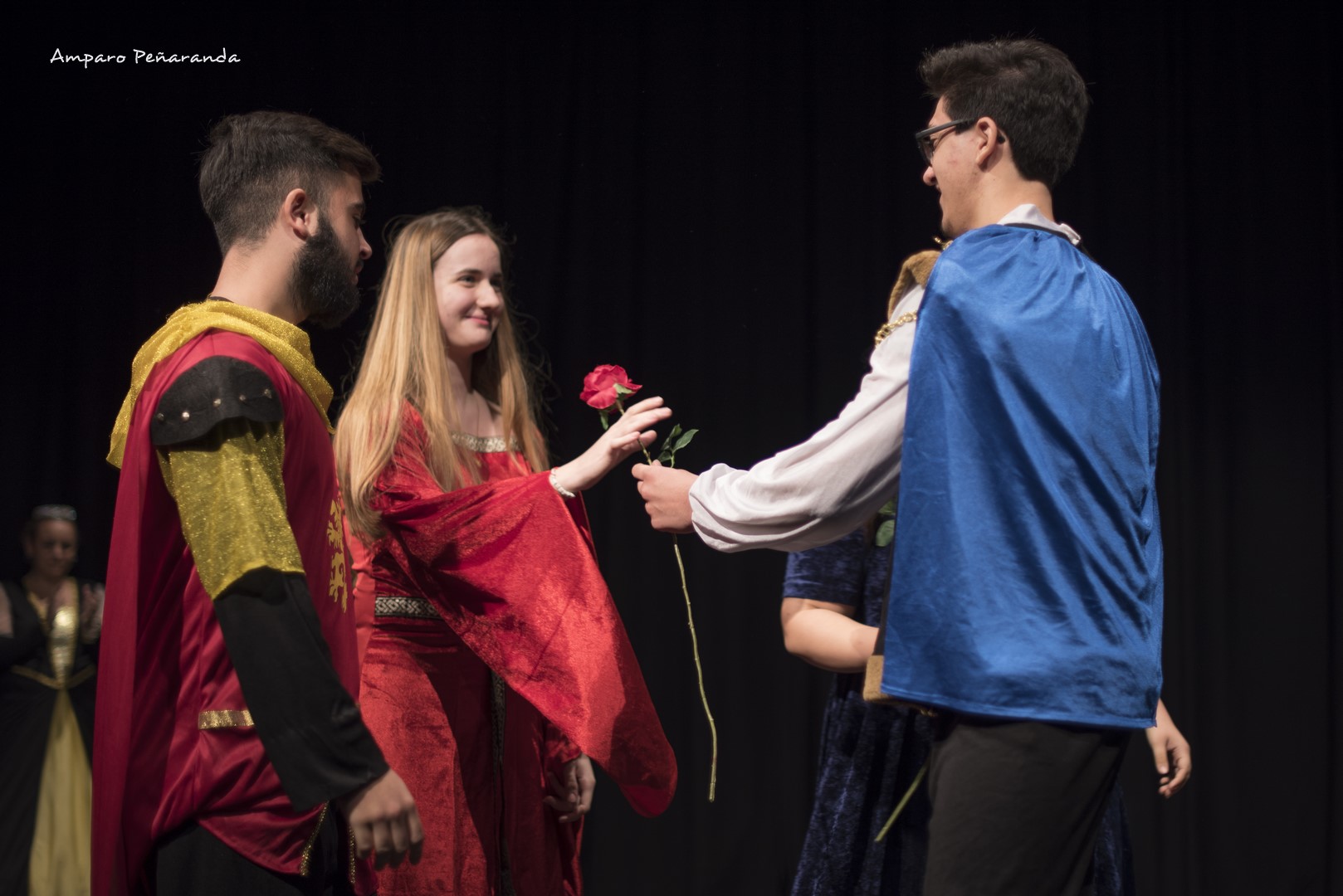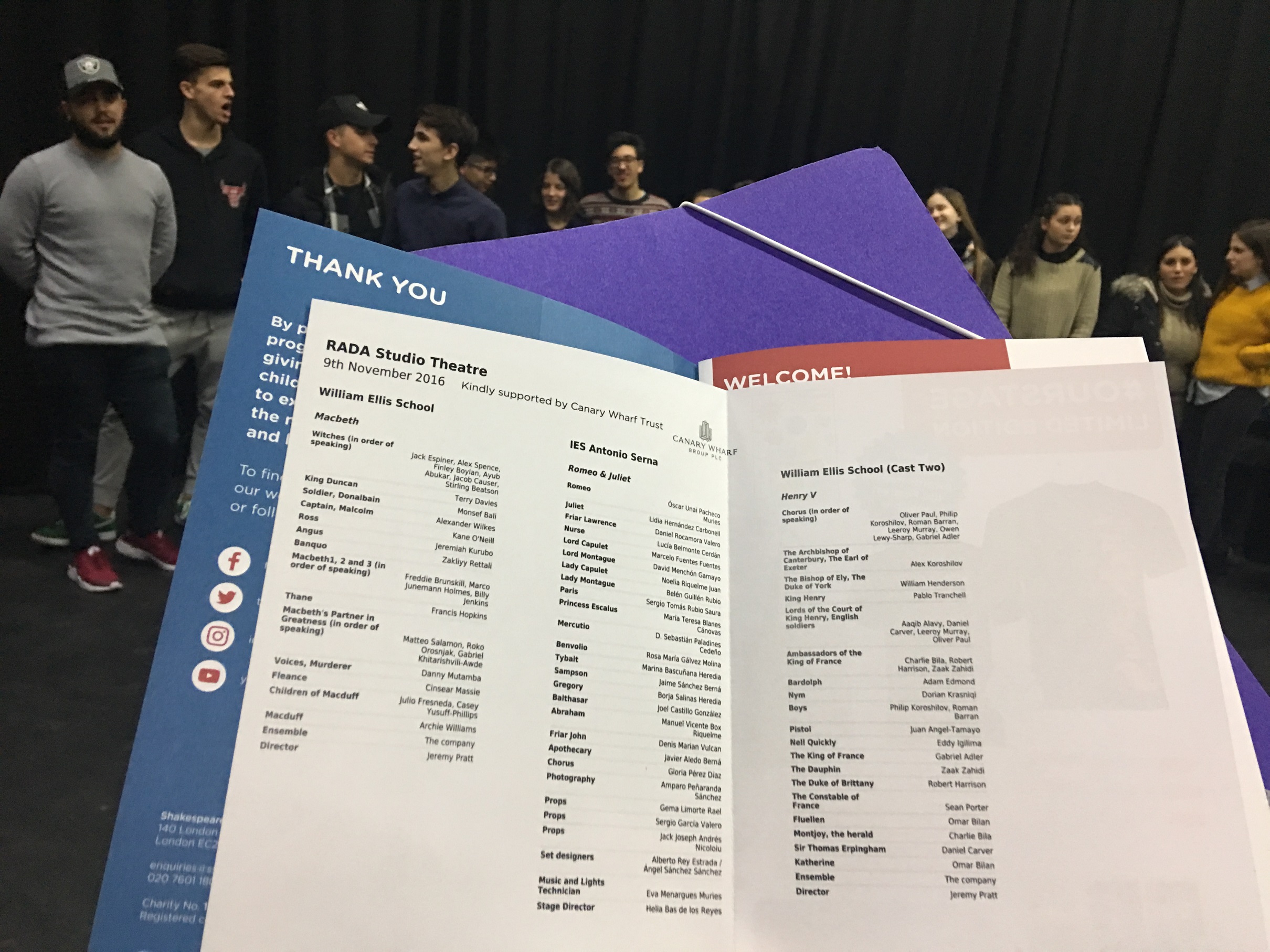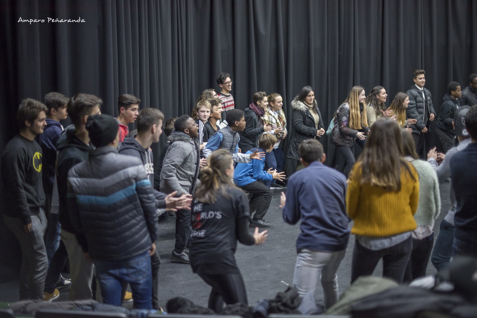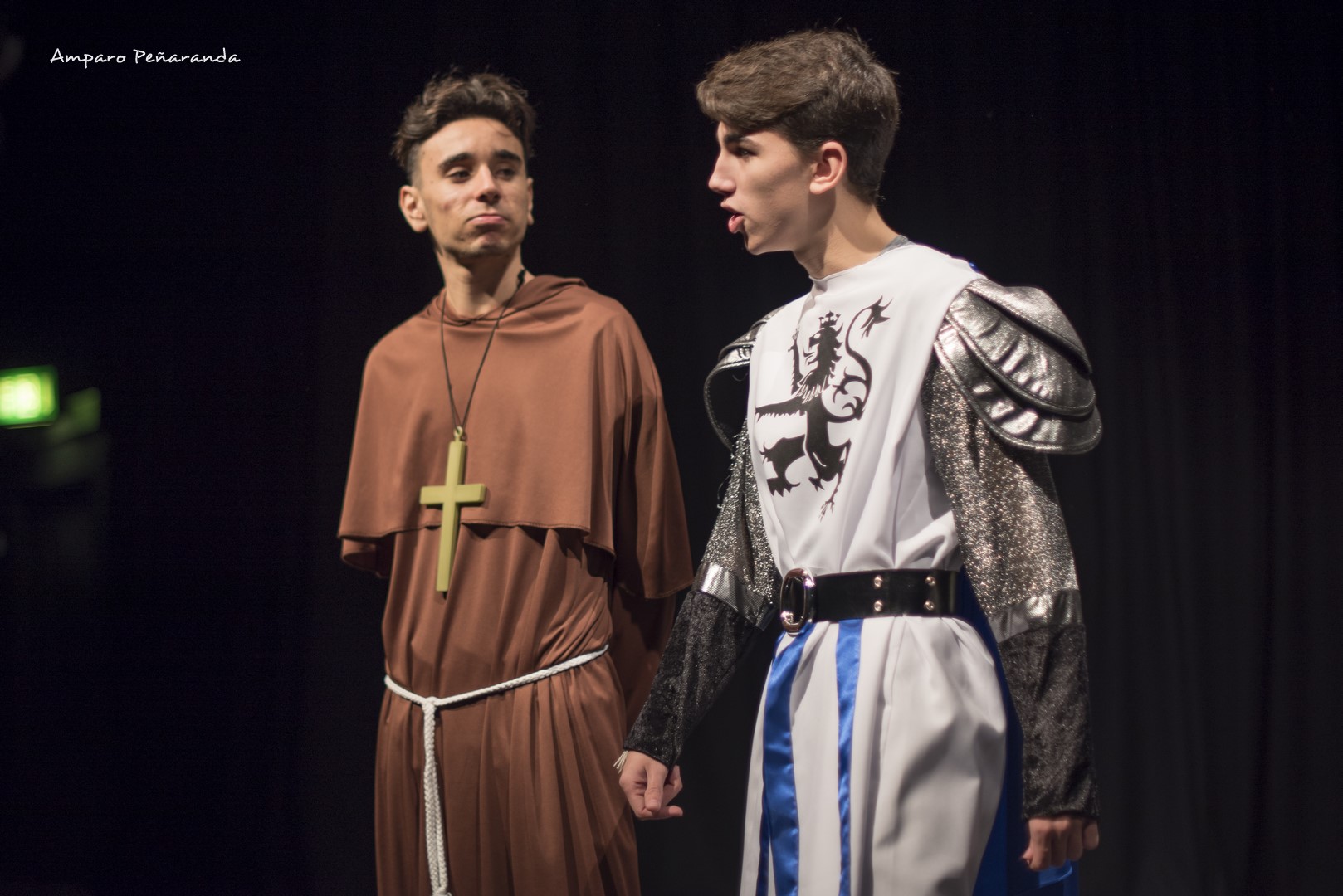 El ansiado día 9, tras los ensayos técnico y artístico de la mañana y el calentamiento de la tarde junto con el resto de alumnos participantes, llegó el momento de la verdad. Los alumnos del IES Antonio Serna lo dieron todo en su representación y el ambiente que se respiraba era verdaderamente mágico. Las actuaciones a nuestras espaldas y la seriedad de la ocasión nos permitieron solventar los pequeños errores que podían ir surgiendo, y, sobre todo, pudimos disfrutar de cada instante, de cada momento, de cada una de las frases que se iban diciendo, de las miradas, de los gestos, de los aplausos y de la complicidad de un público totalmente entregado. Labor realizada y sueño más que cumplido para todos y cada uno de nosotros. Tras acabar nuestra actuación, disfrutamos de las maravillosas actuaciones de los compañeros de la William Ellis School de Londres, con quienes compartimos cartel y que presentaron dos obras distintas, Macbeth y Henry V. Finalmente, subimos todos de nuevo al escenario, y recibimos halagos por parte de la organización y del público asistente, destacando el bonito vestuario, la soltura y entrega de nuestros jóvenes actores, las preciosas piezas musicales en directo, y la valentía por habernos atrevido con un texto tan difícil.