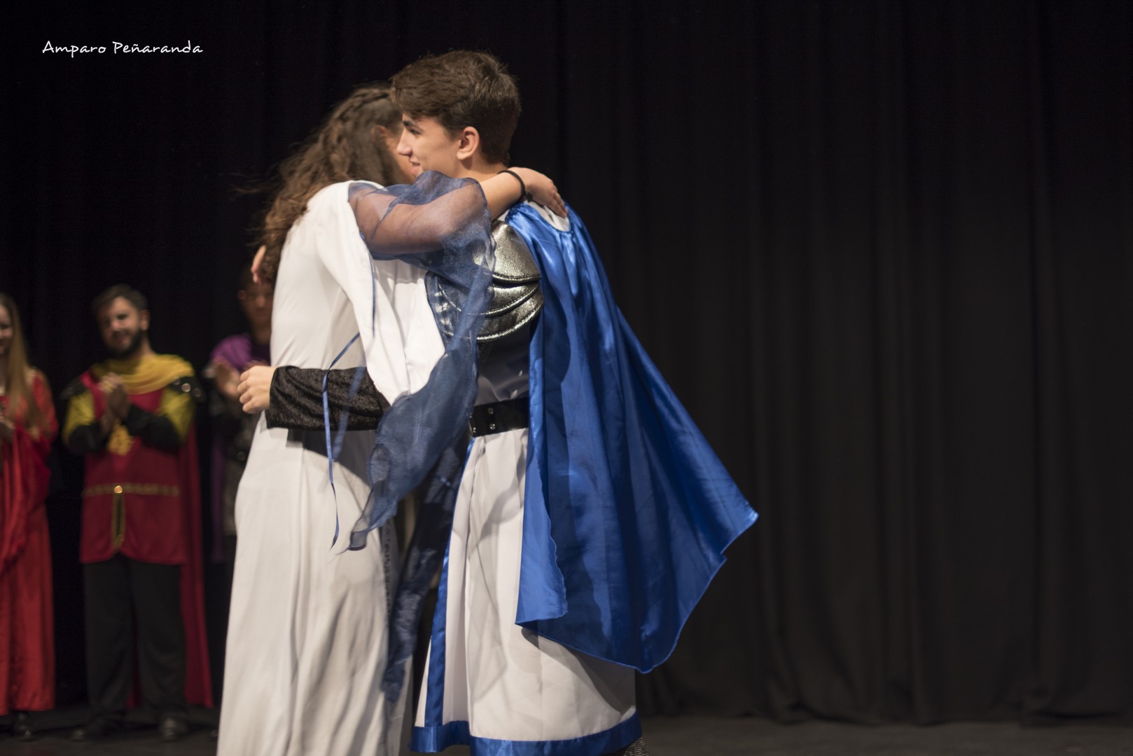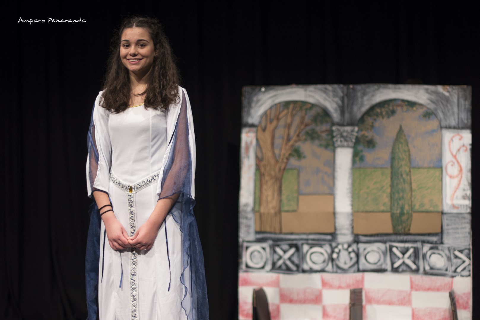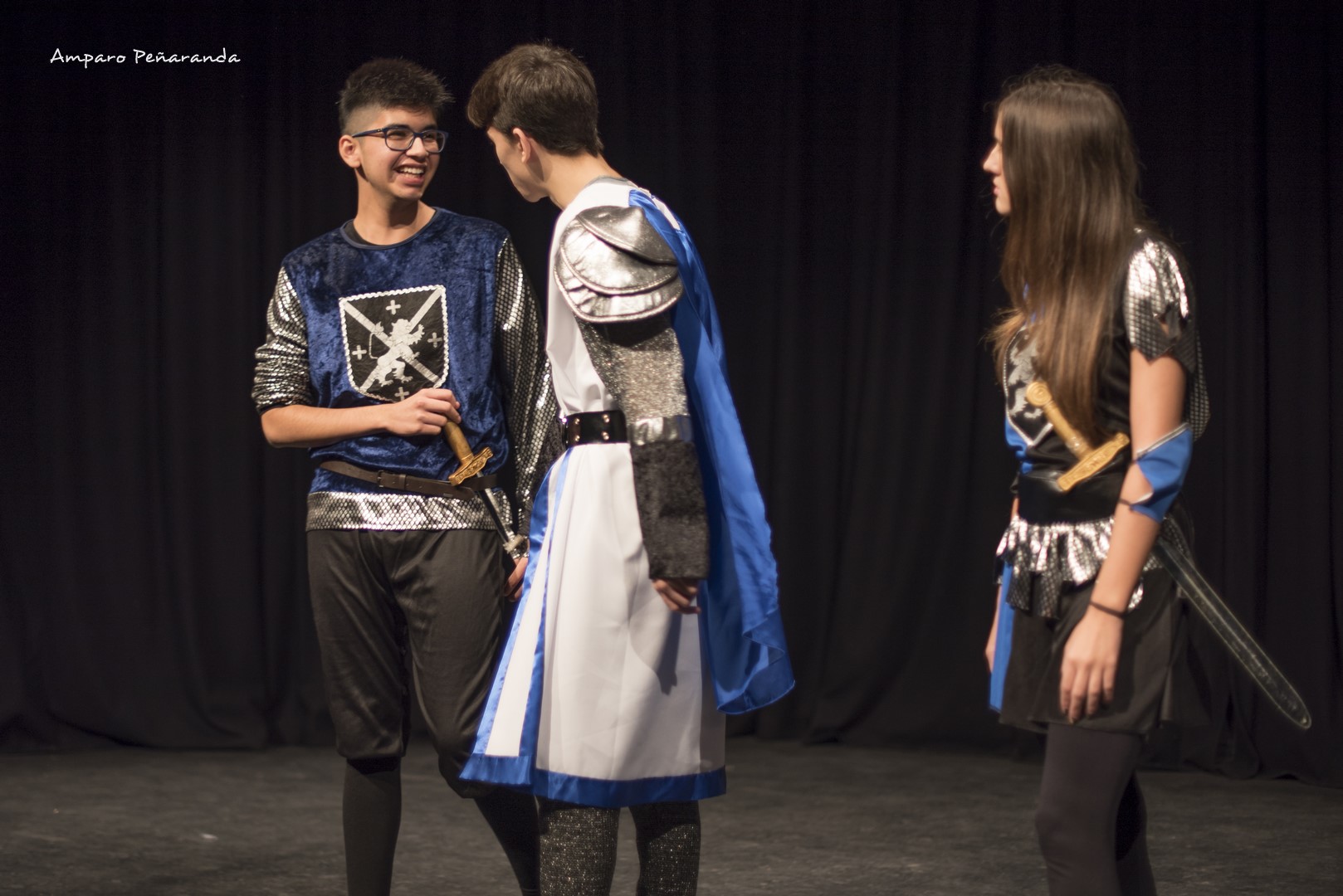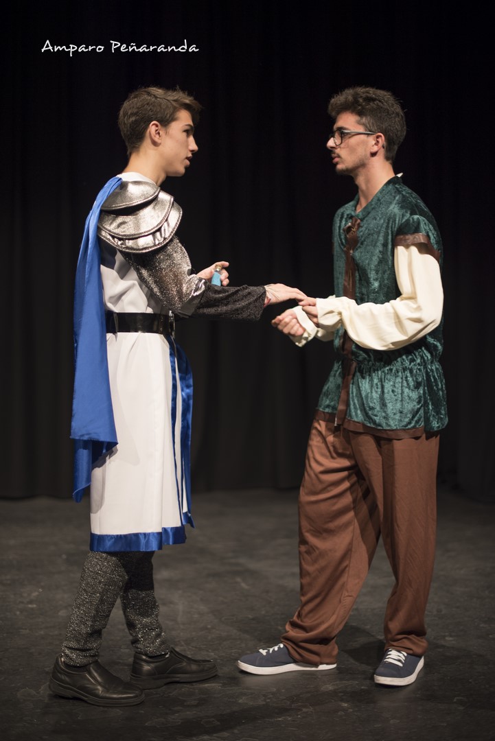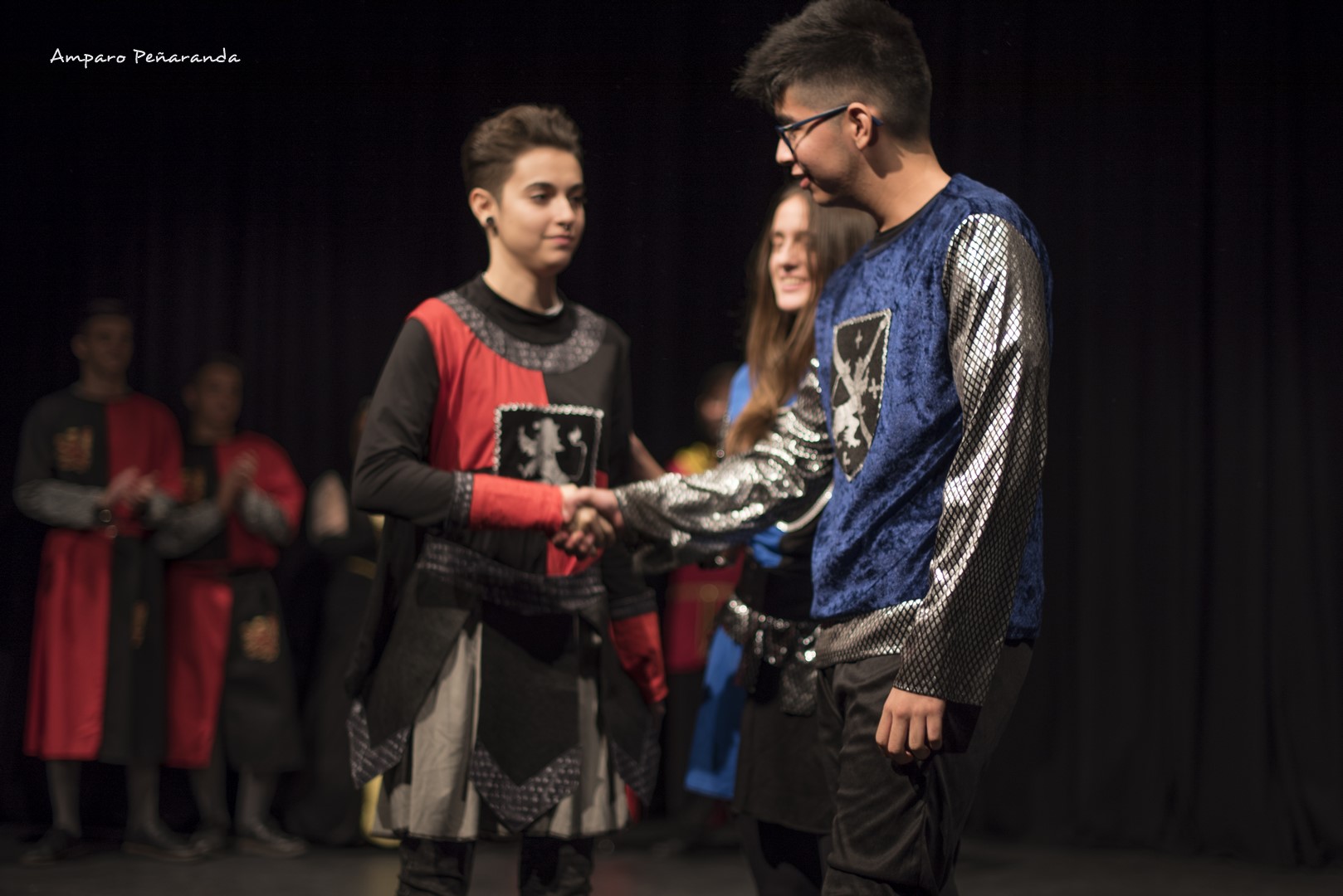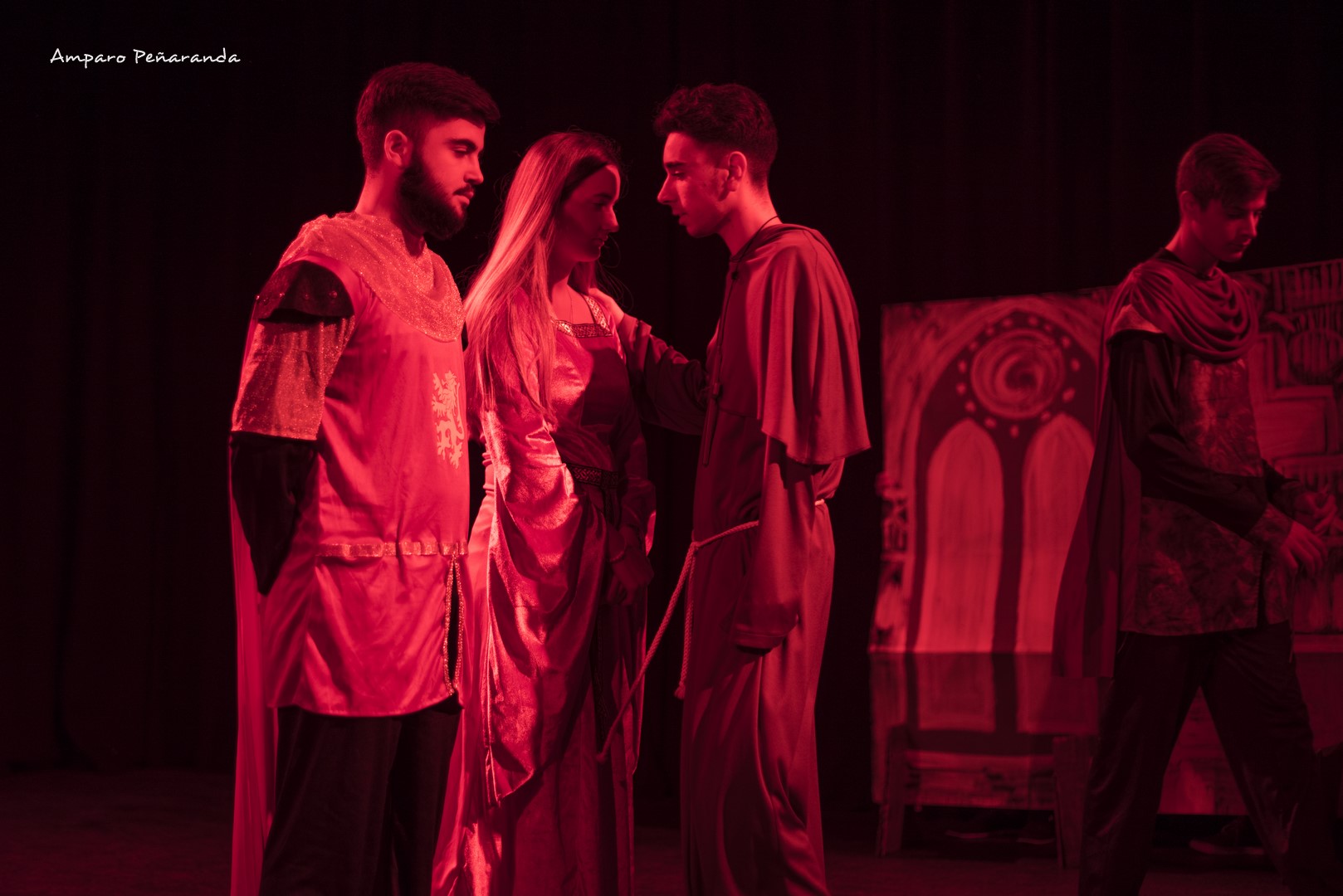 El ansiado día 9, tras los ensayos técnico y artístico de la mañana y el calentamiento de la tarde junto con el resto de alumnos participantes, llegó el momento de la verdad. Los alumnos del IES Antonio Serna lo dieron todo en su representación y el ambiente que se respiraba era verdaderamente mágico. Las actuaciones a nuestras espaldas y la seriedad de la ocasión nos permitieron solventar los pequeños errores que podían ir surgiendo, y, sobre todo, pudimos disfrutar de cada instante, de cada momento, de cada una de las frases que se iban diciendo, de las miradas, de los gestos, de los aplausos y de la complicidad de un público totalmente entregado. Labor realizada y sueño más que cumplido para todos y cada uno de nosotros. Tras acabar nuestra actuación, disfrutamos de las maravillosas actuaciones de los compañeros de la William Ellis School de Londres, con quienes compartimos cartel y que presentaron dos obras distintas, Macbeth y Henry V. Finalmente, subimos todos de nuevo al escenario, y recibimos halagos por parte de la organización y del público asistente, destacando el bonito vestuario, la soltura y entrega de nuestros jóvenes actores, las preciosas piezas musicales en directo, y la valentía por habernos atrevido con un texto tan difícil.