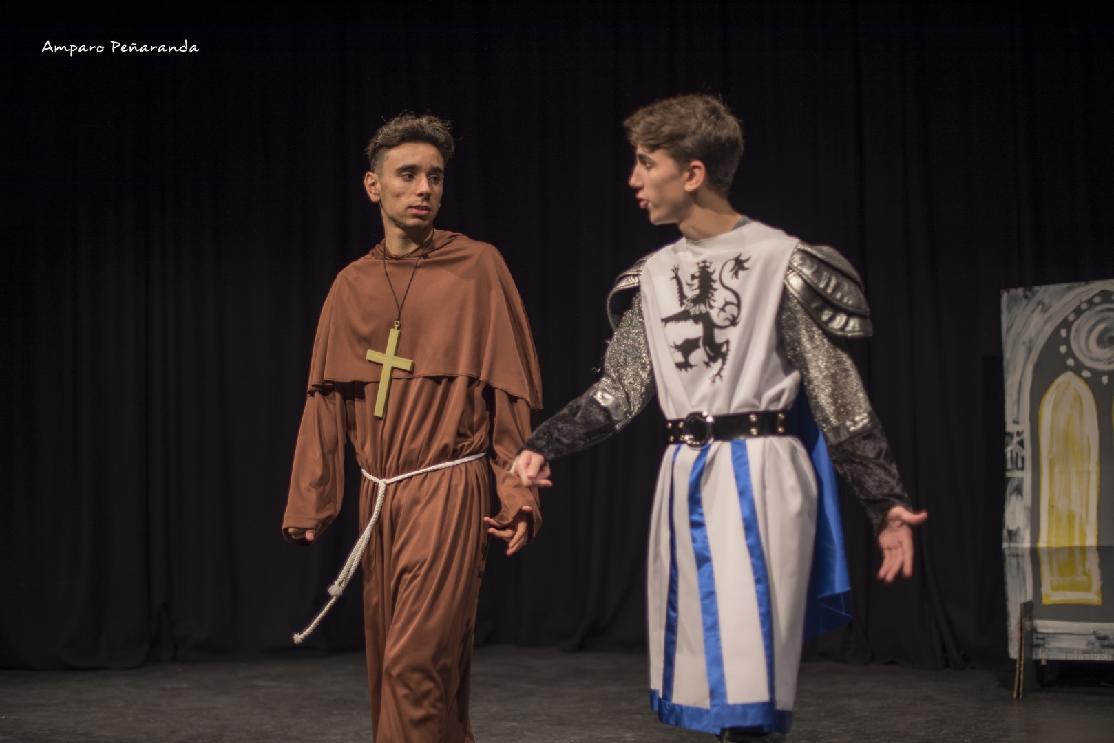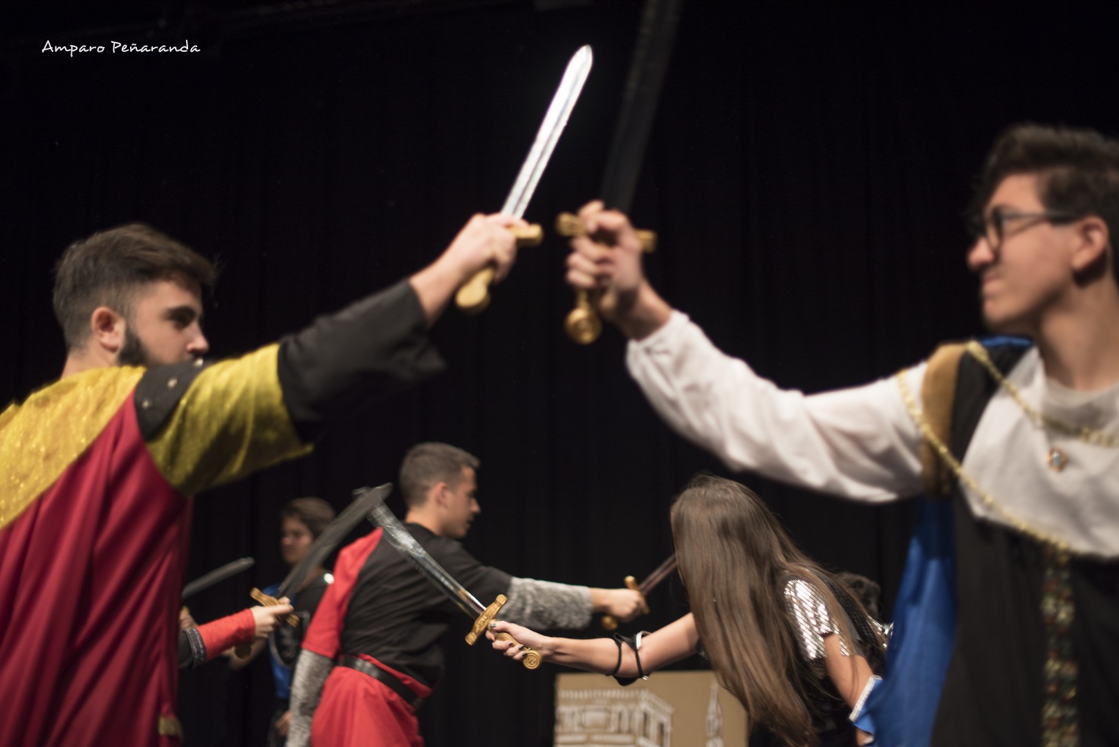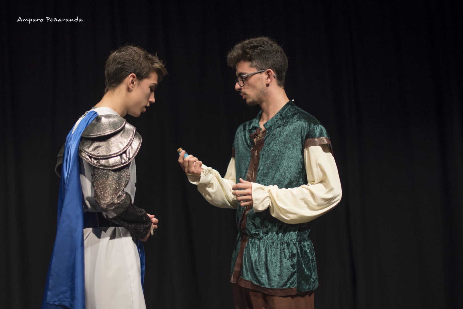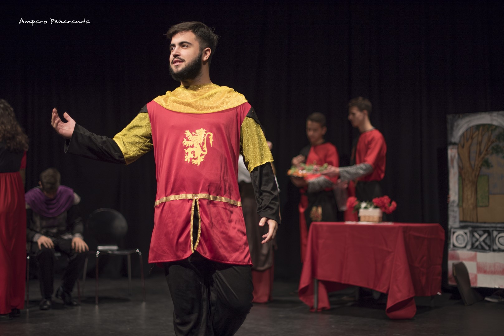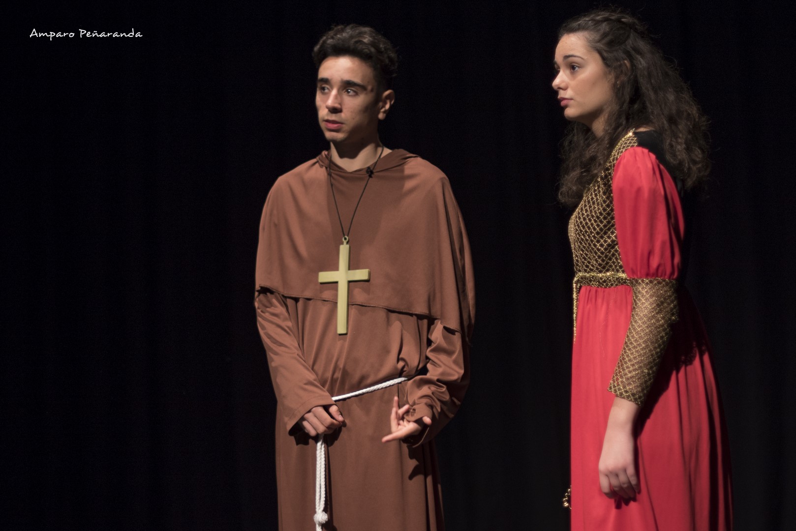 El ansiado día 9, tras los ensayos técnico y artístico de la mañana y el calentamiento de la tarde junto con el resto de alumnos participantes, llegó el momento de la verdad. Los alumnos del IES Antonio Serna lo dieron todo en su representación y el ambiente que se respiraba era verdaderamente mágico. Las actuaciones a nuestras espaldas y la seriedad de la ocasión nos permitieron solventar los pequeños errores que podían ir surgiendo, y, sobre todo, pudimos disfrutar de cada instante, de cada momento, de cada una de las frases que se iban diciendo, de las miradas, de los gestos, de los aplausos y de la complicidad de un público totalmente entregado. Labor realizada y sueño más que cumplido para todos y cada uno de nosotros. Tras acabar nuestra actuación, disfrutamos de las maravillosas actuaciones de los compañeros de la William Ellis School de Londres, con quienes compartimos cartel y que presentaron dos obras distintas, Macbeth y Henry V. Finalmente, subimos todos de nuevo al escenario, y recibimos halagos por parte de la organización y del público asistente, destacando el bonito vestuario, la soltura y entrega de nuestros jóvenes actores, las preciosas piezas musicales en directo, y la valentía por habernos atrevido con un texto tan difícil.