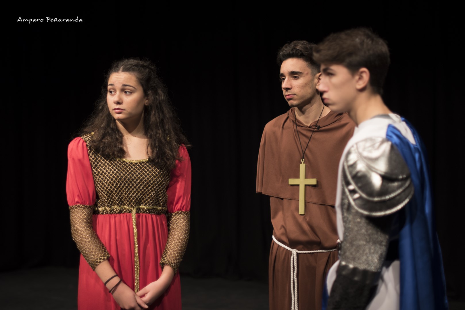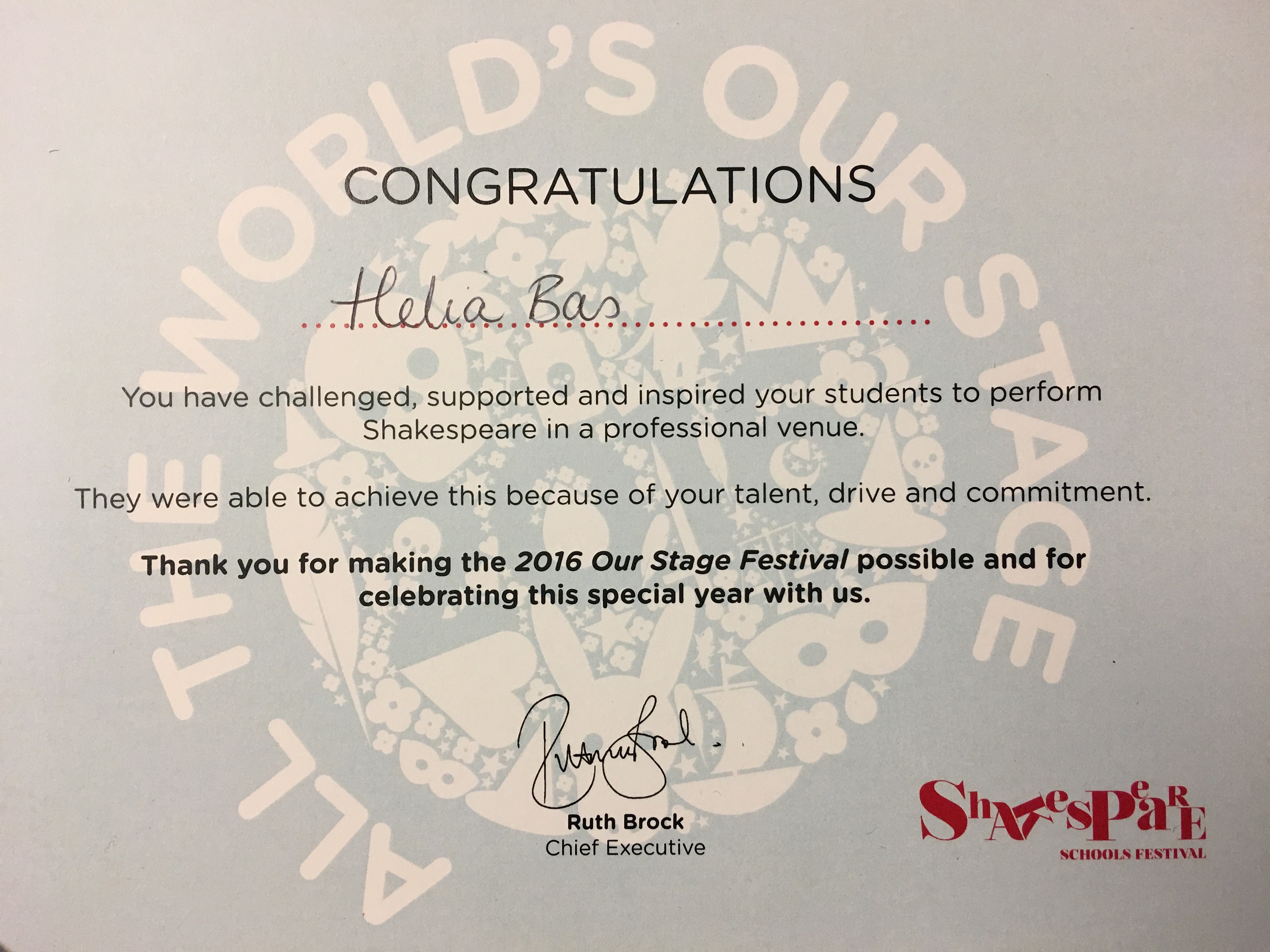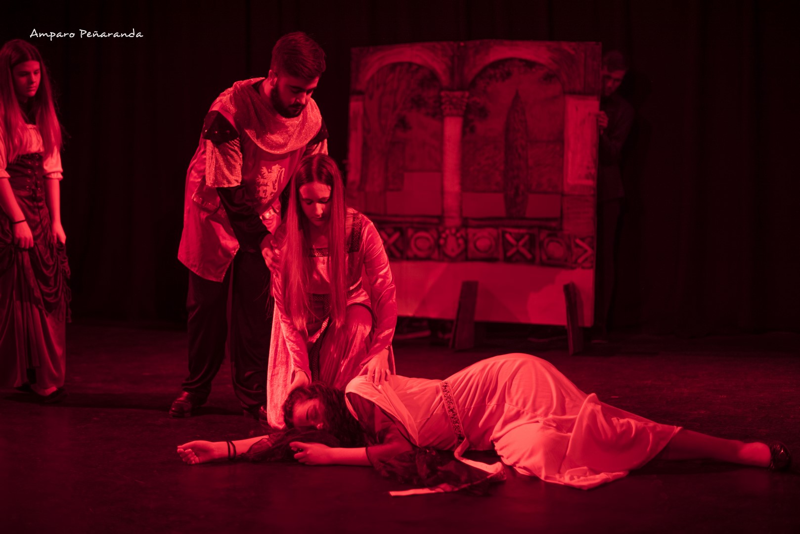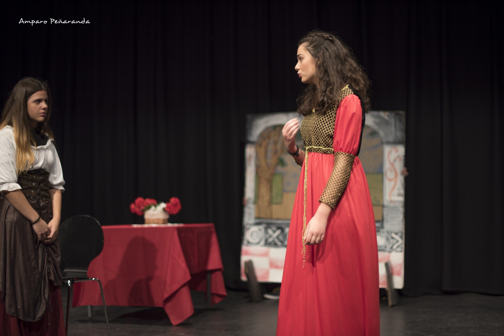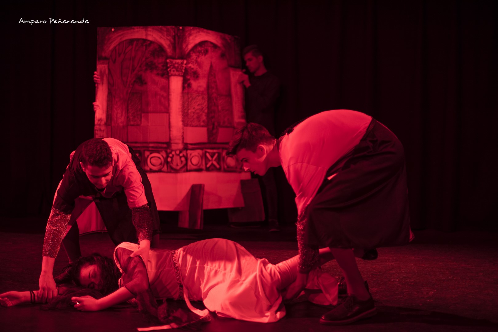 El ansiado día 9, tras los ensayos técnico y artístico de la mañana y el calentamiento de la tarde junto con el resto de alumnos participantes, llegó el momento de la verdad. Los alumnos del IES Antonio Serna lo dieron todo en su representación y el ambiente que se respiraba era verdaderamente mágico. Las actuaciones a nuestras espaldas y la seriedad de la ocasión nos permitieron solventar los pequeños errores que podían ir surgiendo, y, sobre todo, pudimos disfrutar de cada instante, de cada momento, de cada una de las frases que se iban diciendo, de las miradas, de los gestos, de los aplausos y de la complicidad de un público totalmente entregado. Labor realizada y sueño más que cumplido para todos y cada uno de nosotros. Tras acabar nuestra actuación, disfrutamos de las maravillosas actuaciones de los compañeros de la William Ellis School de Londres, con quienes compartimos cartel y que presentaron dos obras distintas, Macbeth y Henry V. Finalmente, subimos todos de nuevo al escenario, y recibimos halagos por parte de la organización y del público asistente, destacando el bonito vestuario, la soltura y entrega de nuestros jóvenes actores, las preciosas piezas musicales en directo, y la valentía por habernos atrevido con un texto tan difícil.