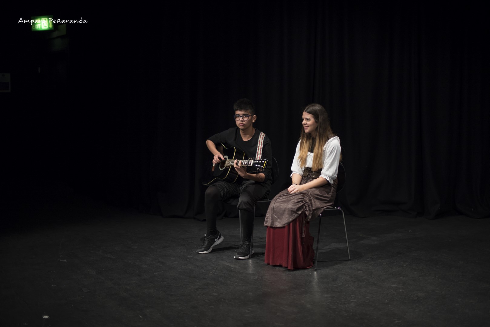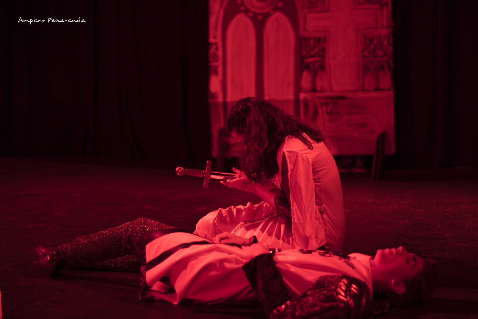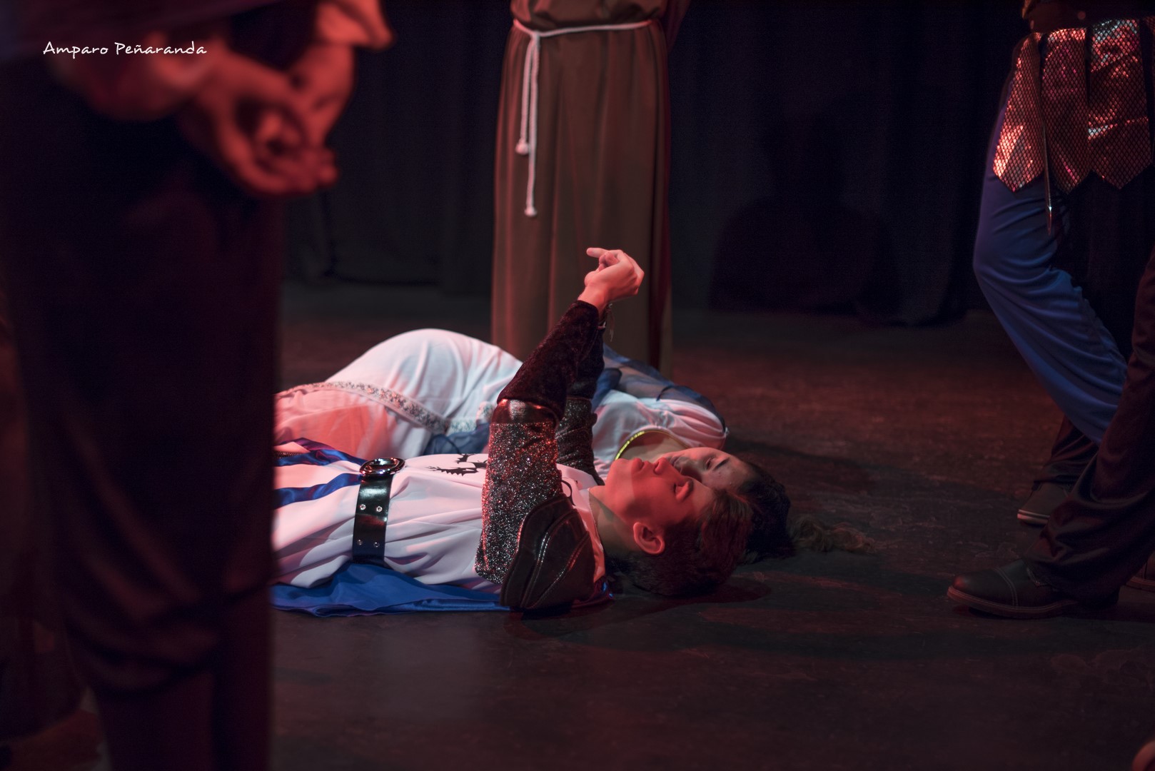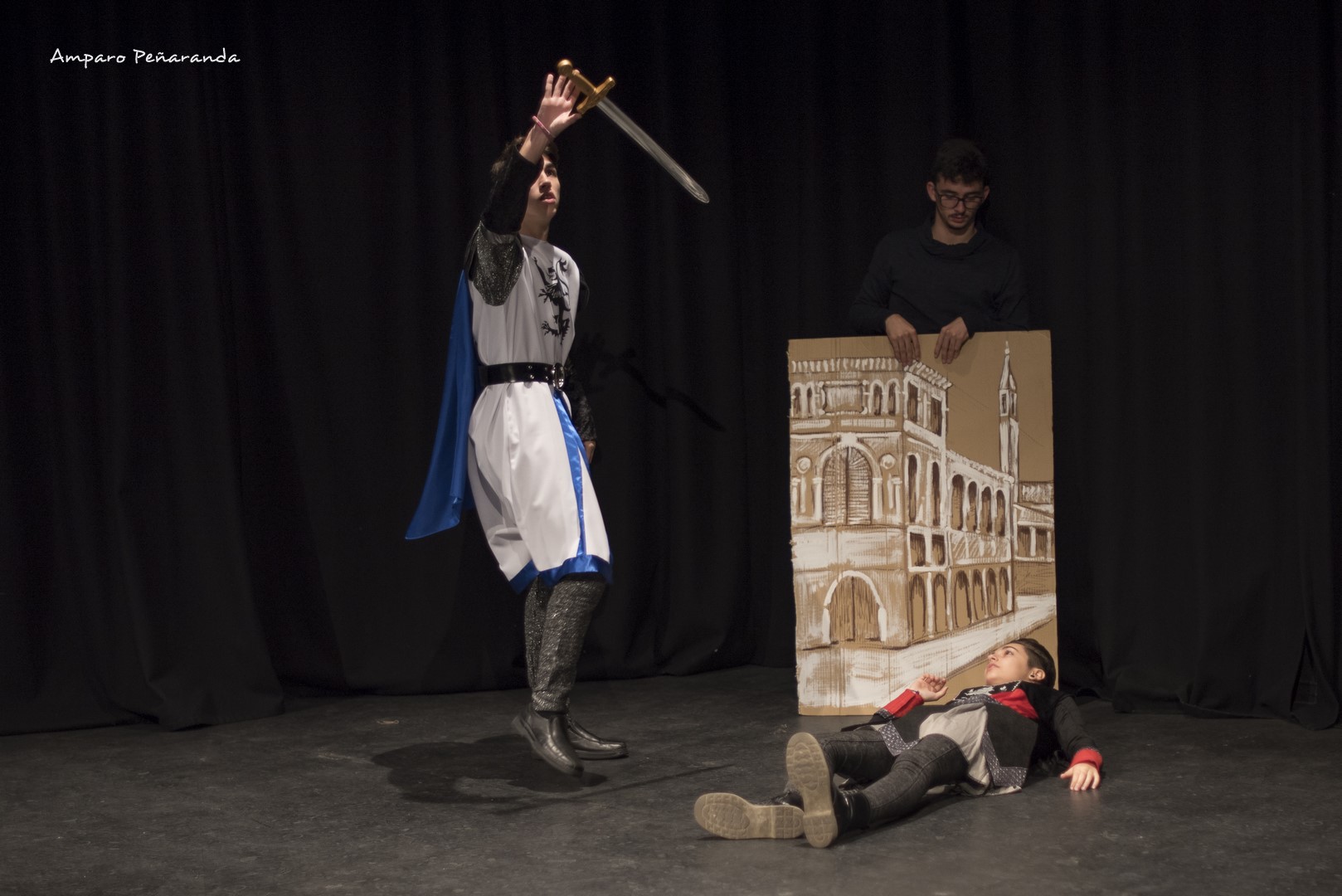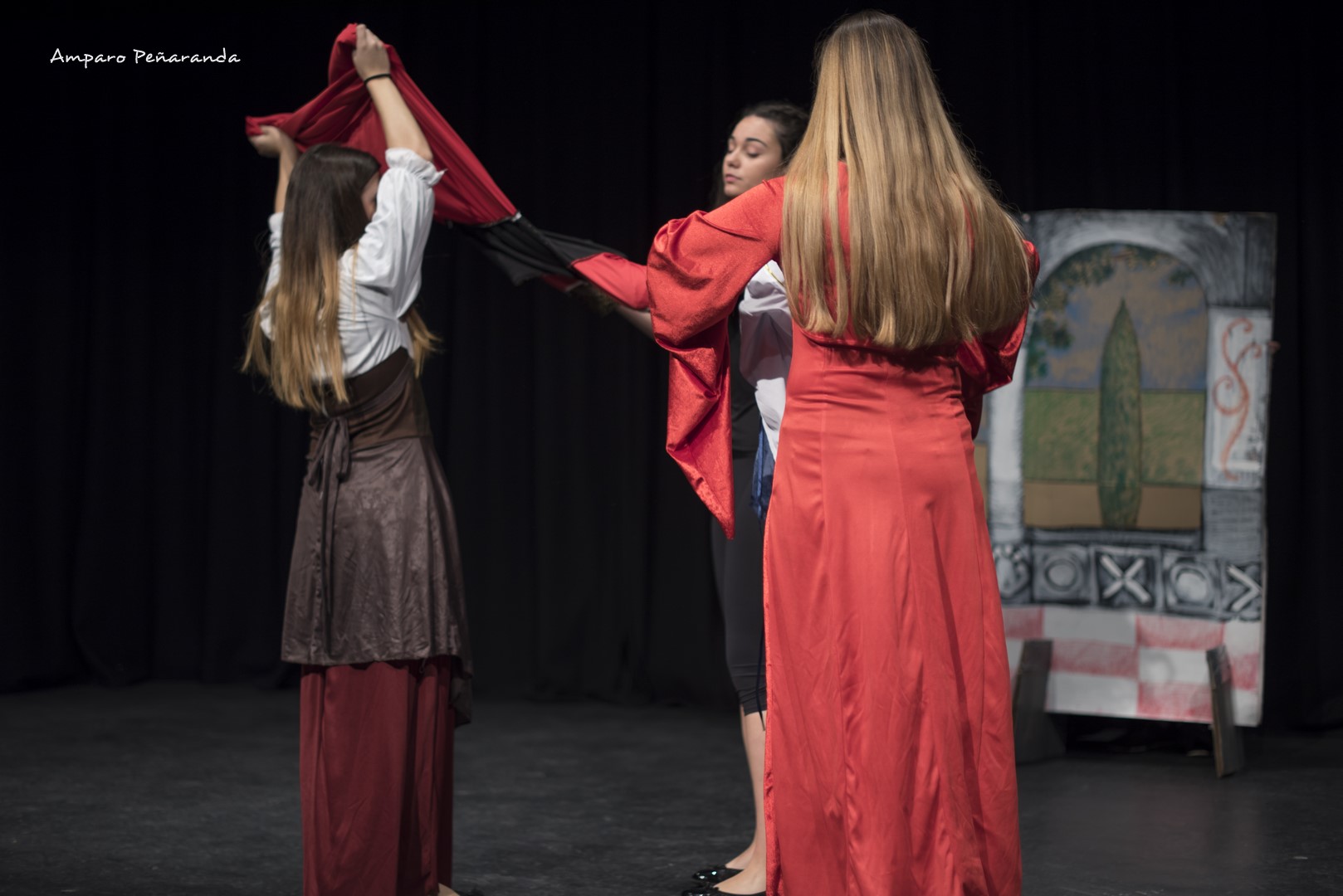 El ansiado día 9, tras los ensayos técnico y artístico de la mañana y el calentamiento de la tarde junto con el resto de alumnos participantes, llegó el momento de la verdad. Los alumnos del IES Antonio Serna lo dieron todo en su representación y el ambiente que se respiraba era verdaderamente mágico. Las actuaciones a nuestras espaldas y la seriedad de la ocasión nos permitieron solventar los pequeños errores que podían ir surgiendo, y, sobre todo, pudimos disfrutar de cada instante, de cada momento, de cada una de las frases que se iban diciendo, de las miradas, de los gestos, de los aplausos y de la complicidad de un público totalmente entregado. Labor realizada y sueño más que cumplido para todos y cada uno de nosotros. Tras acabar nuestra actuación, disfrutamos de las maravillosas actuaciones de los compañeros de la William Ellis School de Londres, con quienes compartimos cartel y que presentaron dos obras distintas, Macbeth y Henry V. Finalmente, subimos todos de nuevo al escenario, y recibimos halagos por parte de la organización y del público asistente, destacando el bonito vestuario, la soltura y entrega de nuestros jóvenes actores, las preciosas piezas musicales en directo, y la valentía por habernos atrevido con un texto tan difícil.