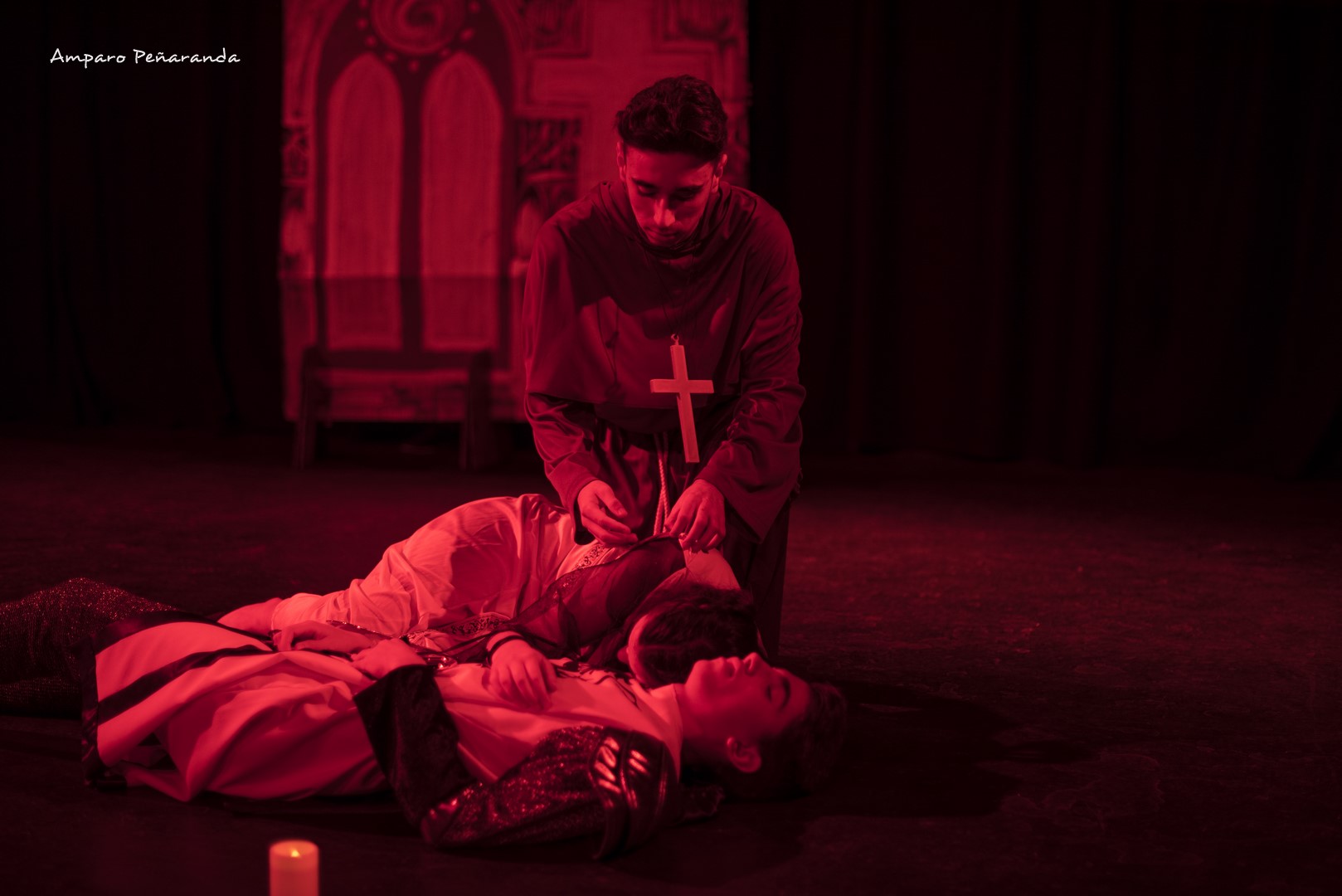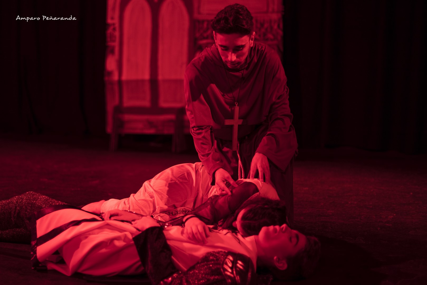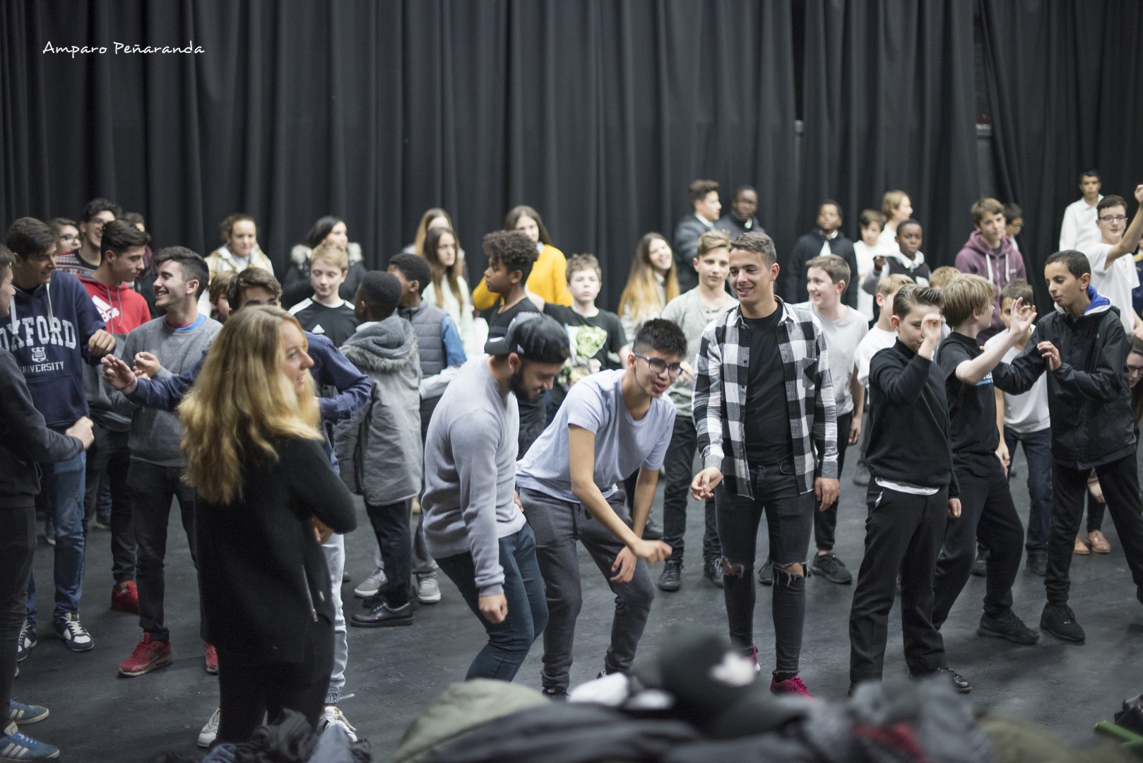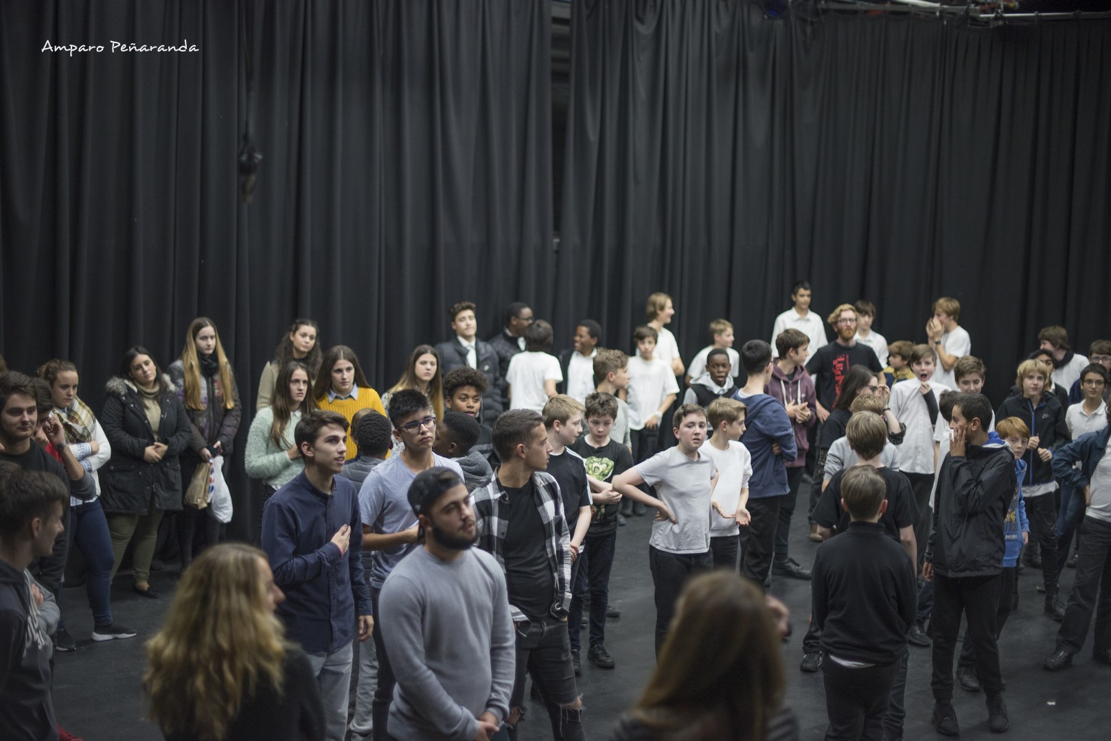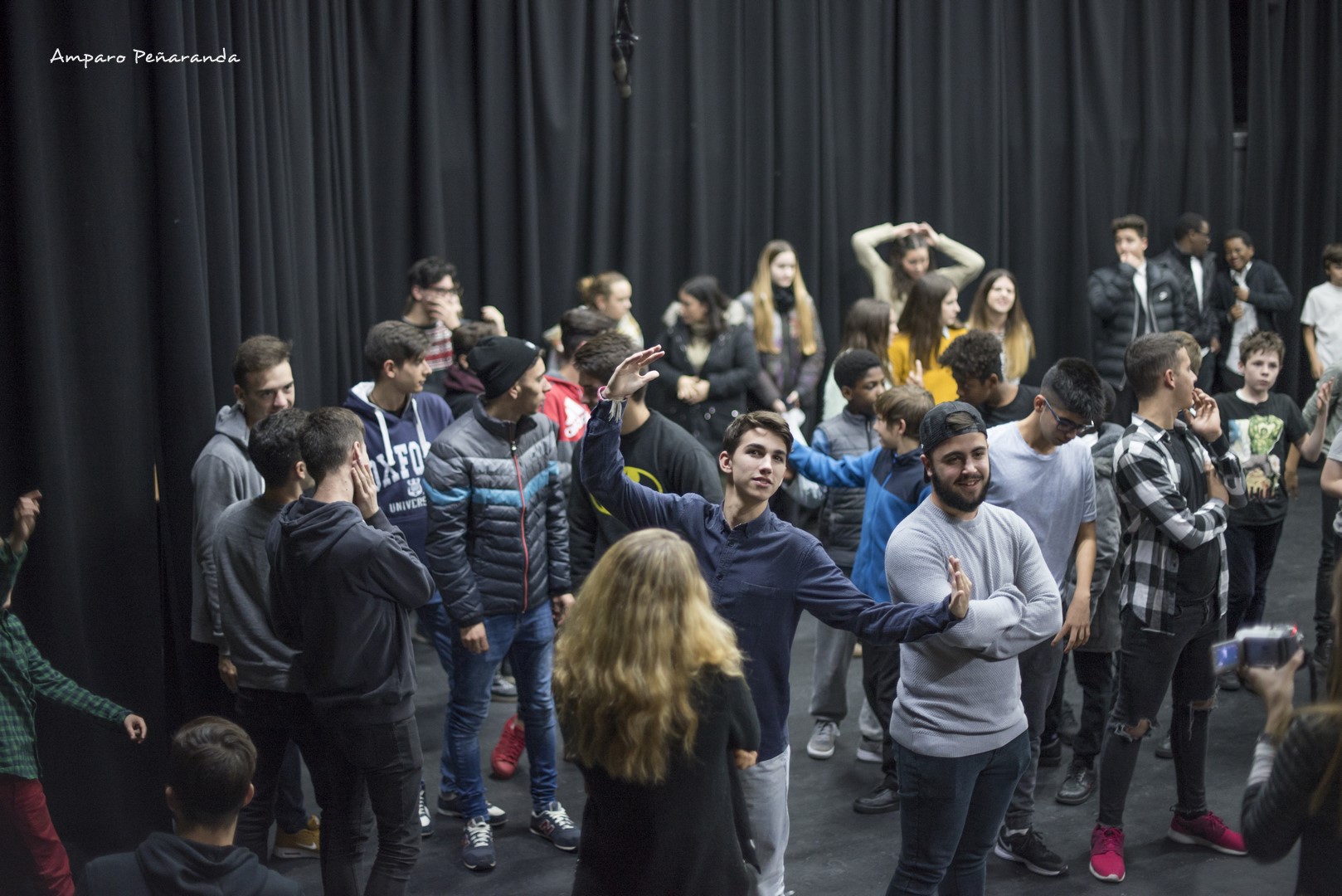 El ansiado día 9, tras los ensayos técnico y artístico de la mañana y el calentamiento de la tarde junto con el resto de alumnos participantes, llegó el momento de la verdad. Los alumnos del IES Antonio Serna lo dieron todo en su representación y el ambiente que se respiraba era verdaderamente mágico. Las actuaciones a nuestras espaldas y la seriedad de la ocasión nos permitieron solventar los pequeños errores que podían ir surgiendo, y, sobre todo, pudimos disfrutar de cada instante, de cada momento, de cada una de las frases que se iban diciendo, de las miradas, de los gestos, de los aplausos y de la complicidad de un público totalmente entregado. Labor realizada y sueño más que cumplido para todos y cada uno de nosotros. Tras acabar nuestra actuación, disfrutamos de las maravillosas actuaciones de los compañeros de la William Ellis School de Londres, con quienes compartimos cartel y que presentaron dos obras distintas, Macbeth y Henry V. Finalmente, subimos todos de nuevo al escenario, y recibimos halagos por parte de la organización y del público asistente, destacando el bonito vestuario, la soltura y entrega de nuestros jóvenes actores, las preciosas piezas musicales en directo, y la valentía por habernos atrevido con un texto tan difícil.