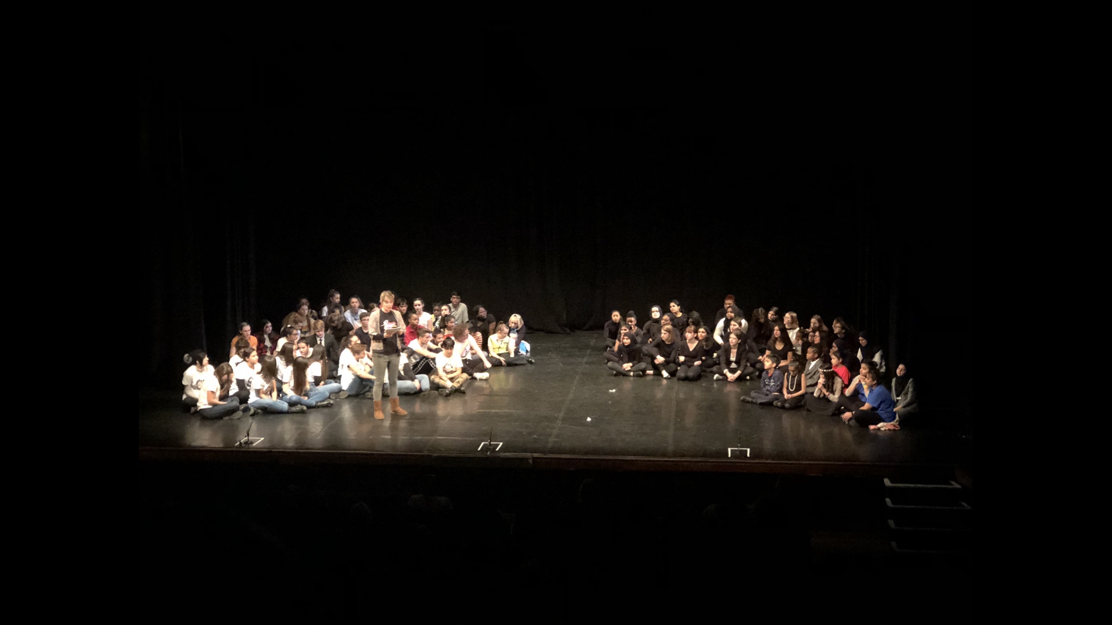 El día de la representación y segundo de nuestro viaje comenzó con la llegada a primera hora de la mañana al teatro ‘The Beck’ en Hayes (Londres). Allí, nos dieron la bienvenida la directora artística y la directora técnica y demás profesionales que nos acompañarían en la velada. A continuación, procedimos al ensayo técnico (luces y sonido) y de vestuario (general), para más tarde asistir como público al ensayo general de otro de los grupos con los que compartíamos cartel, concretamente Romeo and Juliet a cargo de los alumnos del Canford Park Academy. Fue una mañana muy intensa que disfrutamos mucho.