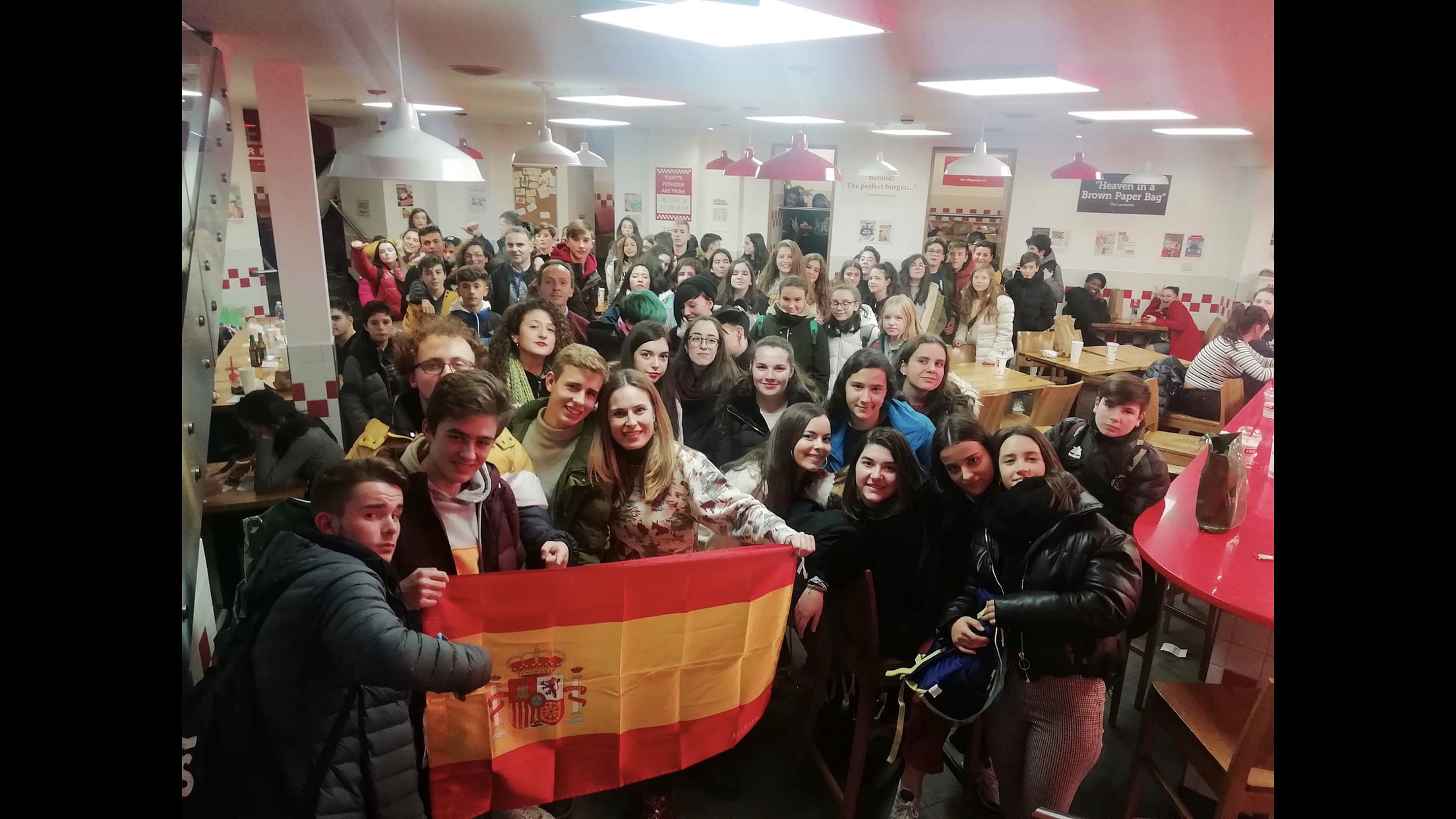 Por otra parte, otro hecho muy destacable y también relacionado con el teatro fue que por primera vez pudimos conocer en persona a los otros únicos representantes españoles en el Shakespeare Schools Festival, el IES Marqués de Santillana de Torrelavega (Cantabria), con los que compartimos una entrañable cena de confraternización.