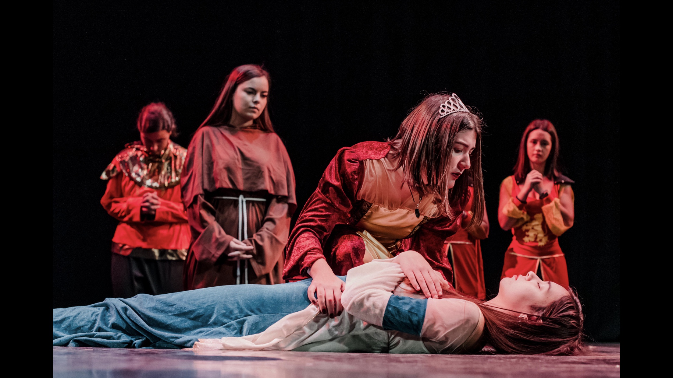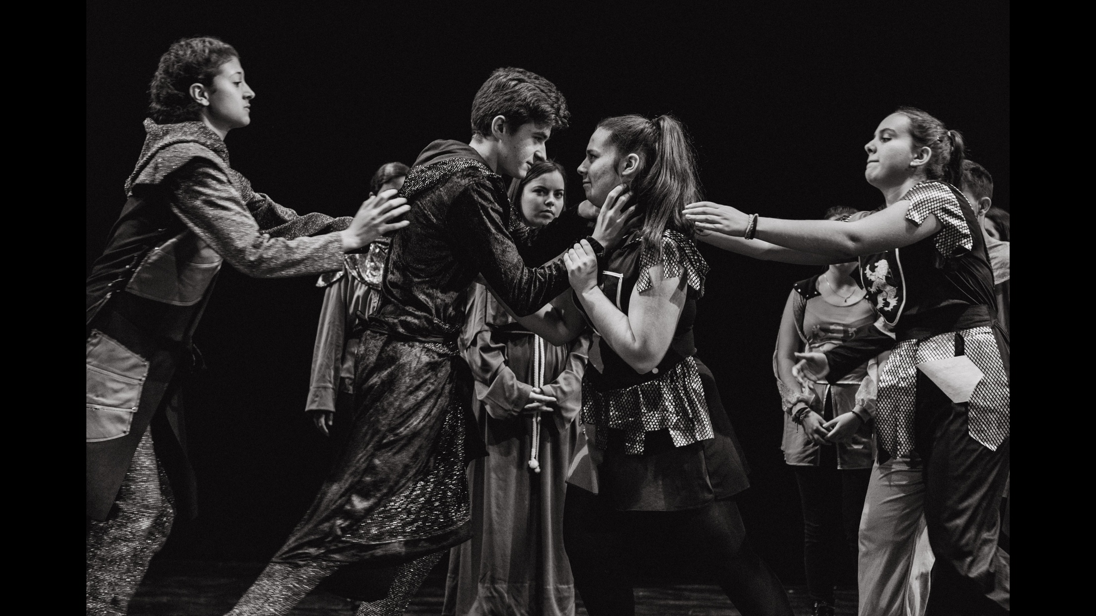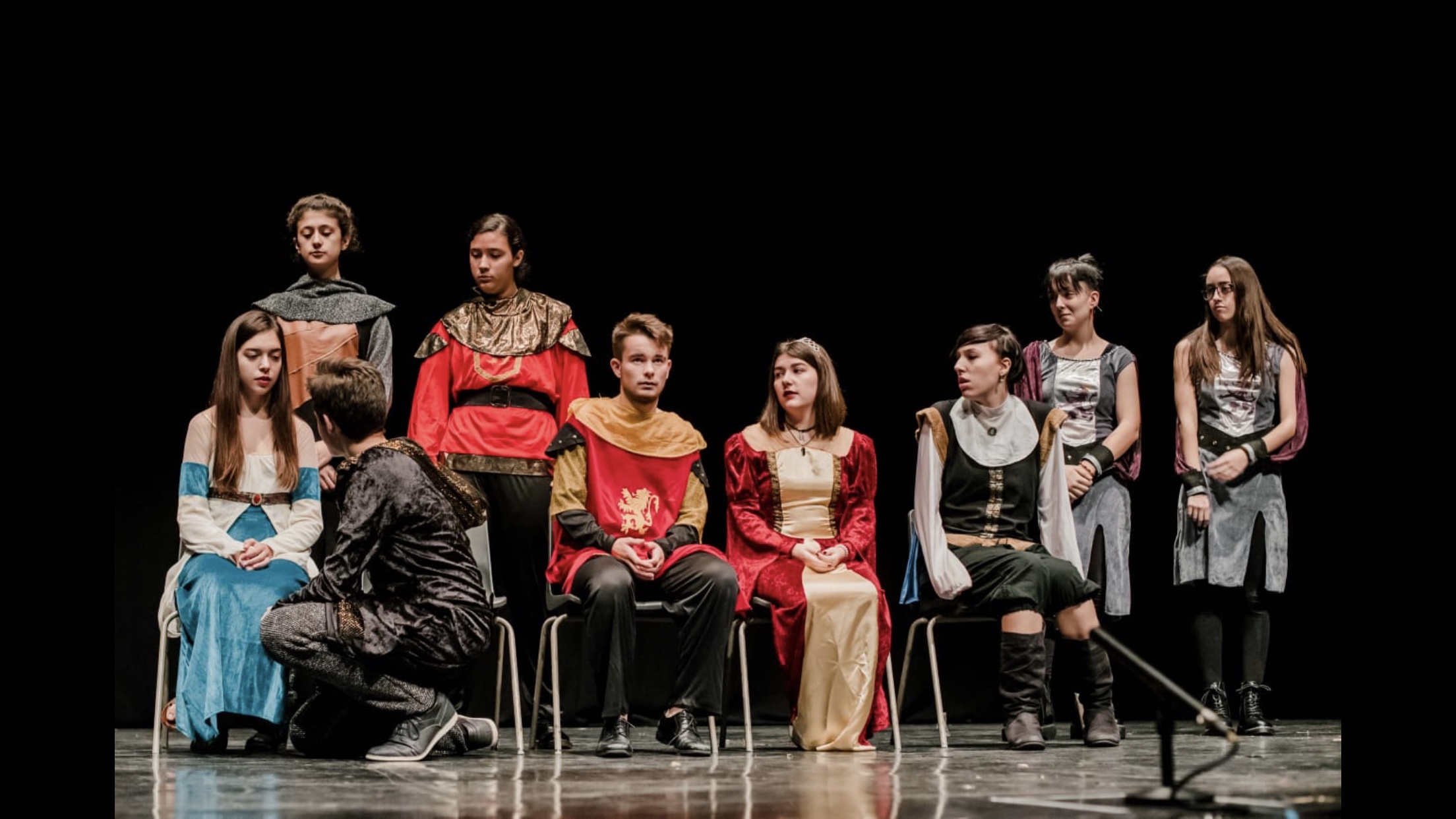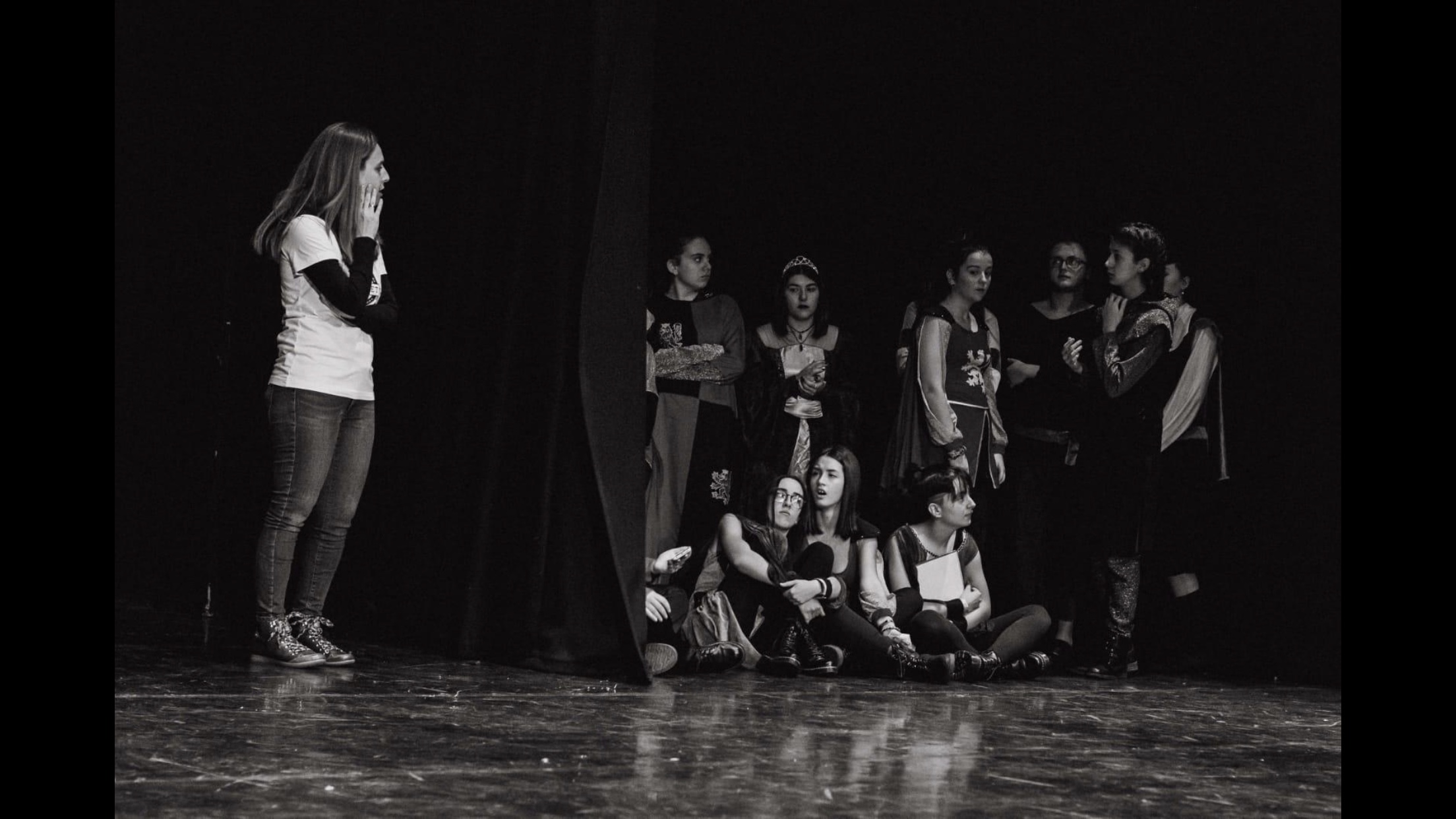 Antes de dar comienzo a la velada teatral en sí, todos los grupos nos reunimos en el escenario donde procedimos a realizar el calentamiento previo. A continuación, anunciaron el orden de las representaciones. Sería el siguiente: Romeo and Juliet, Hamlet, Macbeth y Twelfth Night.