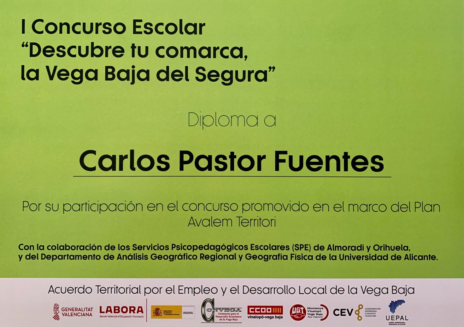 El citado concurso ha contado con la colaboración tanto de los Servicios Psicopedagógicos Escolares de Orihuela y Almoradí como de la Universidad de Alicante, y persigue promover el conocimiento y el desarrollo creativo en torno al territorio en base a la sensibilización medioambiental, la historia, costumbres y tradiciones, además de la promoción de los valores de la Vega Baja, fortaleciendo, de este modo, el sentimiento de pertenencia entre el alumnado de 1º y 2º de Educación Segundaria Obligatoria (ESO) de los distintos centros educativos participantes.