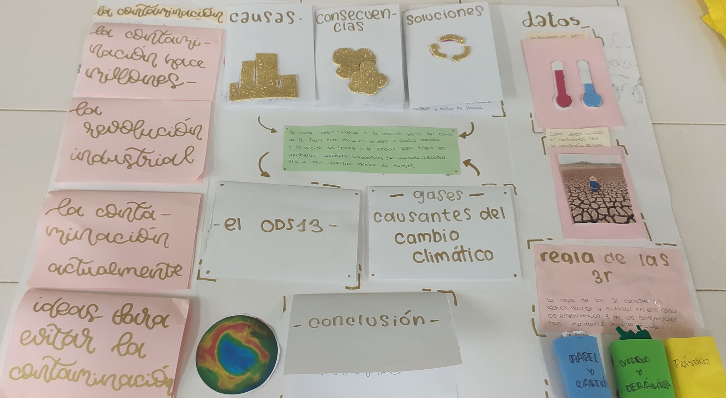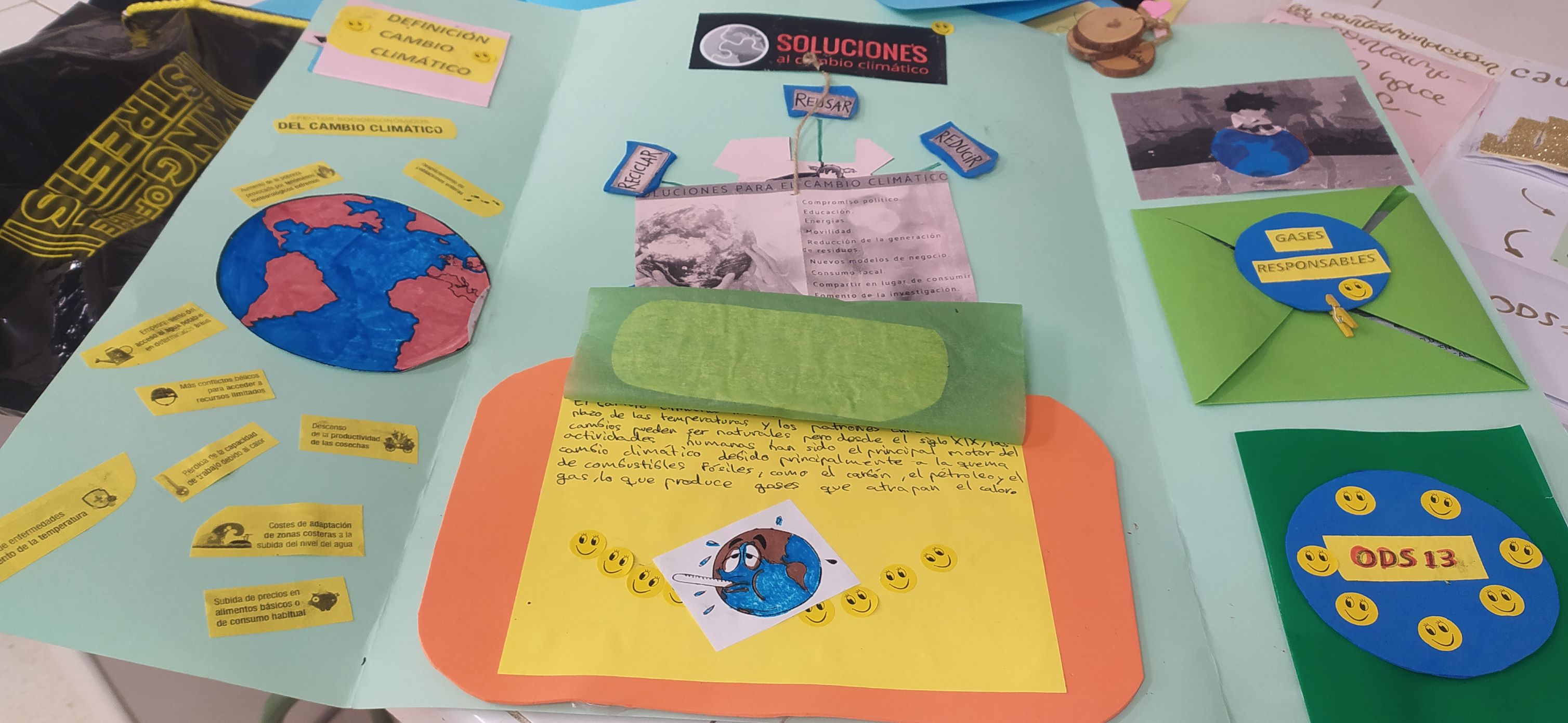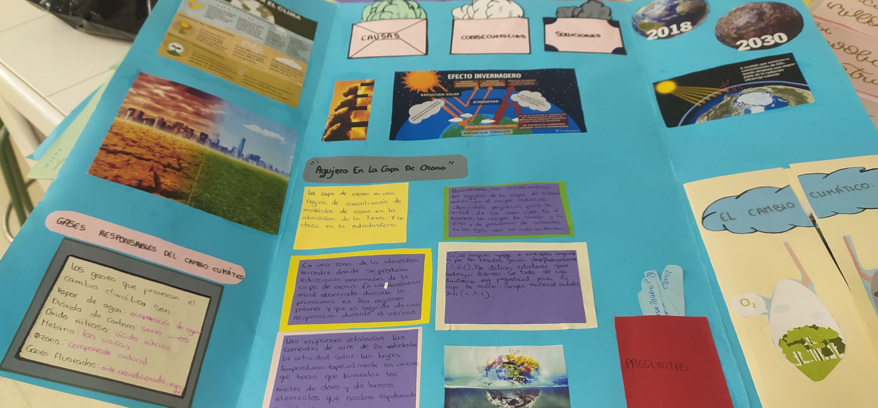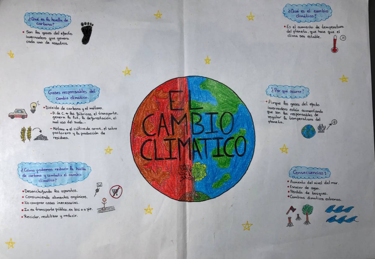 Los alumnos de 1º ESO A, C y D han realizado un proyecto en la materia de Biología y Geología sobre el cambio climático, en el cual han investigado en qué consiste, sus causas y posibles soluciones para reducir sus efectos, teniendo como base el ODS13 "Acción por el clima". Han plasmado todo esto que han aprendido en un Lapbook.