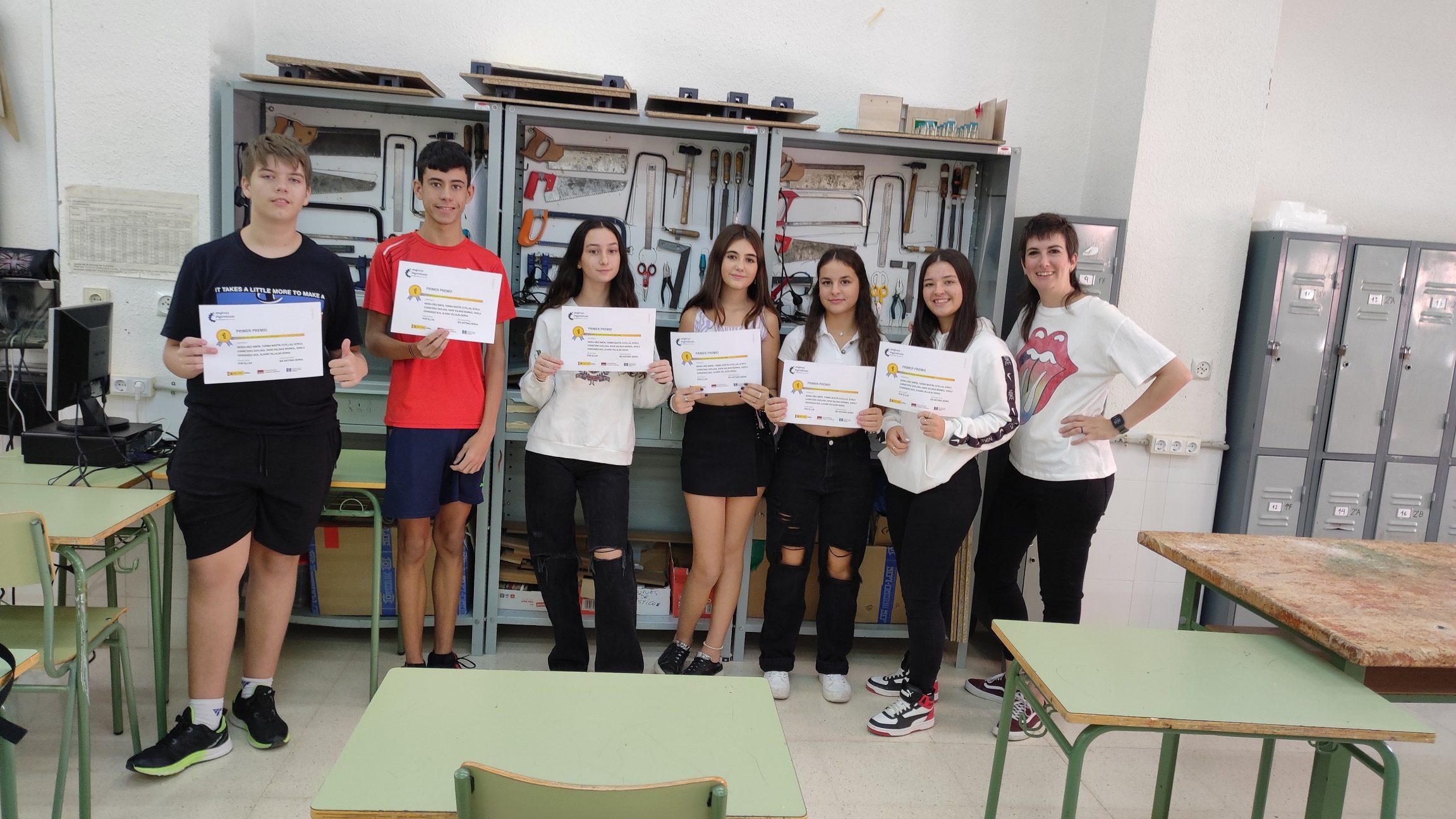 Felicitar a todo el alumnado del grupo por su esfuerzo y trabajo excepcional en el proyecto, y sobre todo a los alumnos y alumnas del cortometraje ganador "POR ELLAS", ¡enhorabuena a Álvaro Villalba, David Salinas, Nerea Díez, África Carretero, Yurima Martín y Sheila Ferrández!