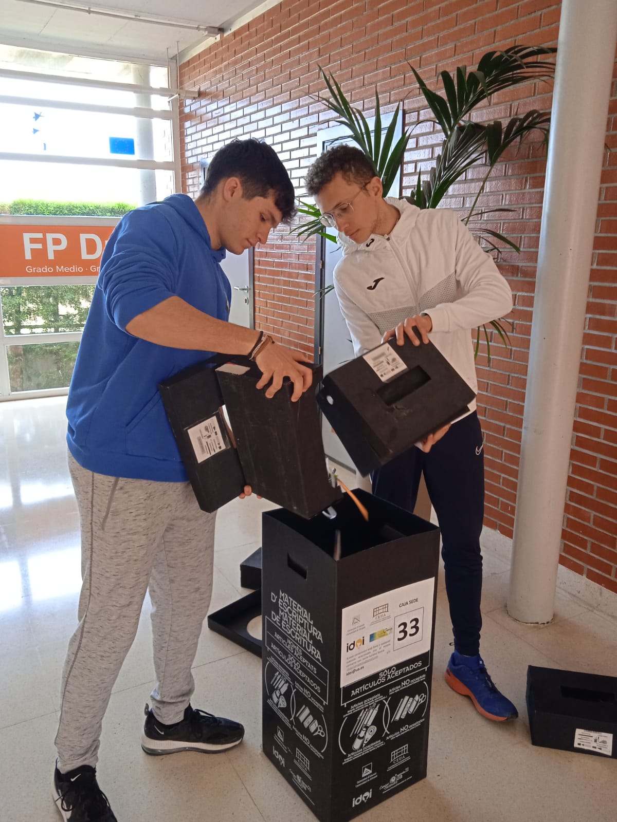 Se trata de impulsar el reciclaje del material de escritura a través de unas cajas de reciclaje elaboradas en nuestro centro y en colaboración con la Universidad de Alicante. Sin duda alguna, una iniciativa estupenda.