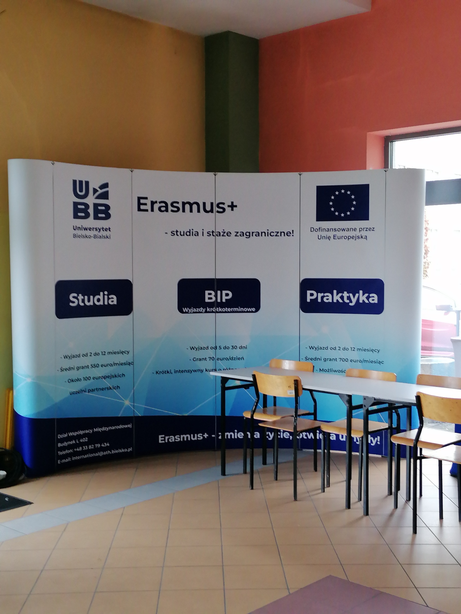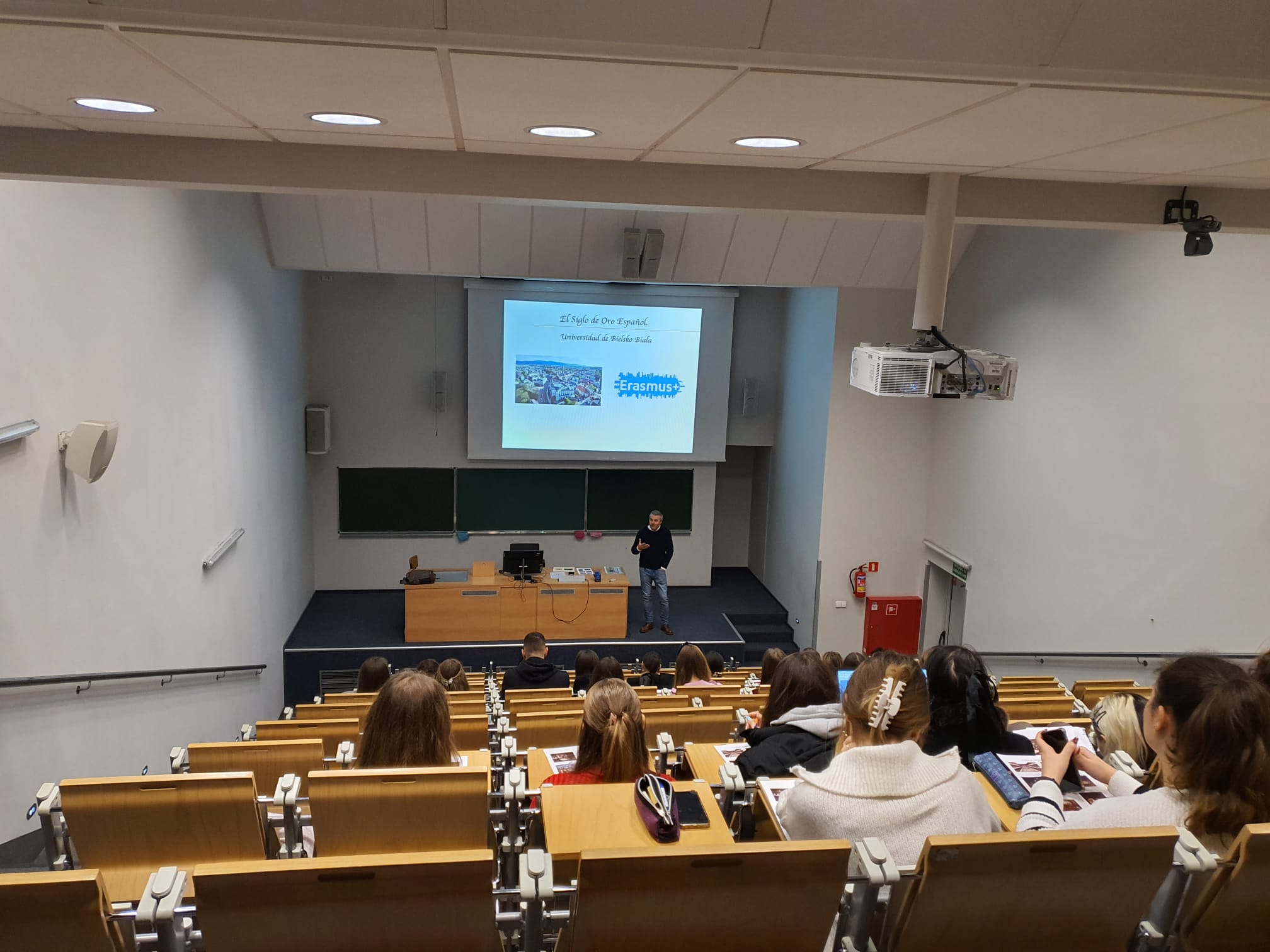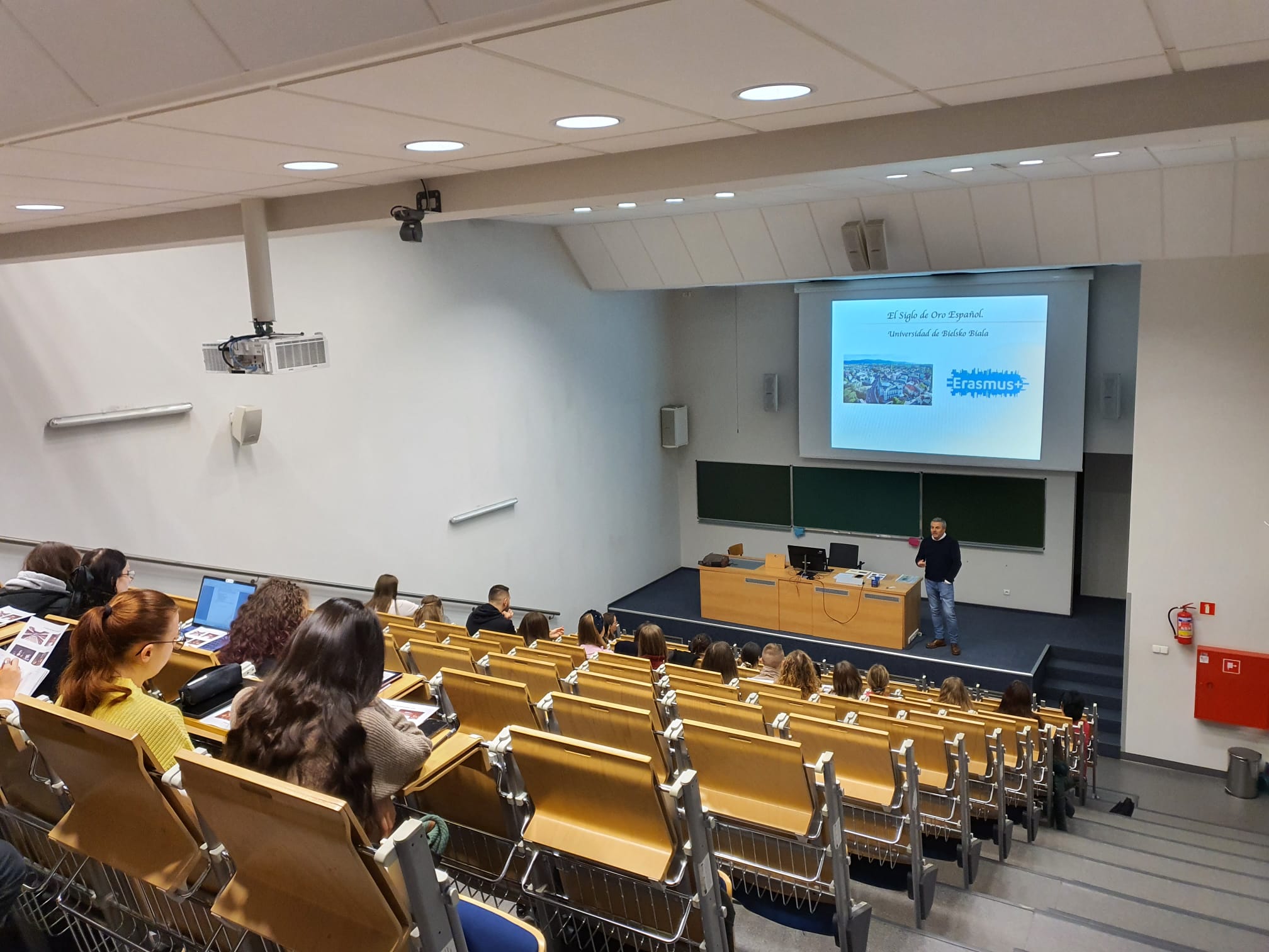 Del 20 al 24 de noviembre los profesores del centro Jesús Delgado Samper y Pedro Alcaraz Giménez han desempeñado su labor docente en la Universidad de Bielsko-Biala en Polonia. Los temas impartidos han versado sobre "Publicidad", "Emprendimiento", "El Siglo de Oro Español" y "La Transición Española". El alumnado tenía un nivel de español medio de B2 y estudia filología hispánica y se configuraron varios grupos atendiendo a su nivel competencial de castellano.