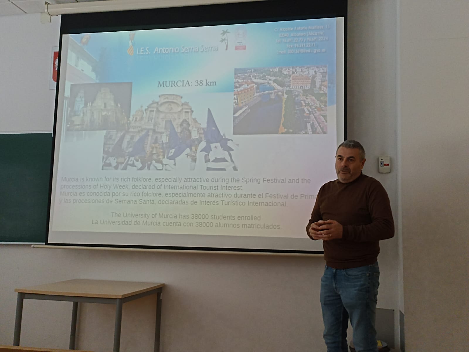 Del 12 al 16 de Diciembre (año 2022), los profesores del centro Jesús Delgado, Pedro Alcaraz, Ricardo Salinas y Javier Galiana han realizado movilidades de docencia y formación en la Universidad de la Silesia (campus de Katowice y Sosnowiec) a los estudiantes que cursan la especialidad de Filología Hispánica y a los de la especialidad de Relaciones Internacionales y Diplomacia. Estas movilidades se configuran dentro del programa ERASMUS+ para la Educación Superior 2021-1-ES01-KA131-HED-000011253 , que está permitiendo que nuestros docentes puedan impartir clases en varias universidades europeas, contribuyendo a la internacionalización del IES "Antonio Serna Serna". Por otro lado, estas acciones permiten mostrar en esos lugares nuestro patrimonio cultural, actividades económicas y sociales de Albatera y provincia de Alicante.