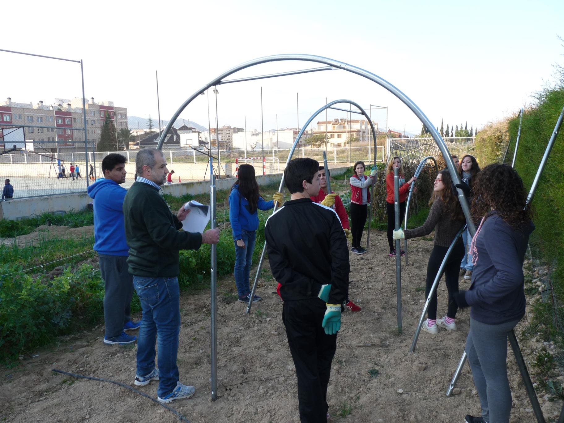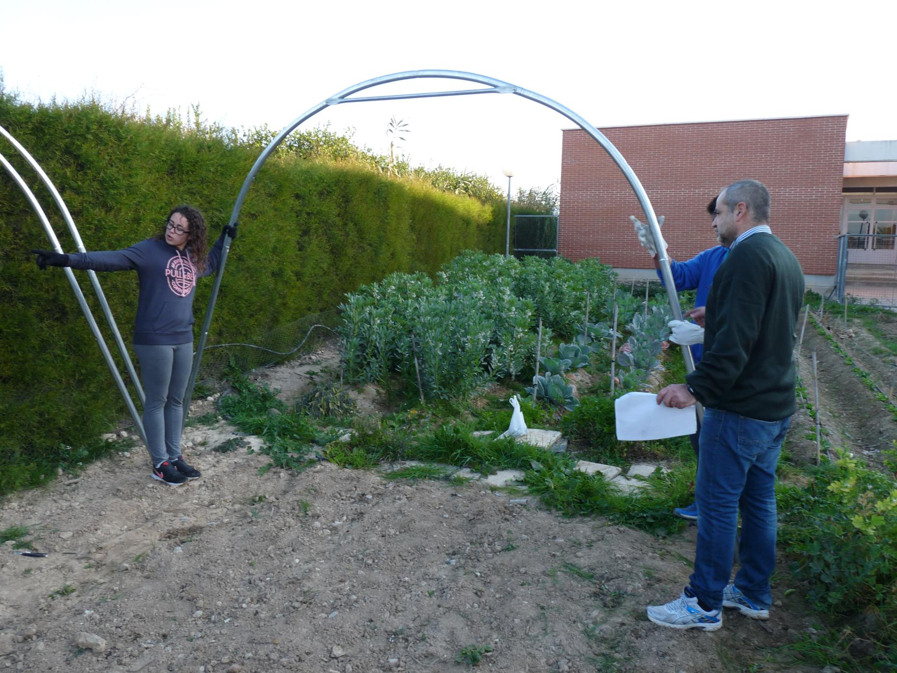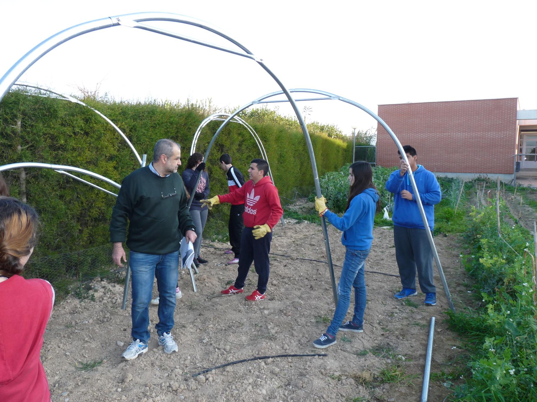 El alumnado de PDC1 en colaboración con varios profesores de distintos departamentos llevaron a cabo la instalación del invernadero. El coste de este invernadero corrió a cargo de la Obra Social de la Coop. Eléctica Albaterense. Gracias por su colaboración. Esta instalación cumpletaba el proyecto de innovación que el centro esta realizando.