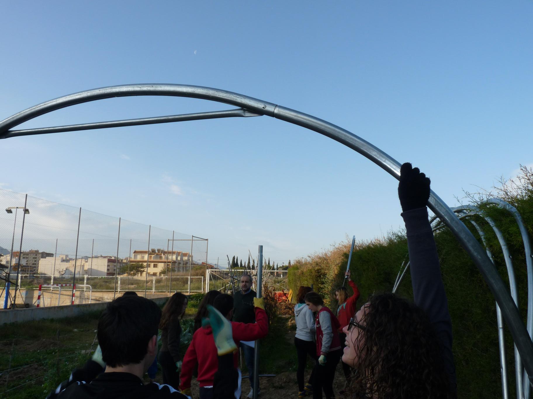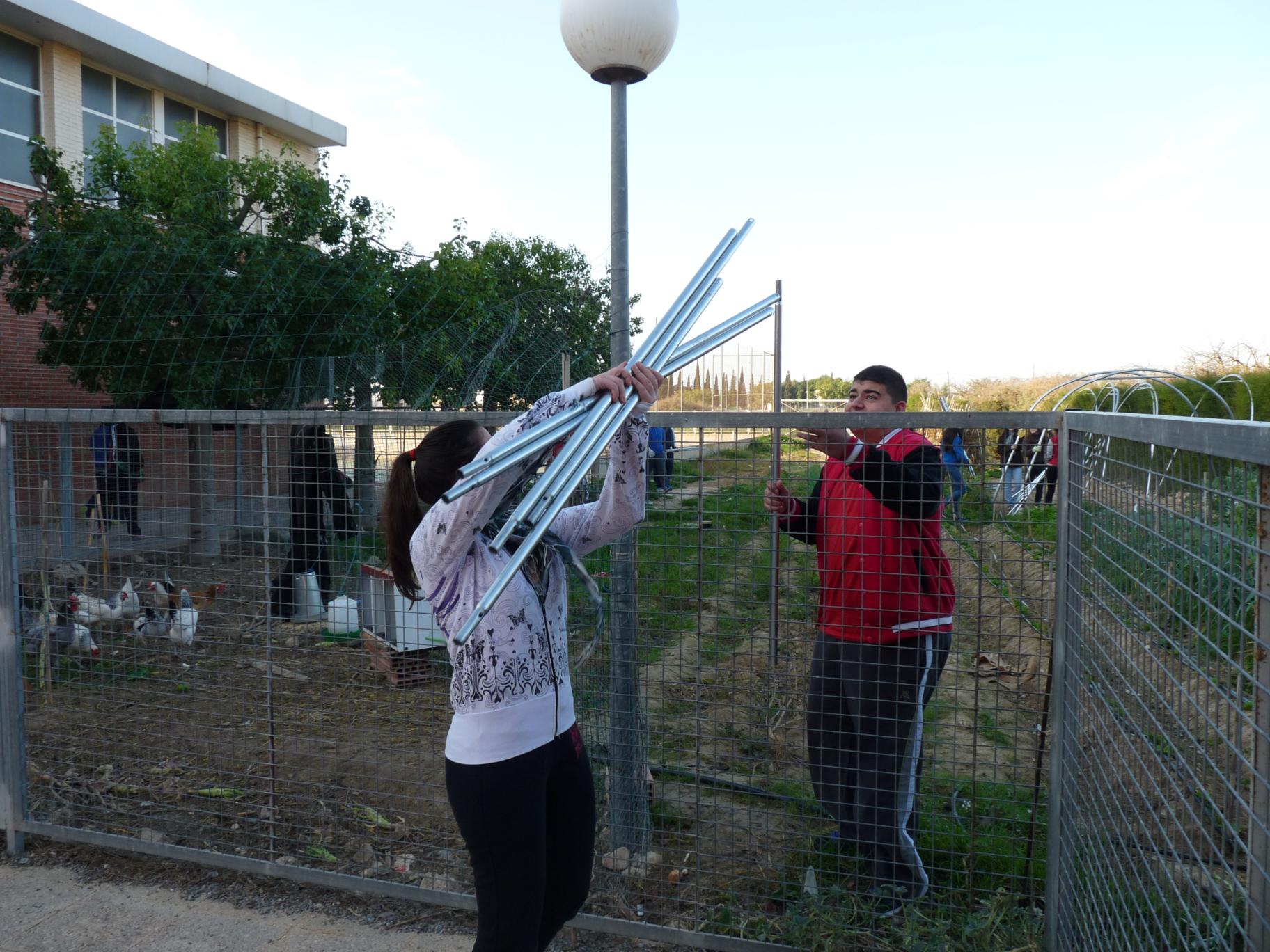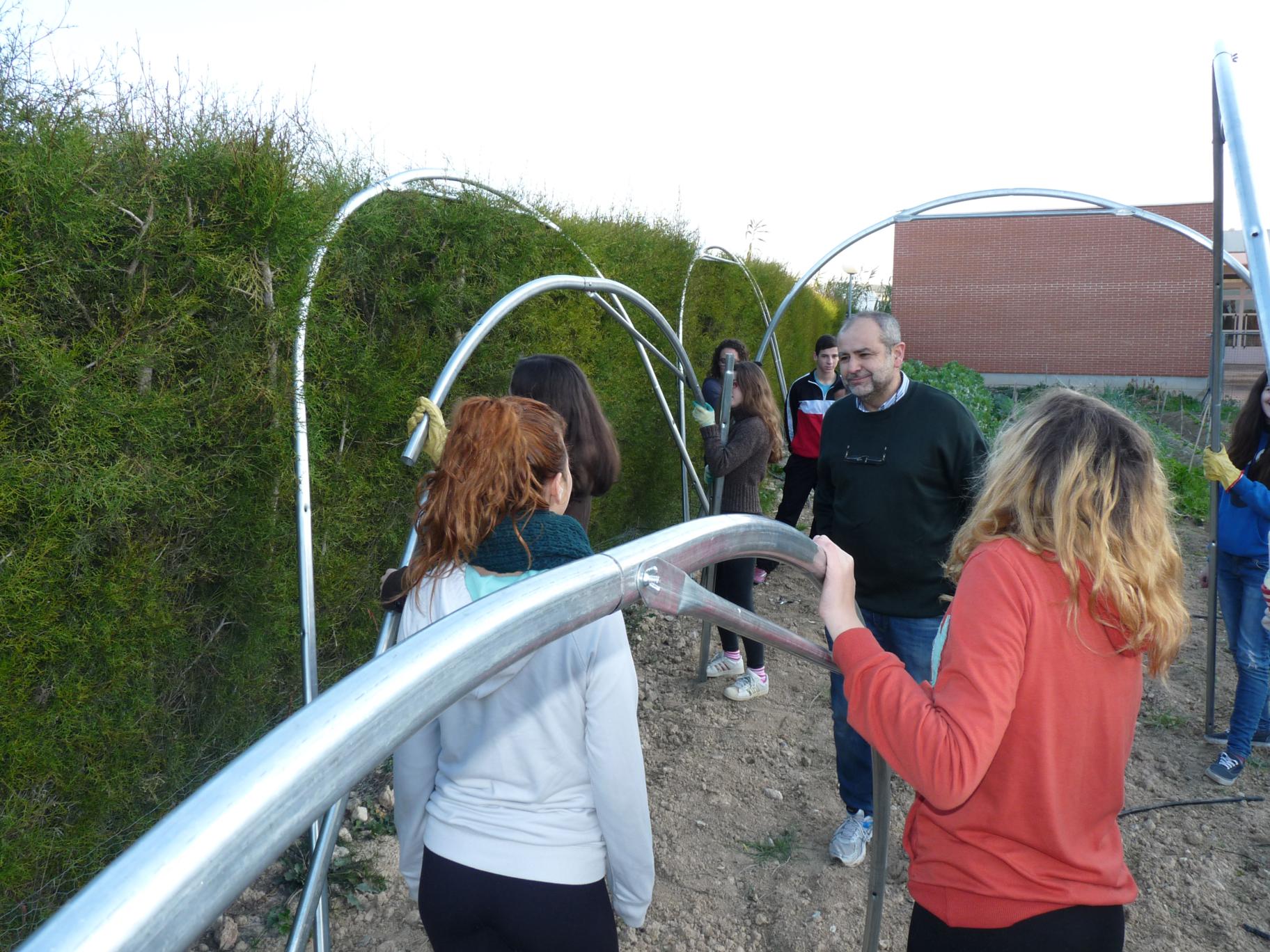 El alumnado de PDC1 en colaboración con varios profesores de distintos departamentos llevaron a cabo la instalación del invernadero. El coste de este invernadero corrió a cargo de la Obra Social de la Coop. Eléctica Albaterense. Gracias por su colaboración. Esta instalación cumpletaba el proyecto de innovación que el centro esta realizando.