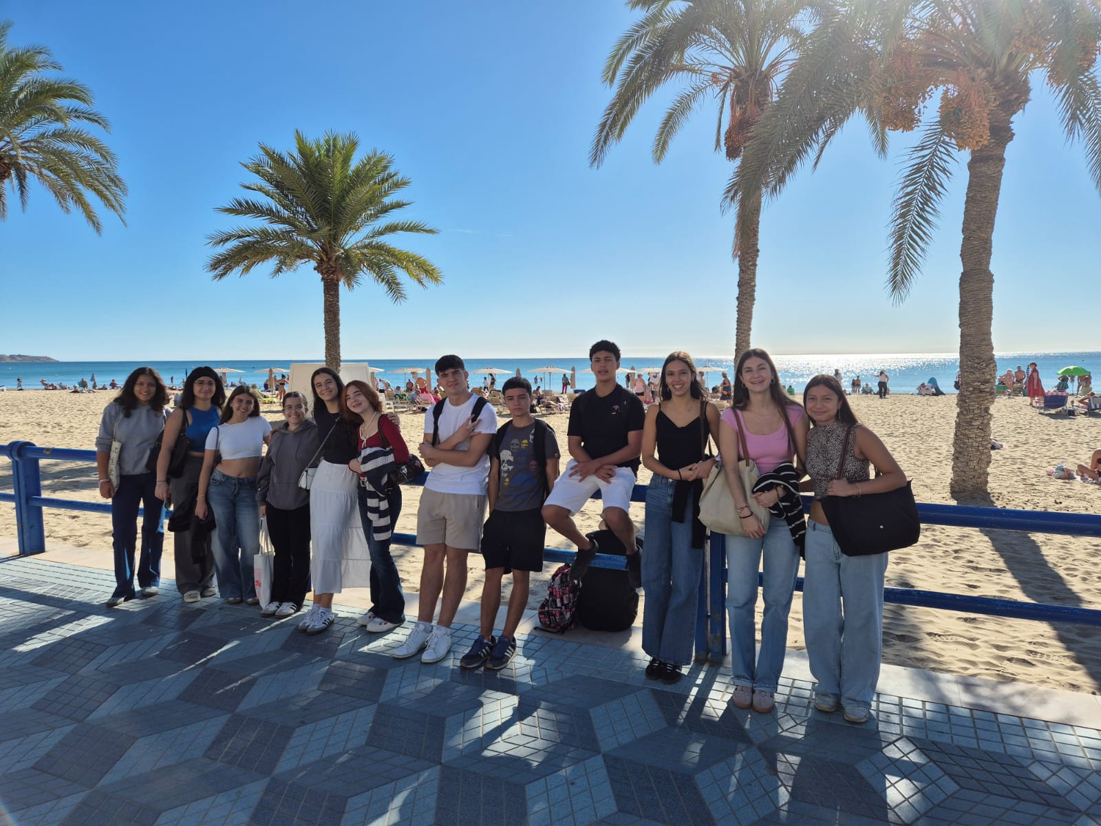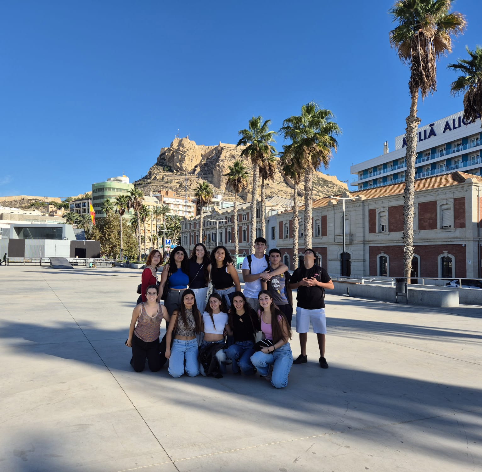 El pasado viernes 18 de octubre los doce alumnos participantes en el intercambio con Suiza, acompañados de su profesora Carmen Valverde, realizaron una agradable visita a la ciudad de Alicante en un marco de camaradería y cordialidad como viene siendo habitual en este, nuestro intercambio más veterano. Esta visita es, sin embargo, un simple gesto por parte de nuestro centro para imprimir un cierto toque lúdico-cultural a un intercambio eminentemente académico, es decir, de inmersión durante dos semanas en el día a día del compañero de intercambio. Hemos de decir que el uso del tren como medio de transporte se está imponiendo como una alternativa eficaz y mucho más económica que el característico autobús. Finalmete queremos resaltar la experiencia positiva de la alumna Paula Canales, la primera en realizar un intercambio de larga duración (siete semanas) y que recibe ahora a su vez a su correspondiente alumna suiza de intercambio que estará otras tantas con nosotros.