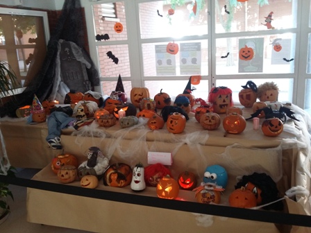 El departamento de inglés ha celebrado el primer concurso de calabazas de Halloween para los alumnos de 1º y 2º ESO. Los trabajos fueron expuestos en el hall del instituto desde miércoles 28 a viernes 30, cuando se hizo la entrega de premios a las tres mejores calabazas. Las ganadoras fueron:
