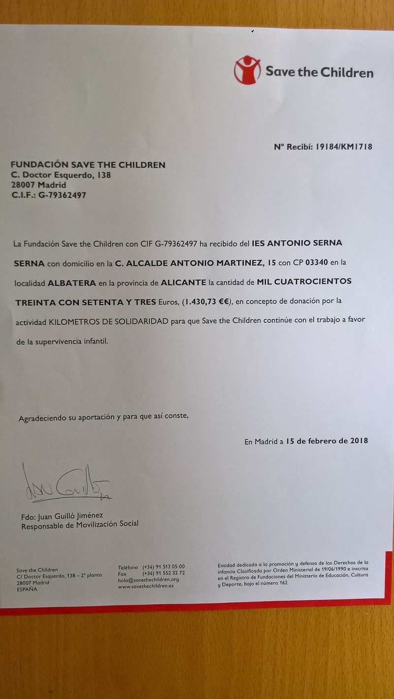 El departamento de Educación Física, conjuntamente con la colaboración importantísima y muy necesaria de otros departamentos, vicedirección, orientación, conjunto de tutores y tutoras de la E.S.O. y bachillerato, además de profesores colaboradores, ha organizado la IV carrera solidaria Kilómetros de solidaridad en el centro en favor de la ONG Save the Children.