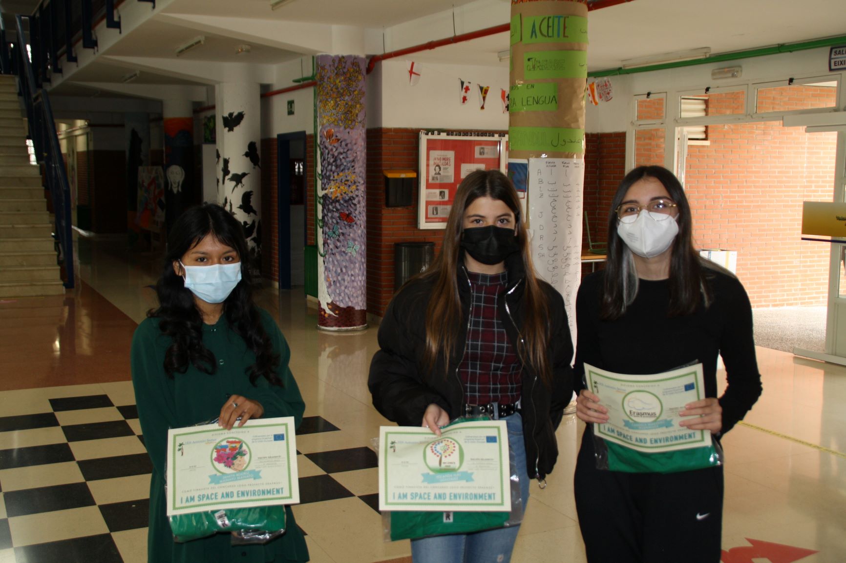 Queremos dar la enhorabuena a Yolanda Más González, Candela Martínez Rodríguez y Janeth Beatriz Mainato Mainato por participar y ser finalistas en el concurso de Logos del proyecto Erasmus+ KA229 "I am Space and Environment" de intercambio escolar entre Solski Center Postojna (Slovenia) y IES Antonio Serna Serna (Albatera). Hemos hecho entrega de un Diploma acreditativo y de un obsequio.   Suerte a las tres para la final...